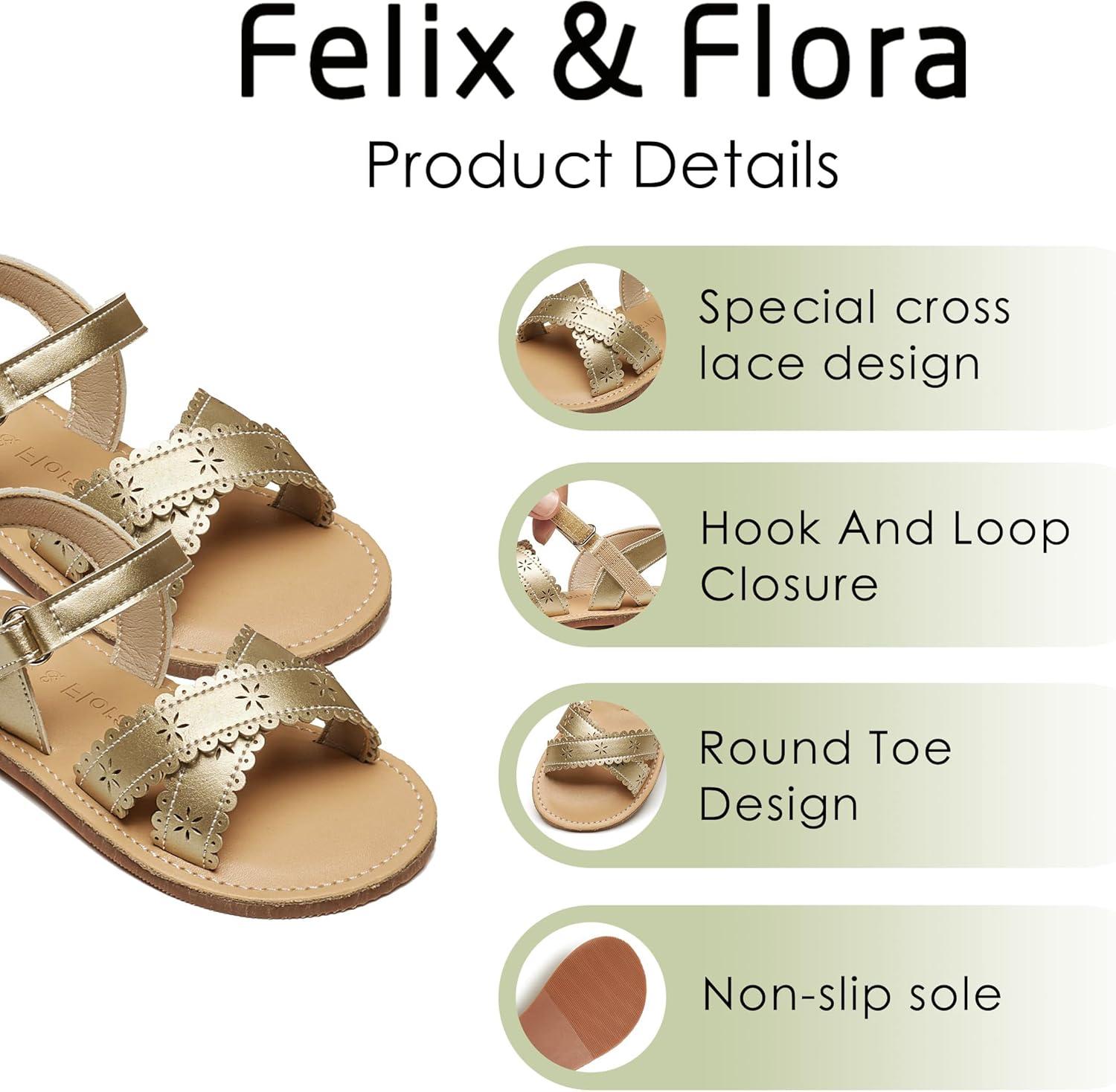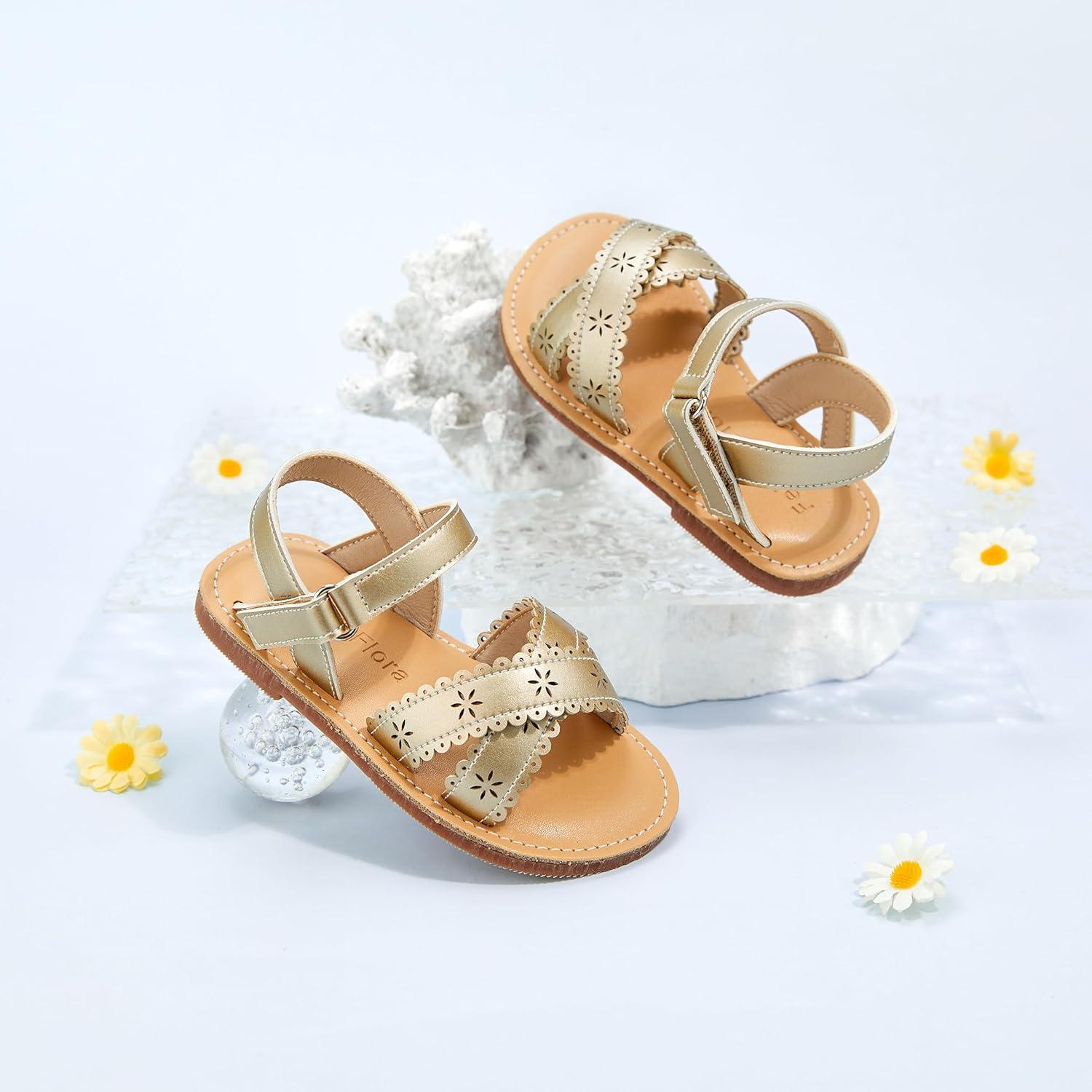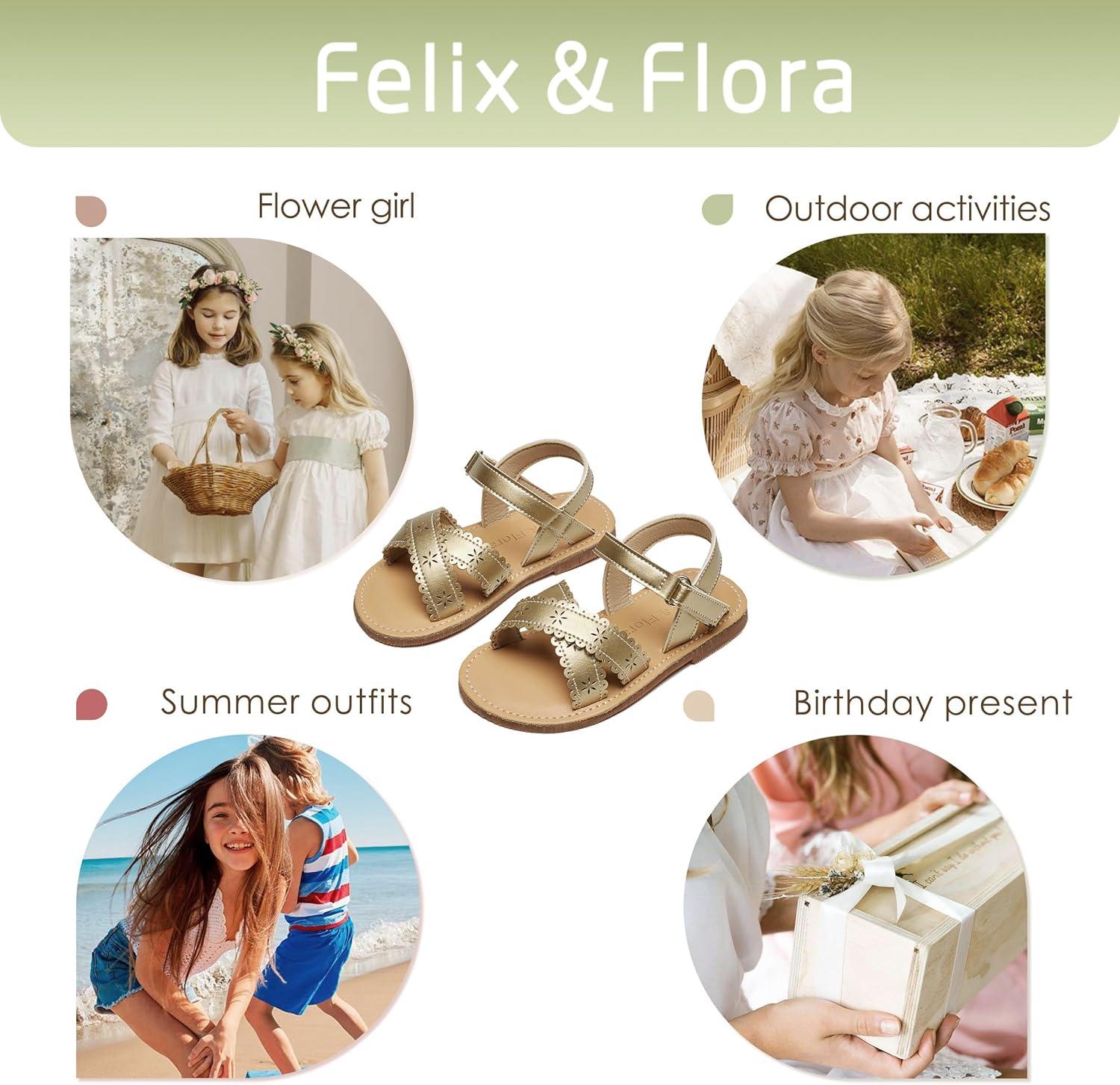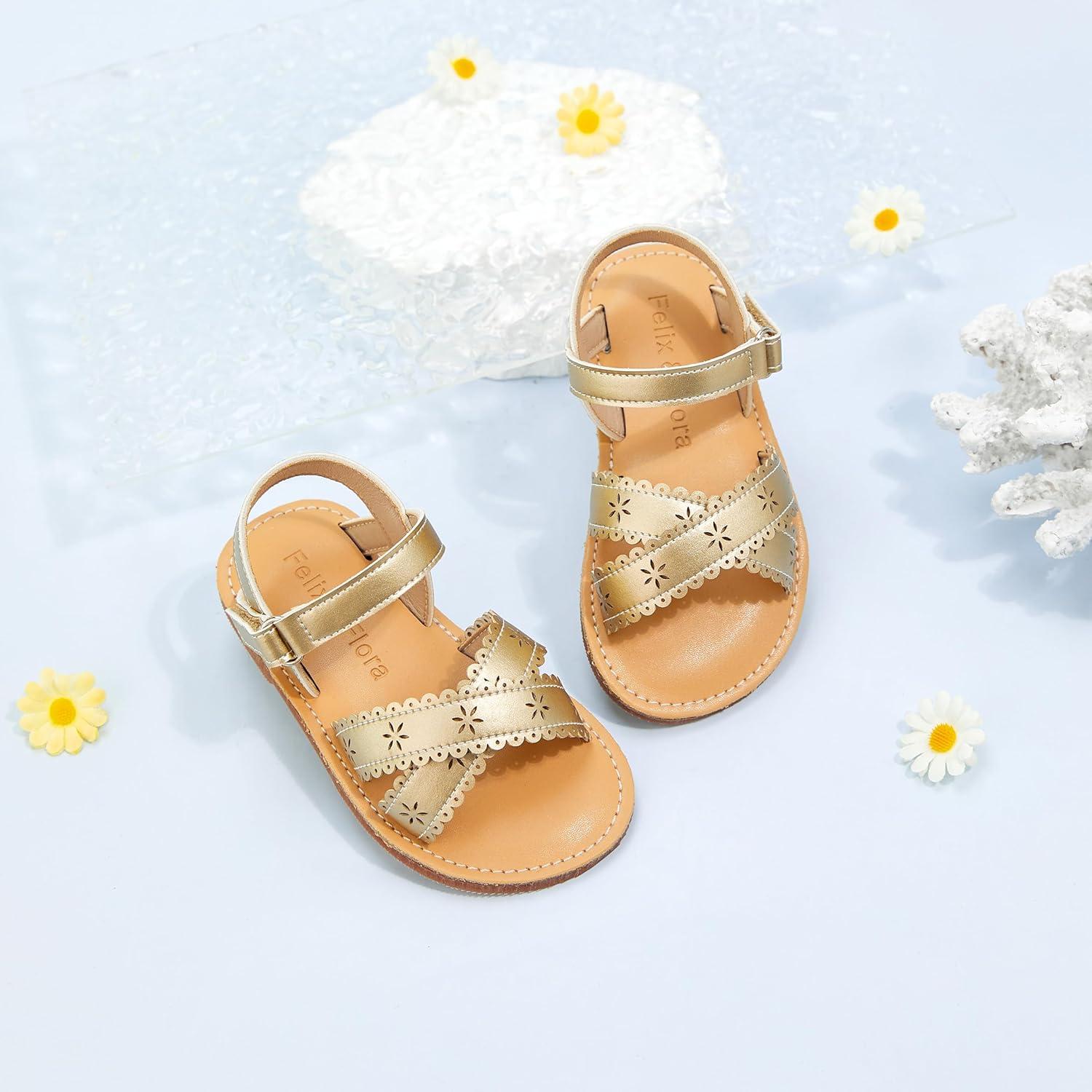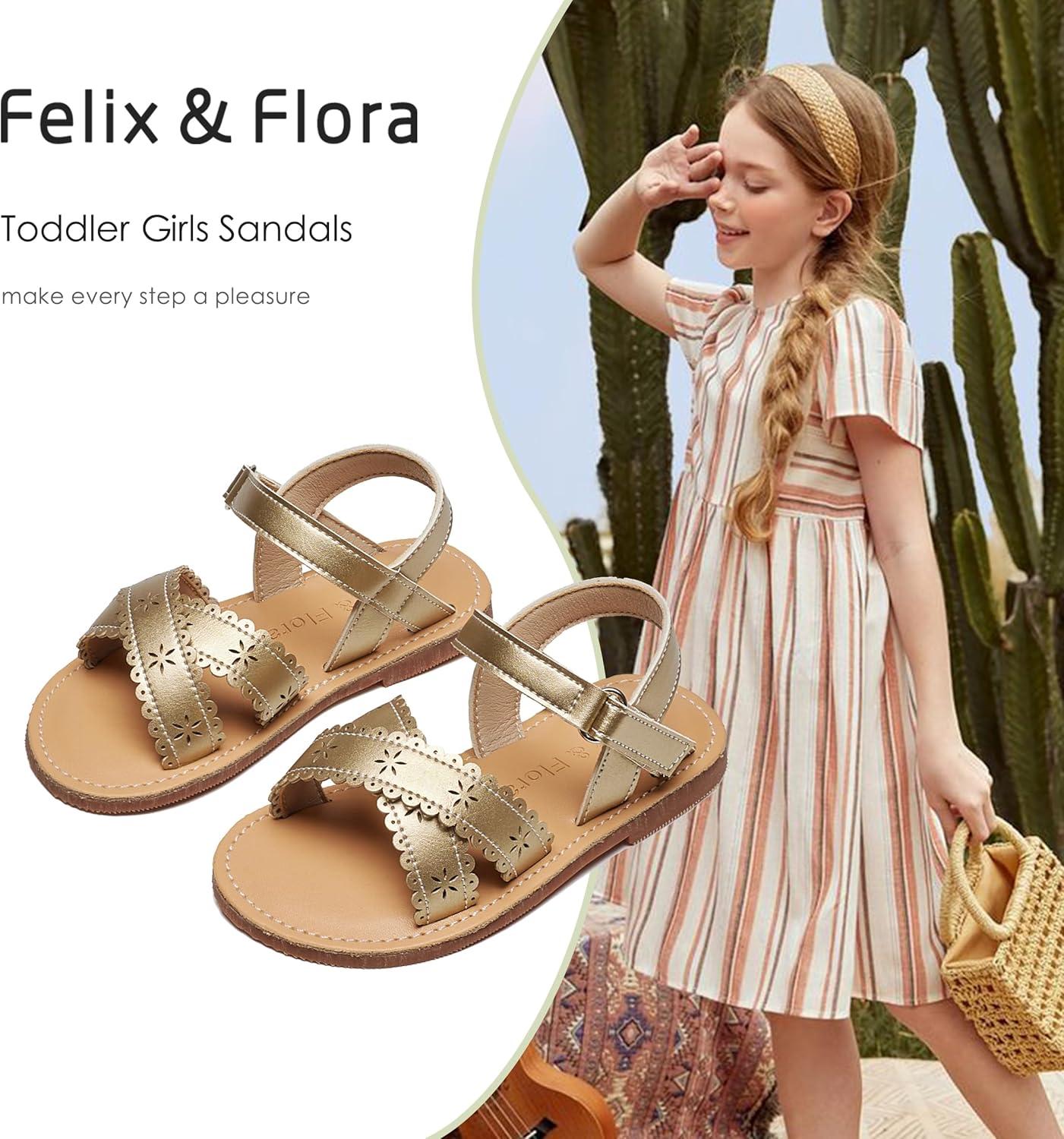 Felix & Flora Toddler Girl Sandals – Flower Girl Dress Shoes Open Toe Little Kid Summer Flats(Bc309-gold)