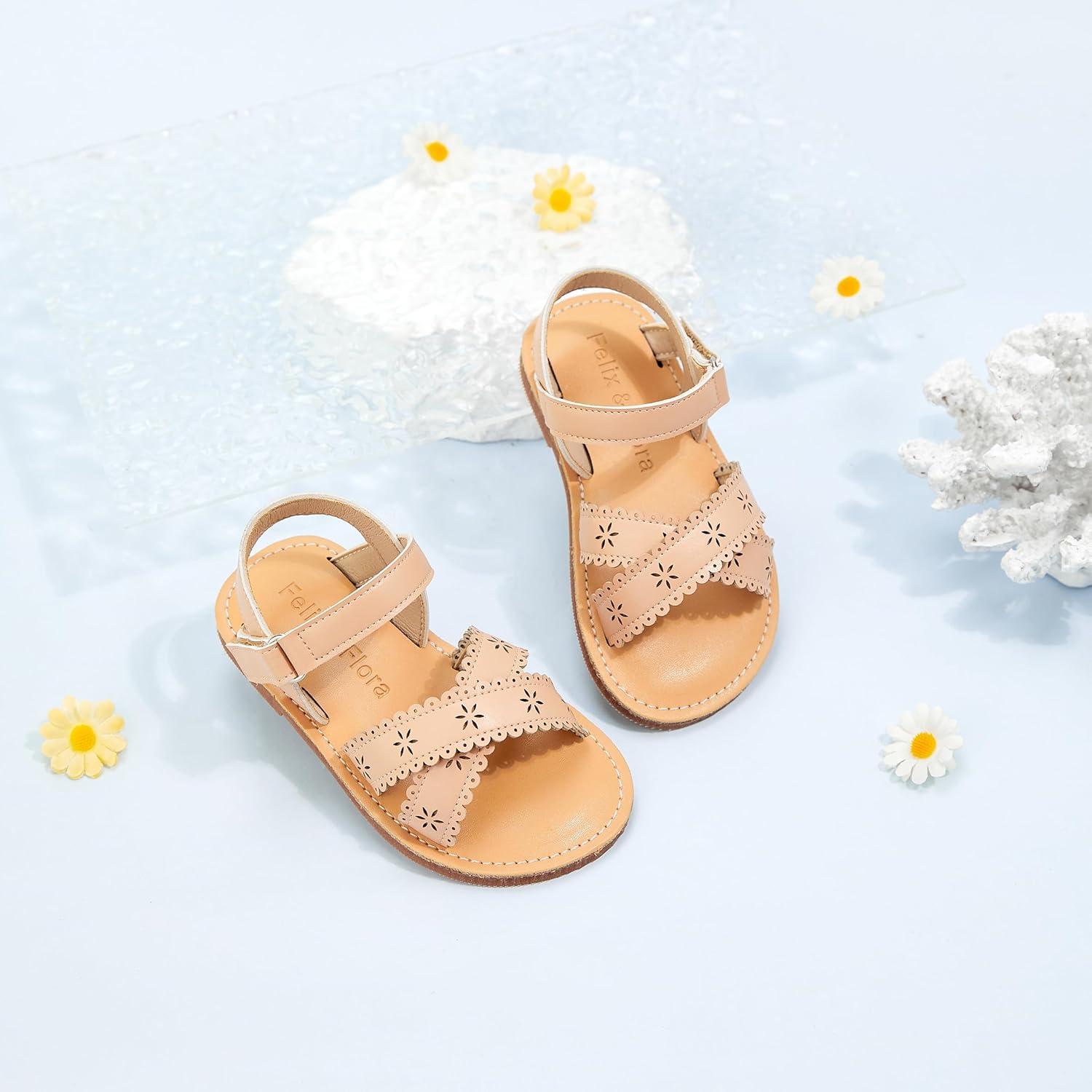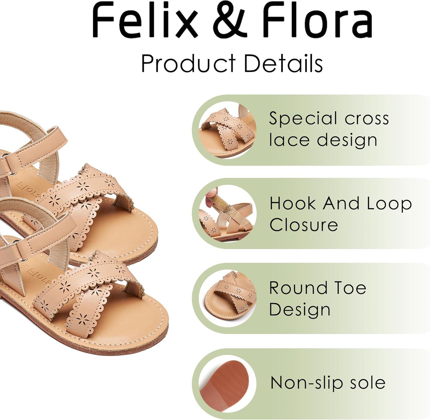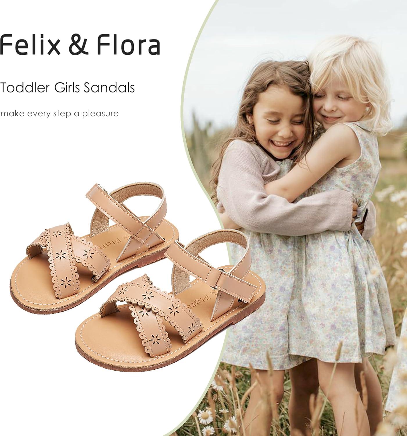 Felix & Flora Toddler Girl Sandals – Flower Girl Dress Shoes Open Toe Little Kid Summer Flats(Bc309-nude)