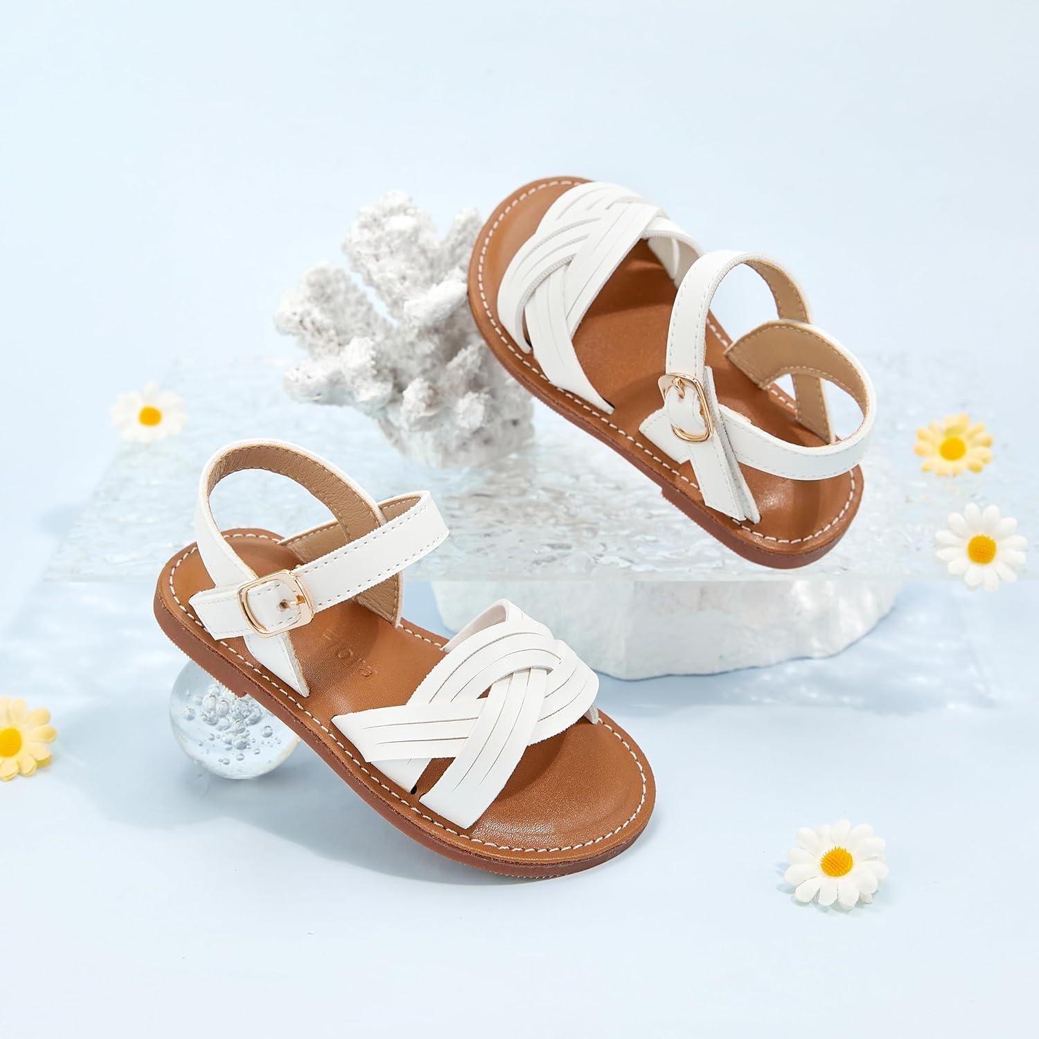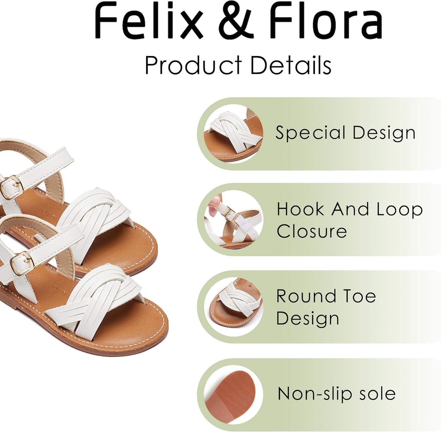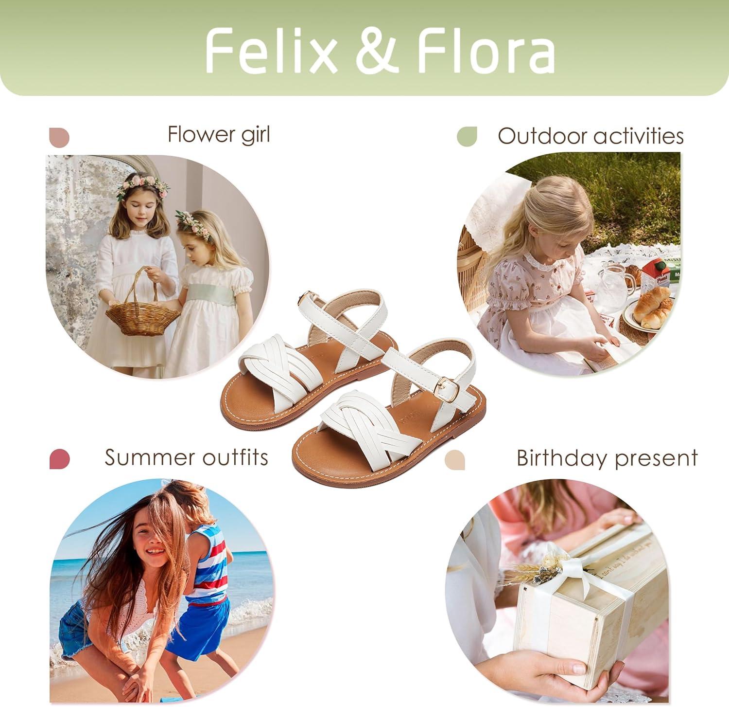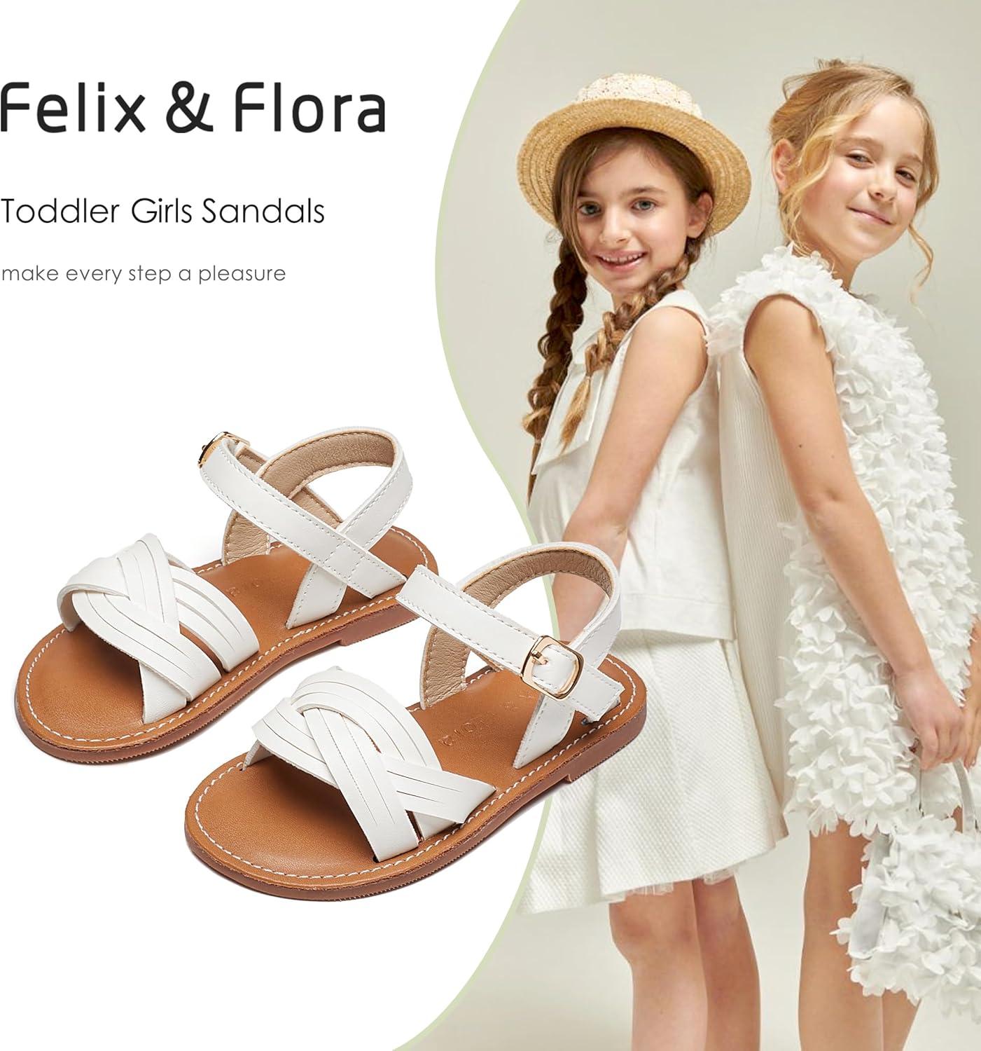 Felix & Flora Toddler Girl Sandals -Flower Girl Dress Shoes Open Toe Little Kid Summer Flats(Bc310-white)