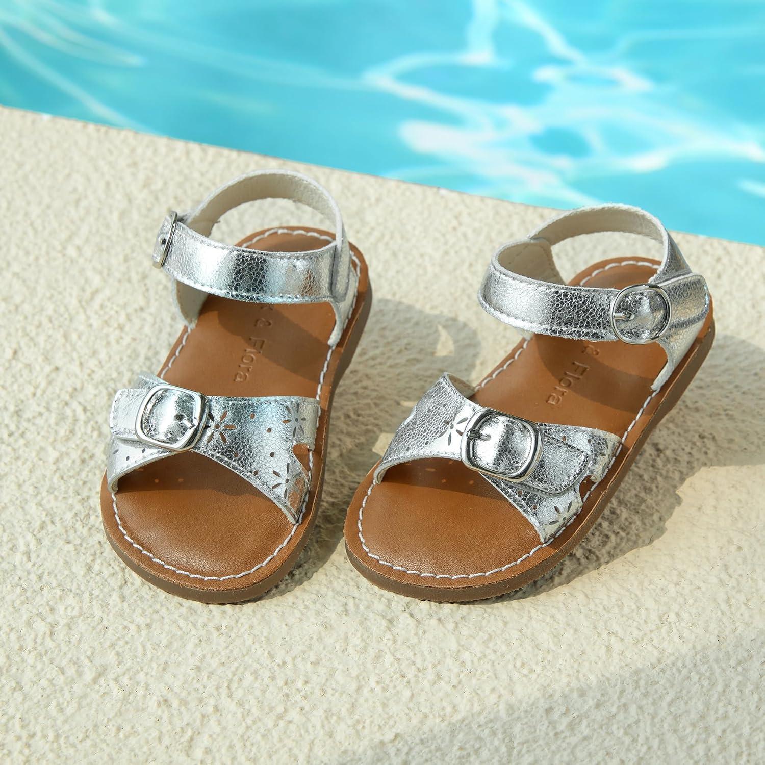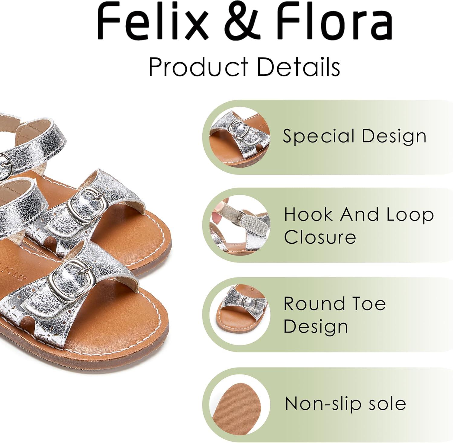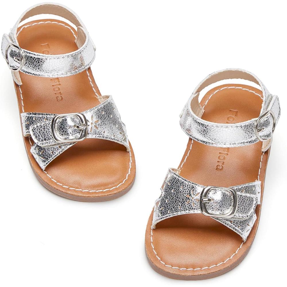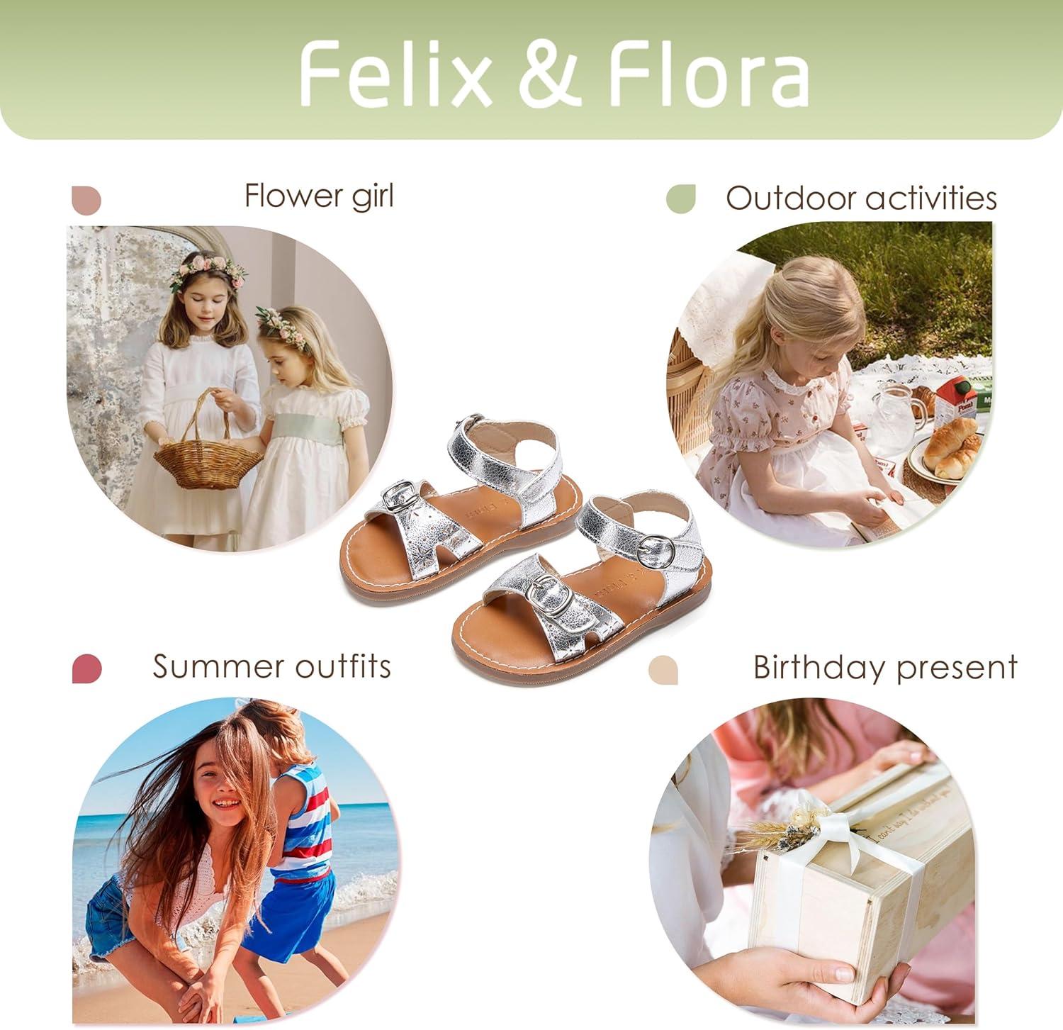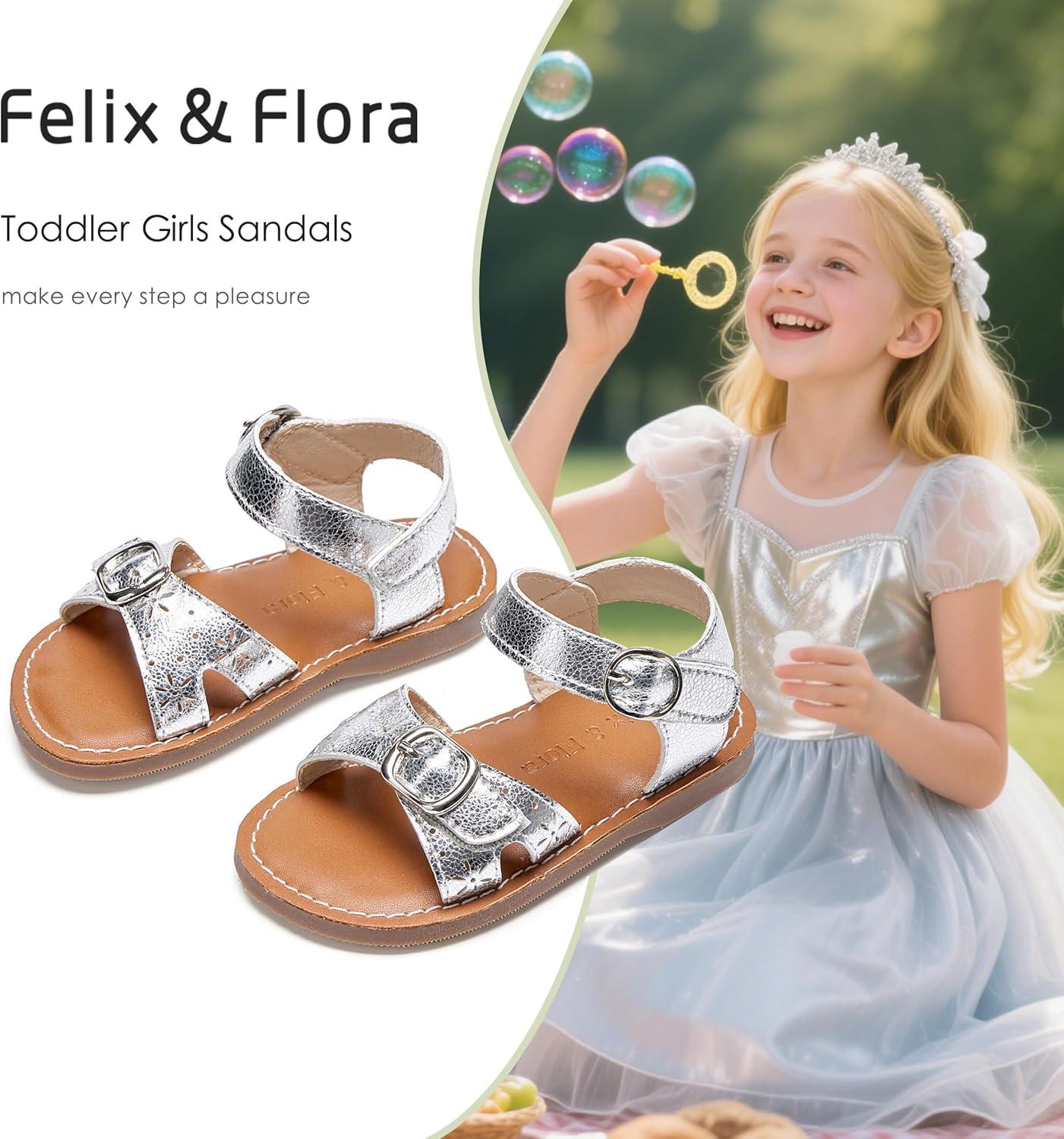 Felix & Flora Toddler Girl Sandals – Flower Girl Dress Shoes Open Toe Little Kid Summer Flats(Bc316-silver)