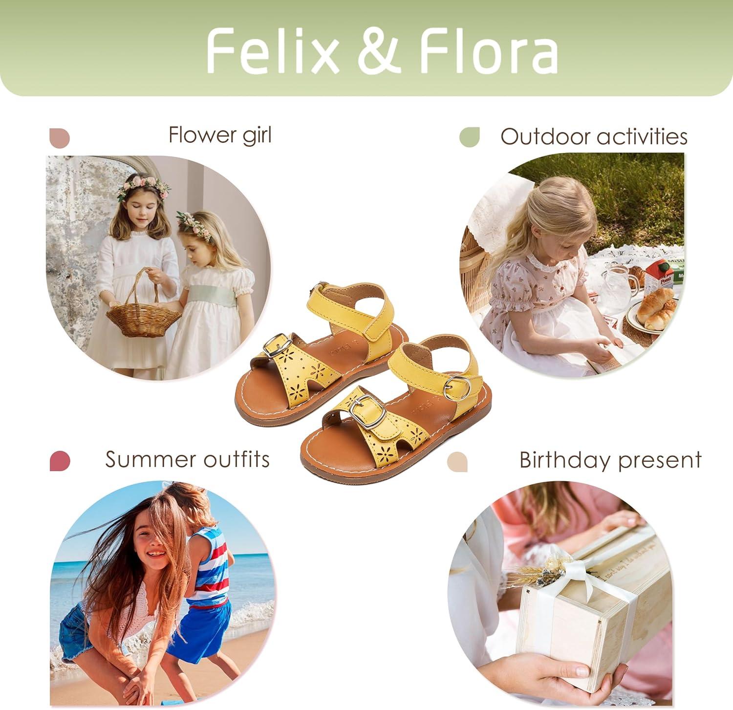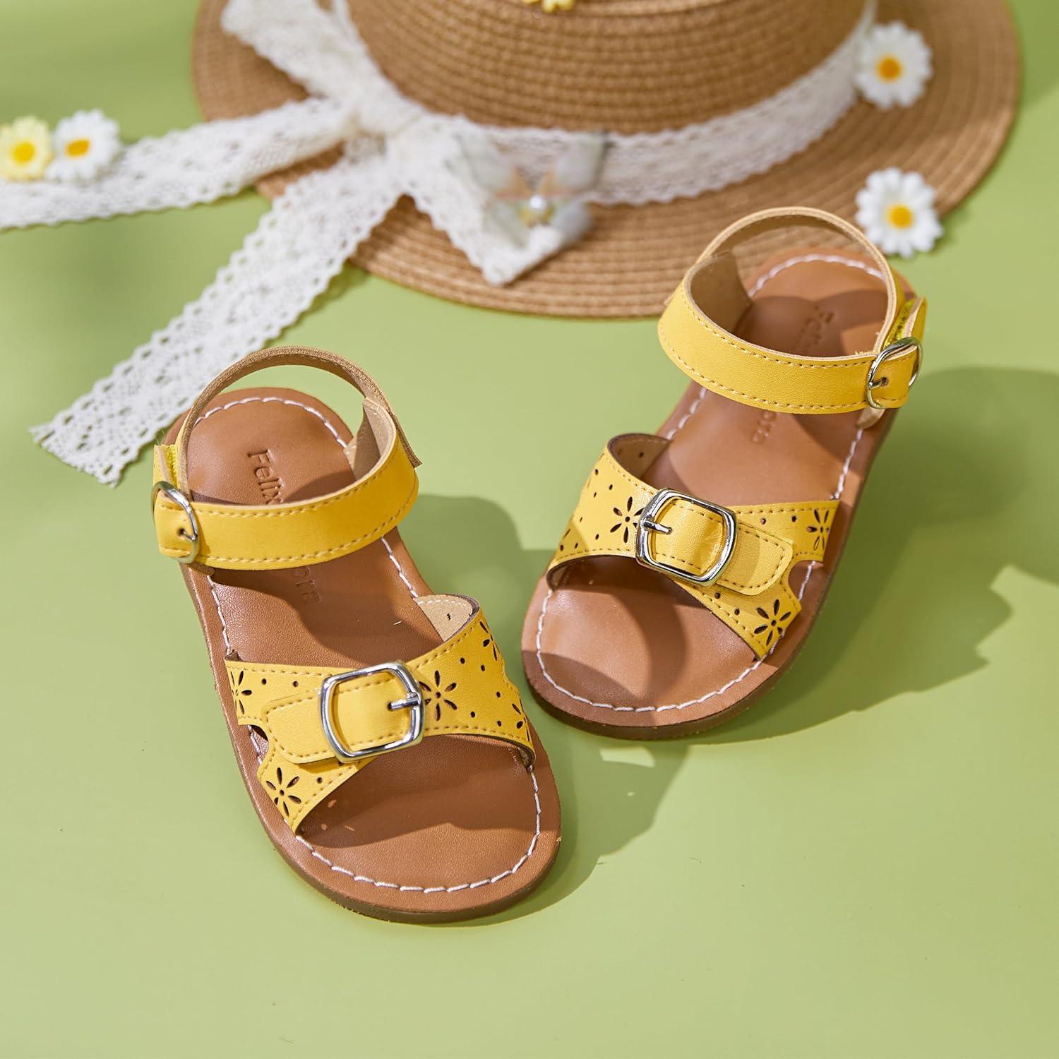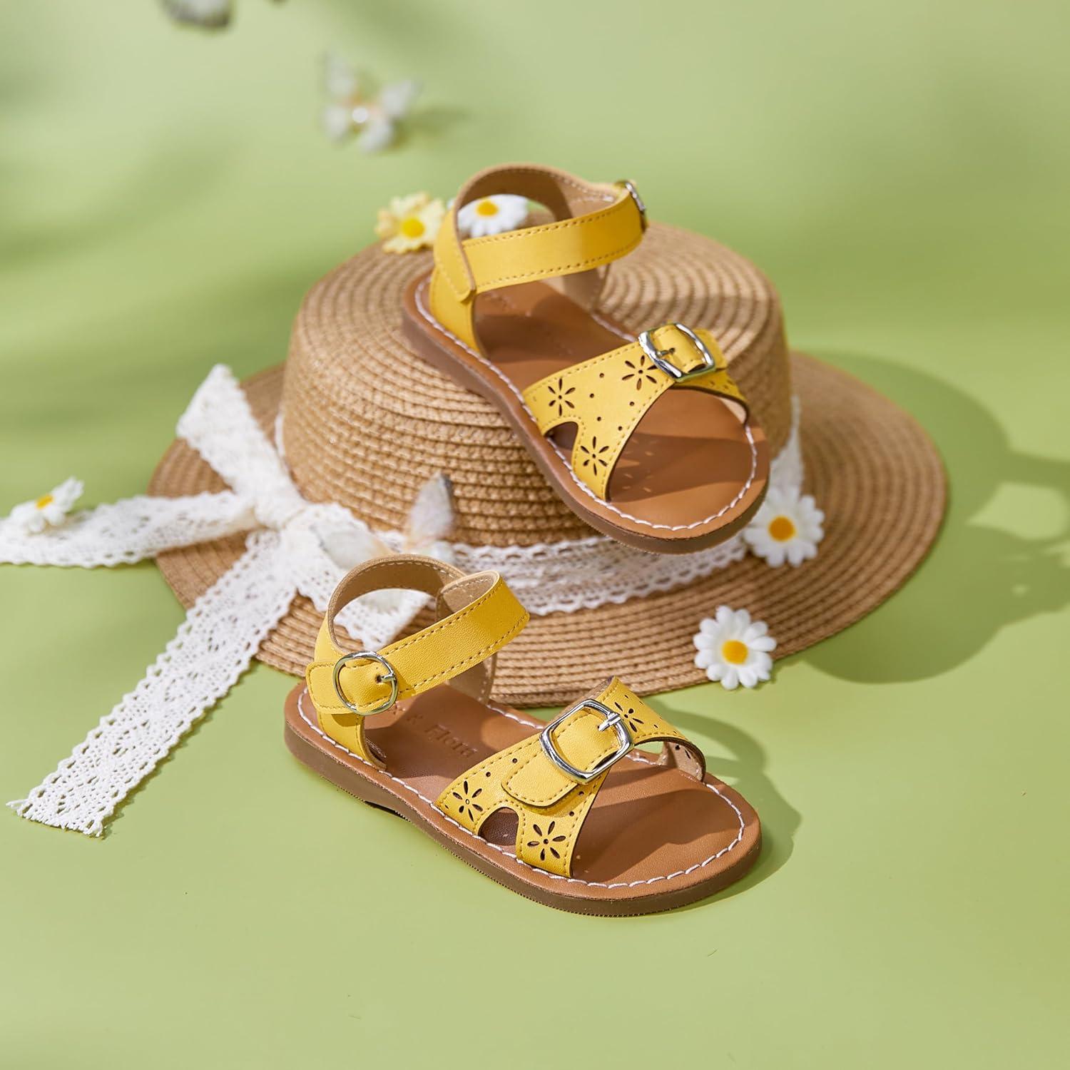 Felix & Flora Toddler Girl Sandals – Flower Girl Dress Shoes Open Toe Little Kid Summer Flats(Bc316-yellow)