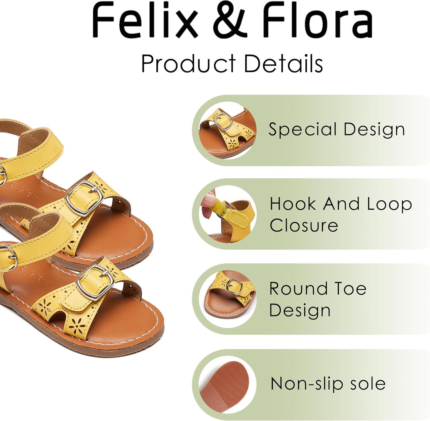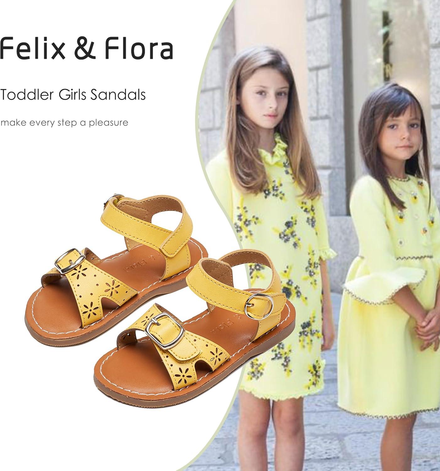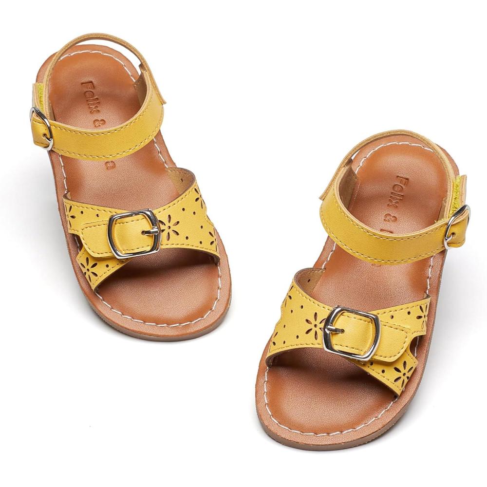 Felix & Flora Toddler Girl Sandals – Flower Girl Dress Shoes Open Toe Little Kid Summer Flats(Bc316-yellow)