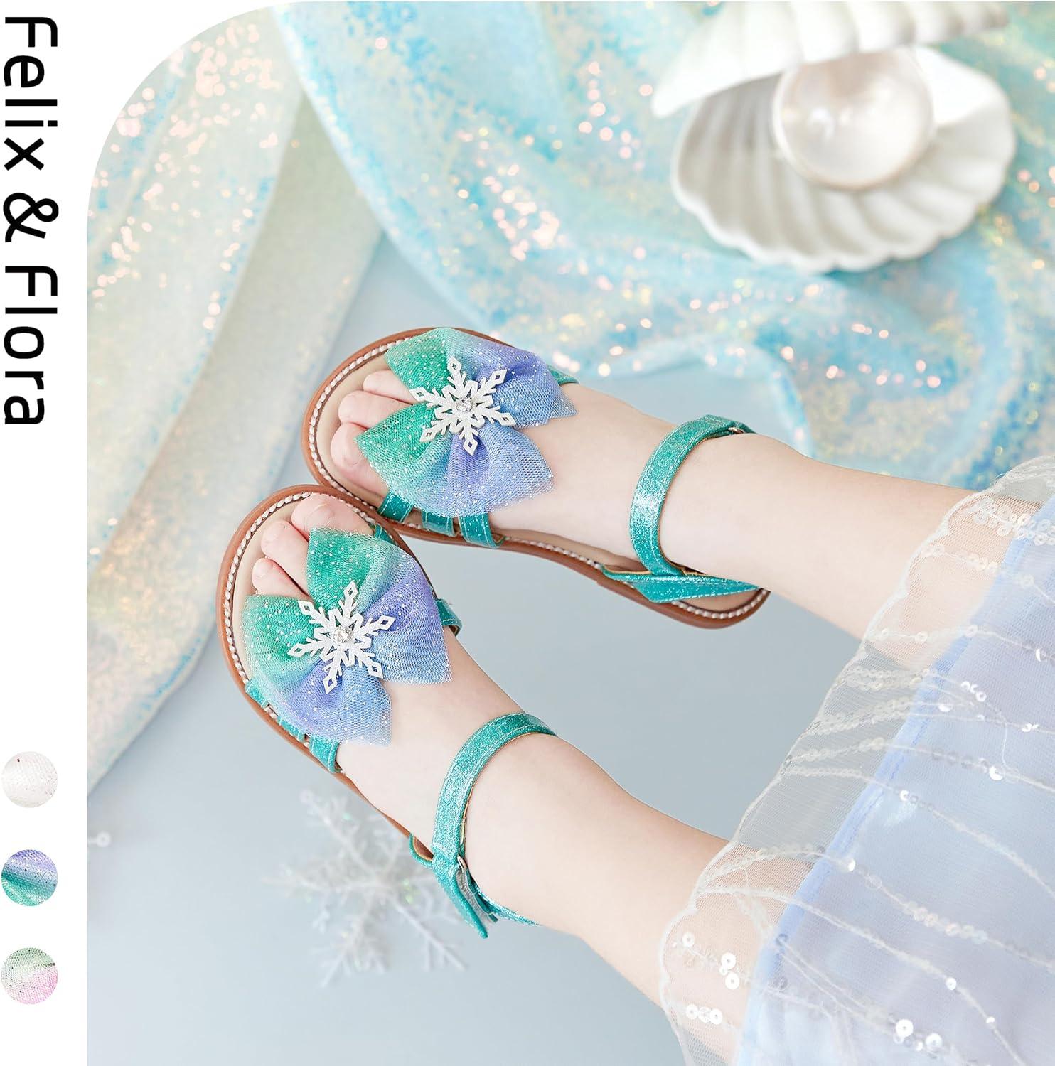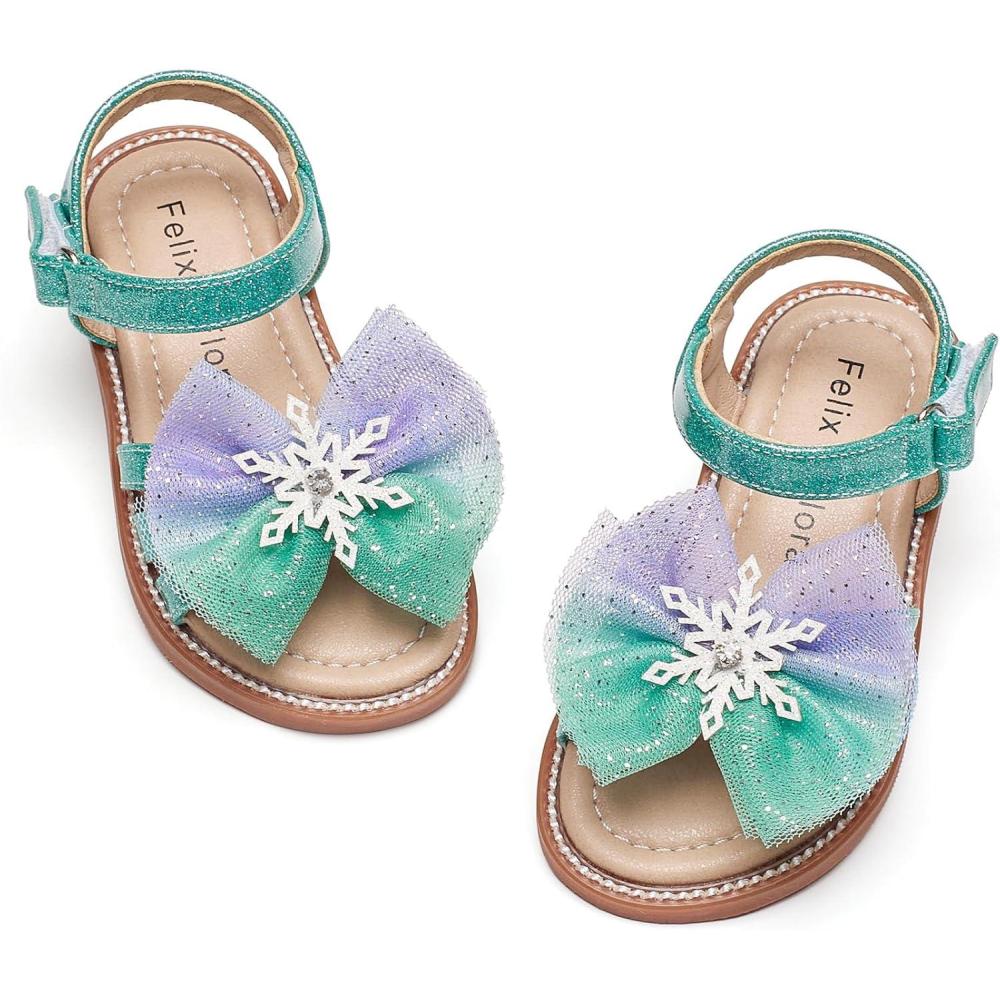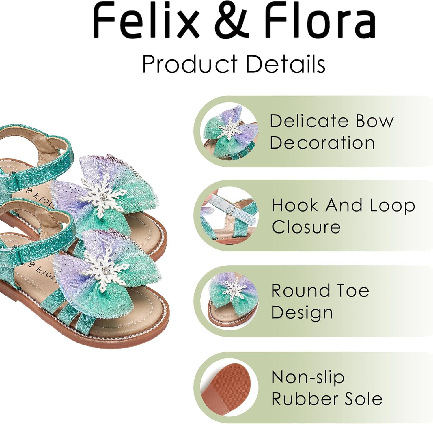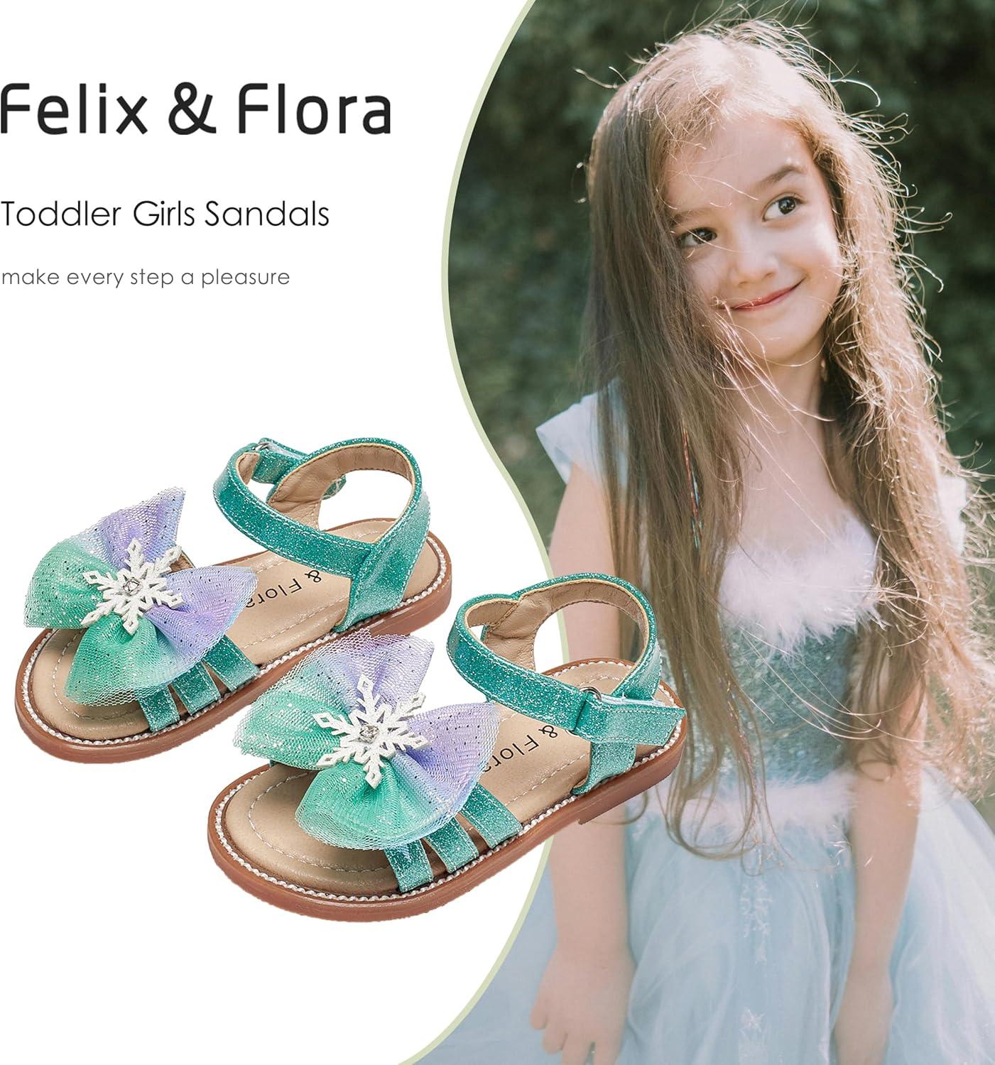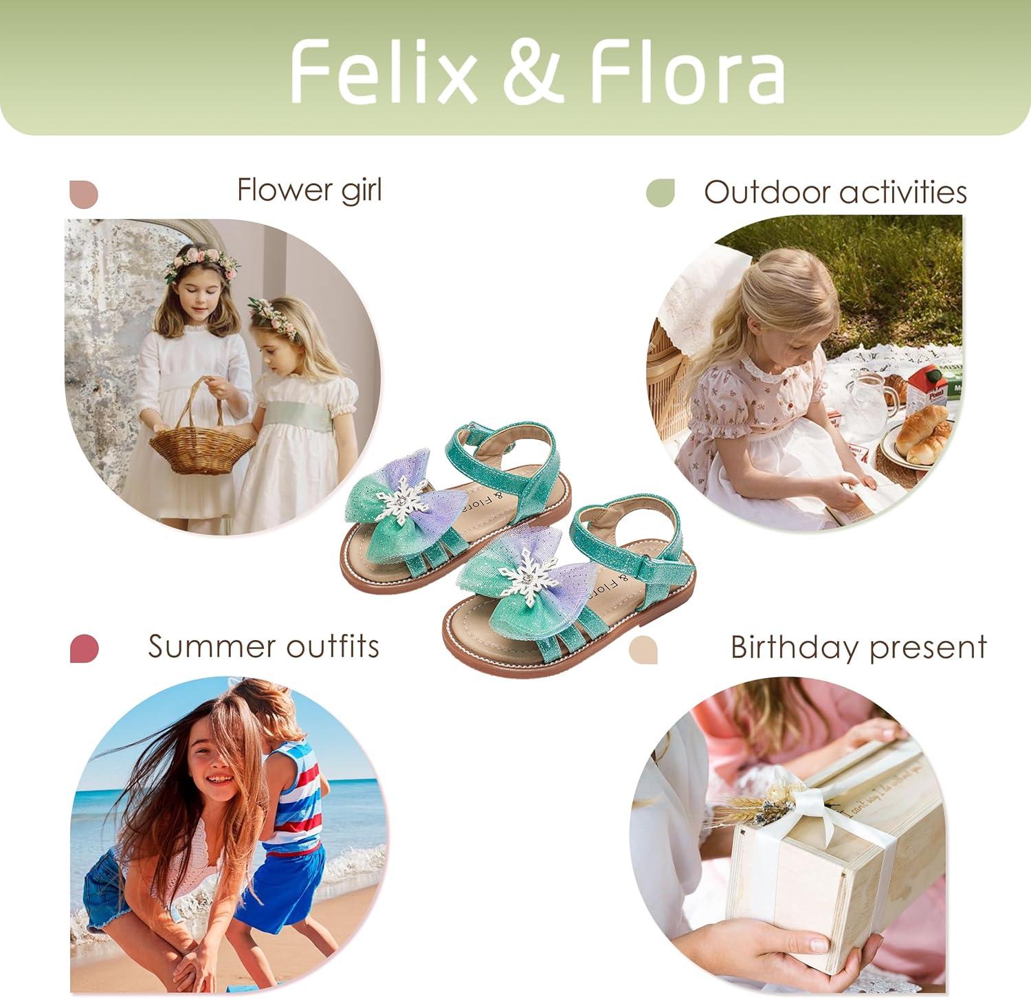 Felix & Flora Toddler Girl Sandals -Flower Girl Dress Shoes Open Toe Little Kid Summer Flats(Bc320-green)