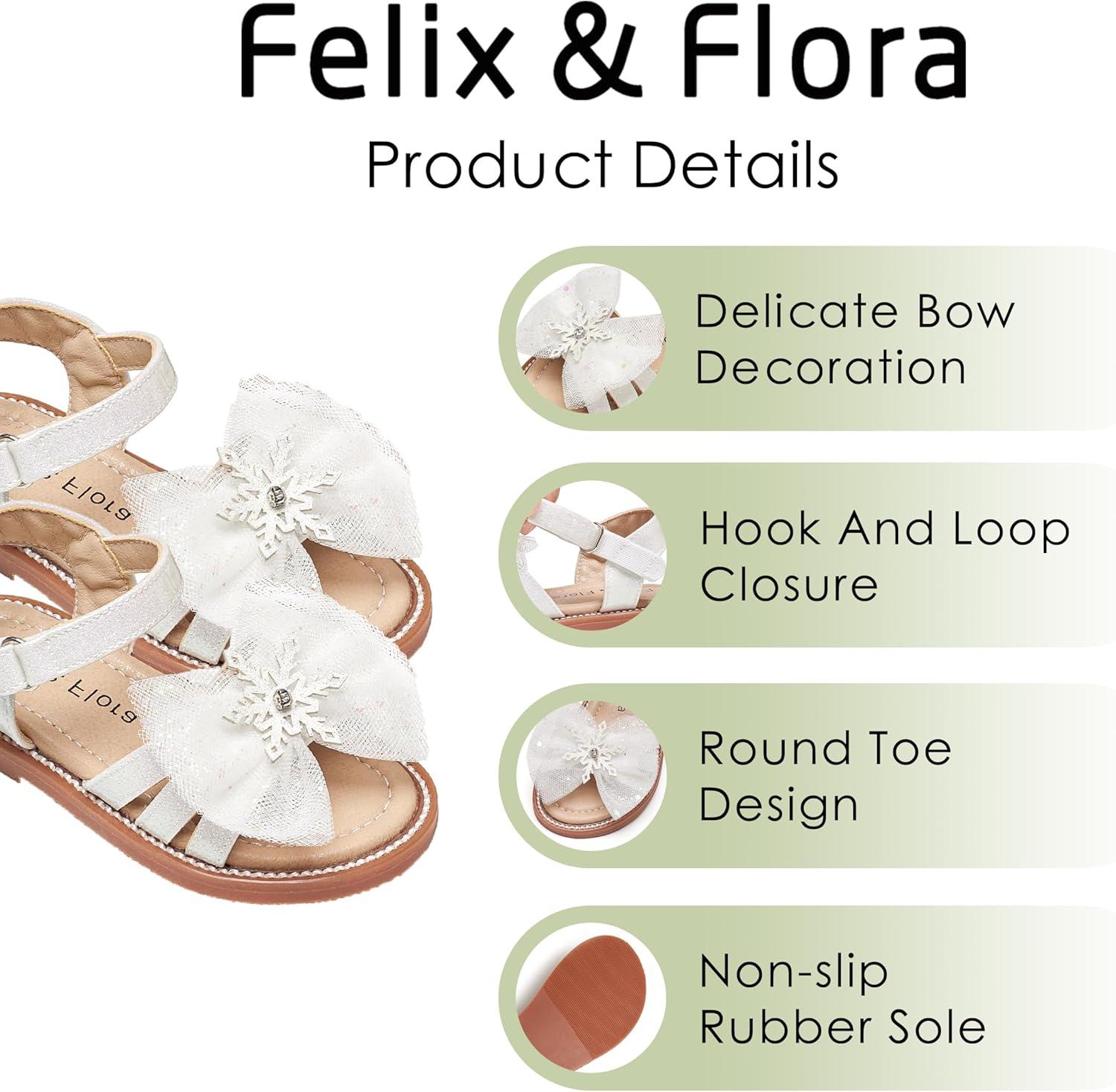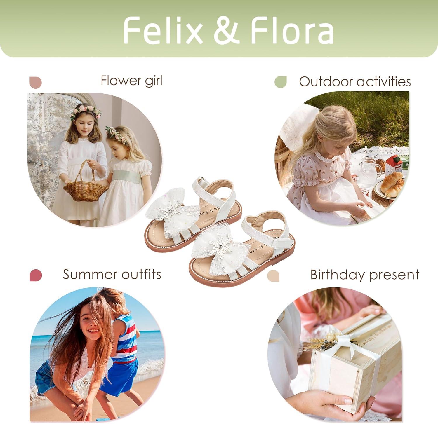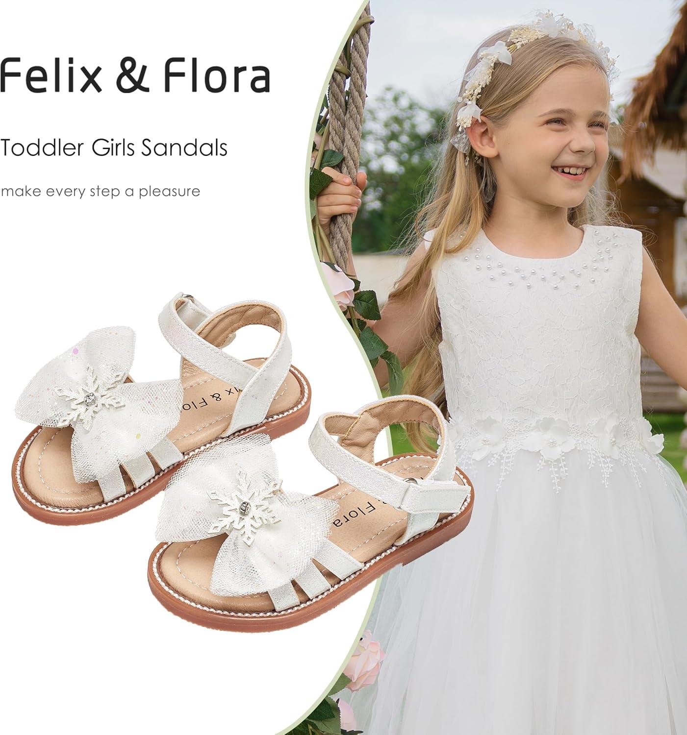Felix & Flora Toddler Girl Sandals -Flower Girl Dress Shoes Open Toe Little Kid Summer Flats(Bc320-white)