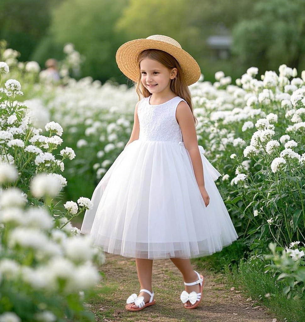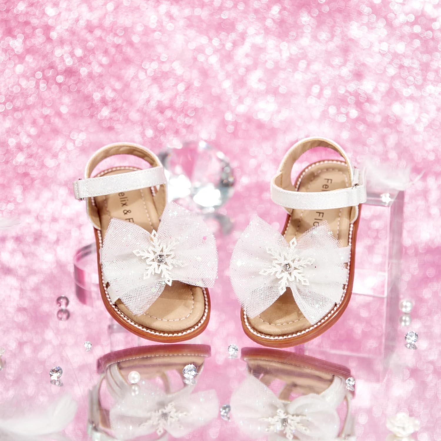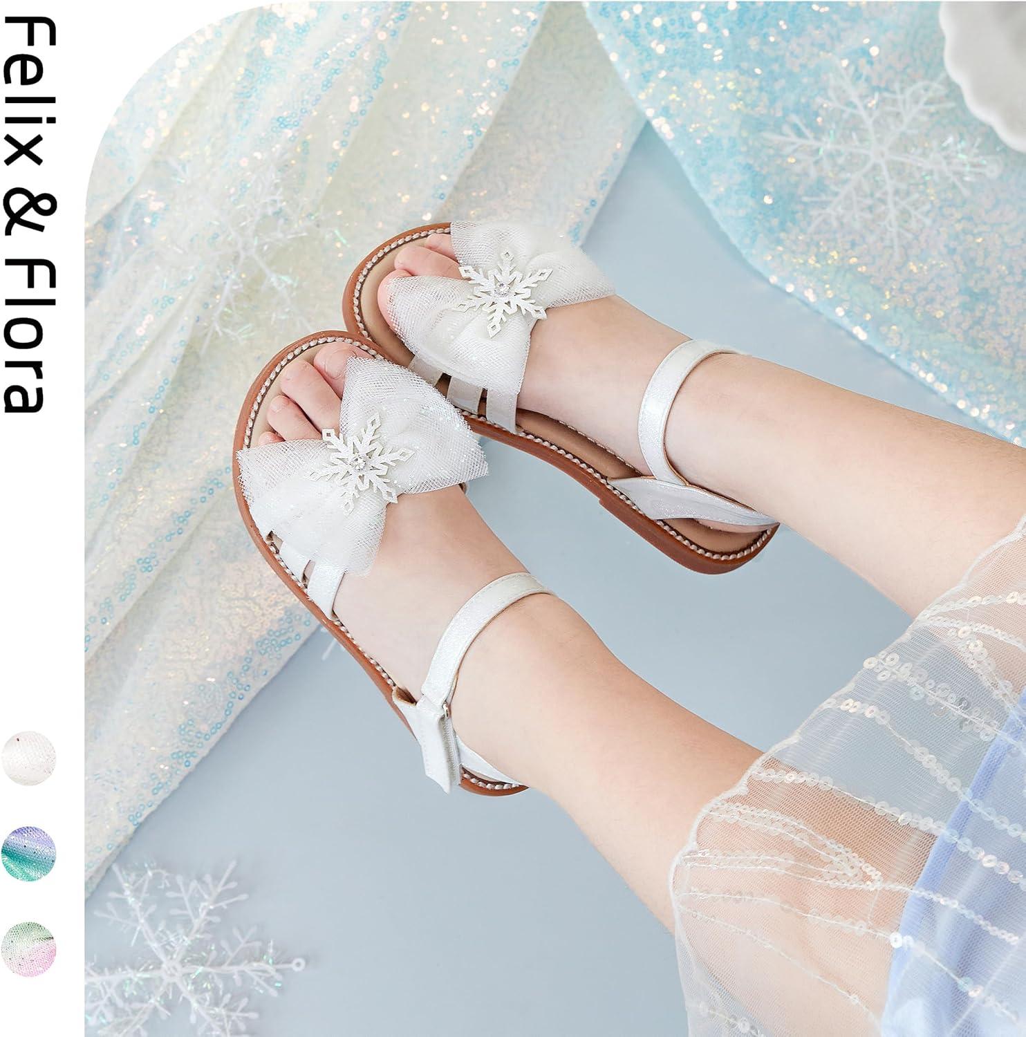 Felix & Flora Toddler Girl Sandals -Flower Girl Dress Shoes Open Toe Little Kid Summer Flats(Bc320-white)