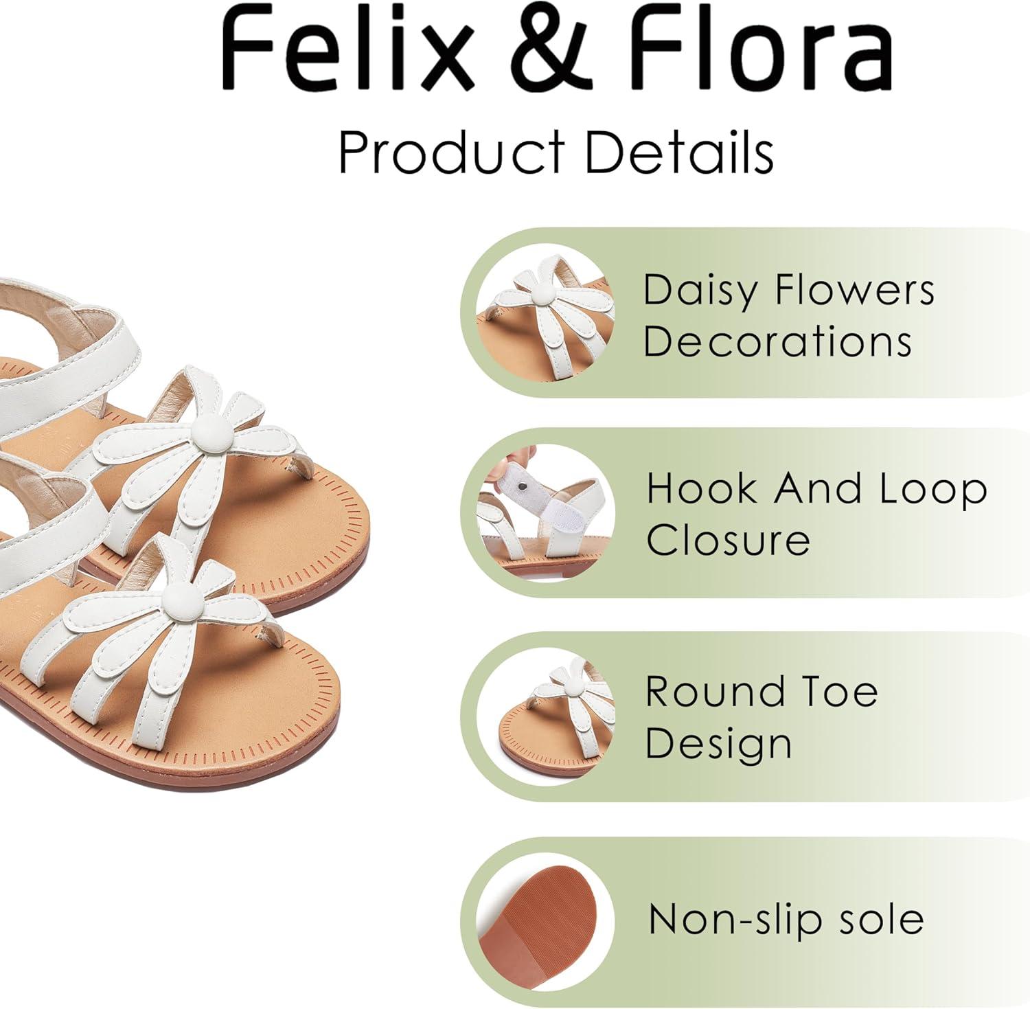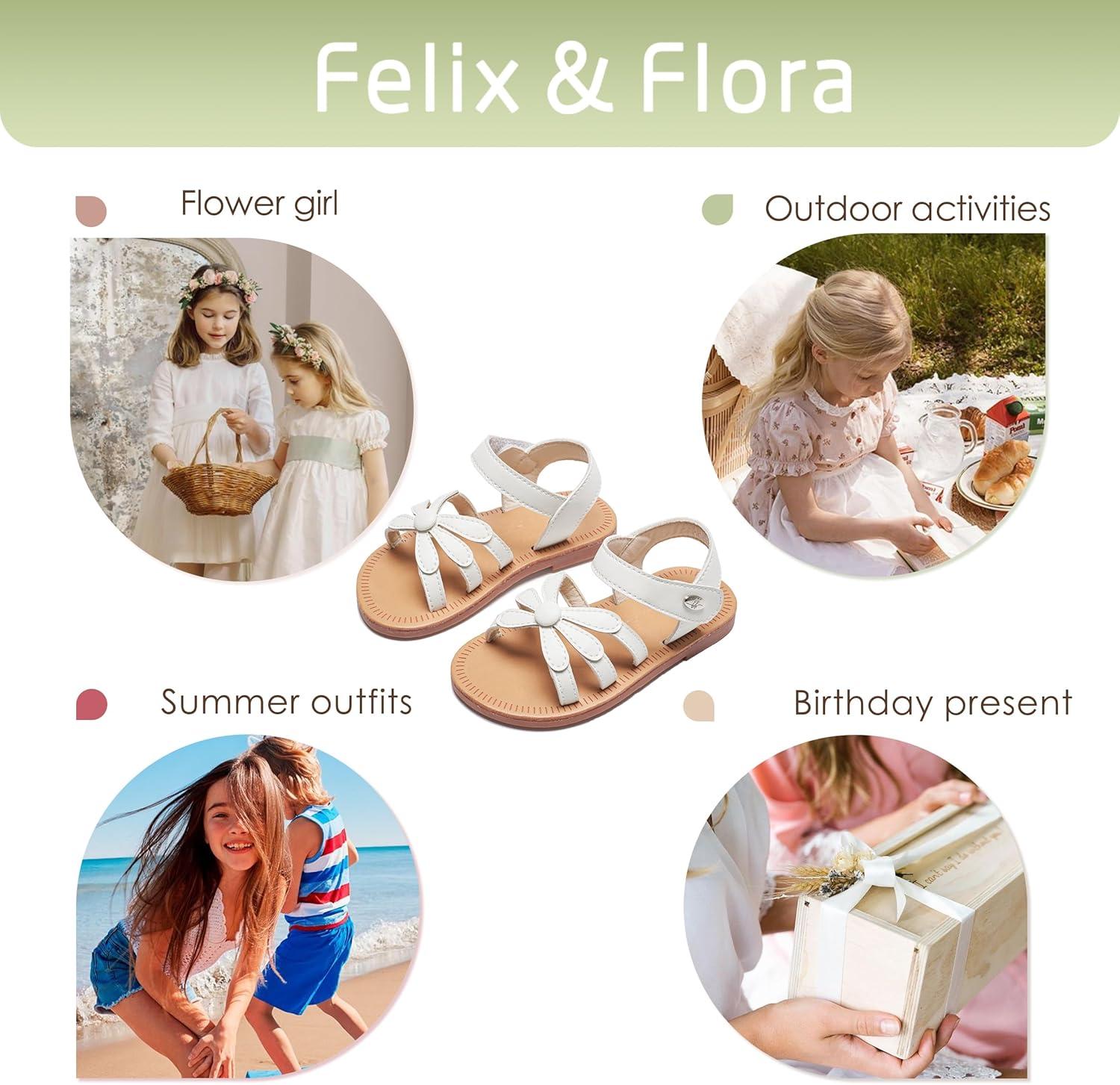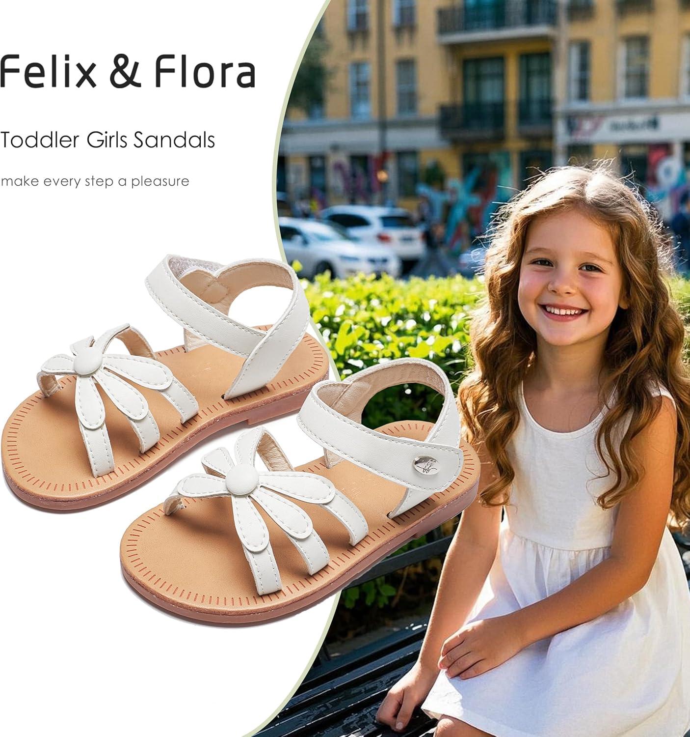 Felix & Flora Toddler Girl Sandals – Flower Girl Dress Shoes Open Toe Little Kid Summer Flats(Bc325-cream)