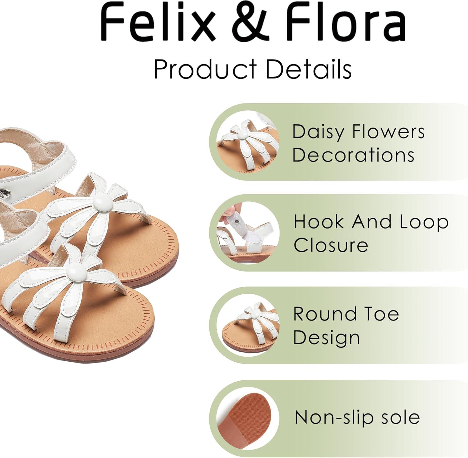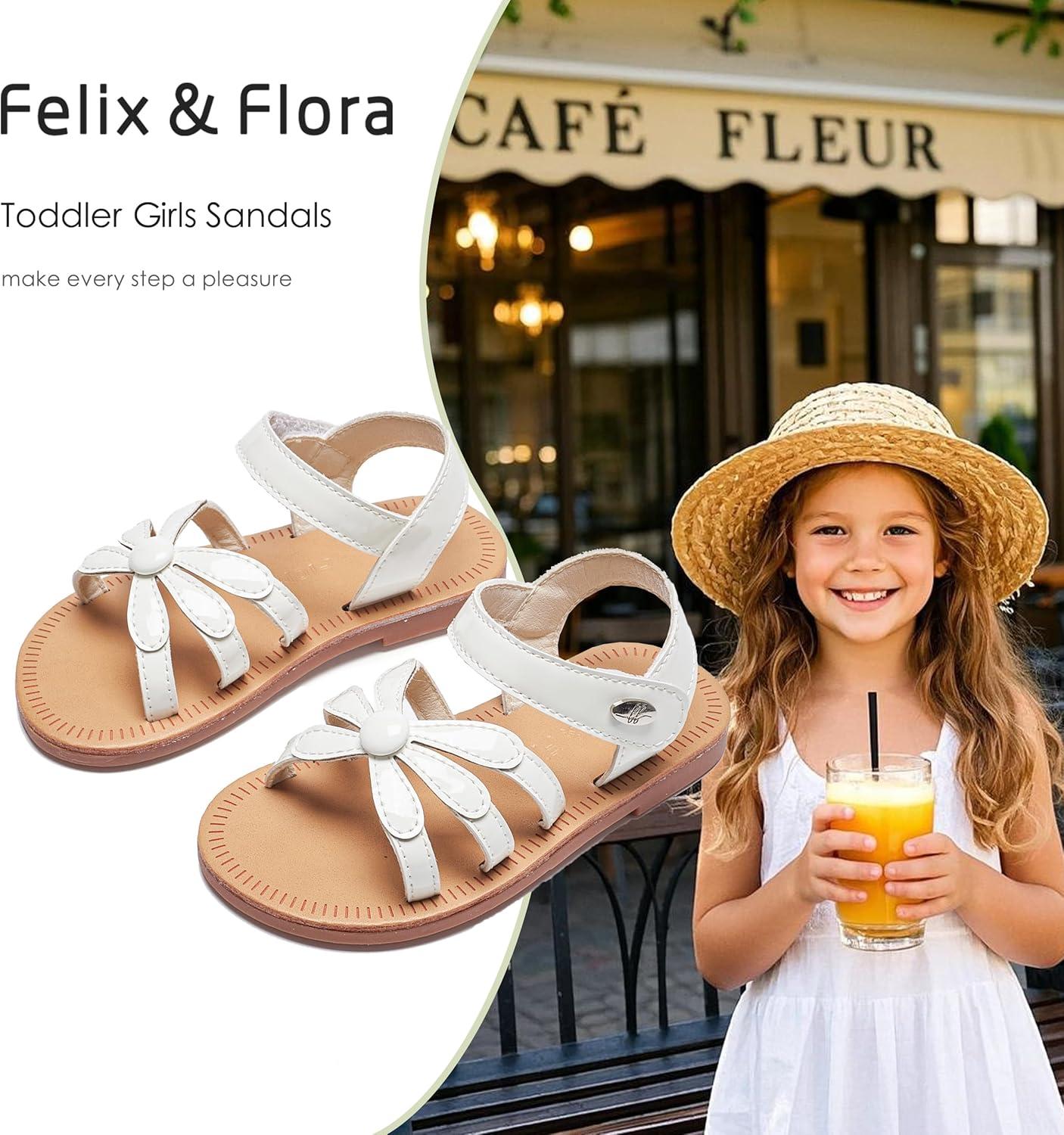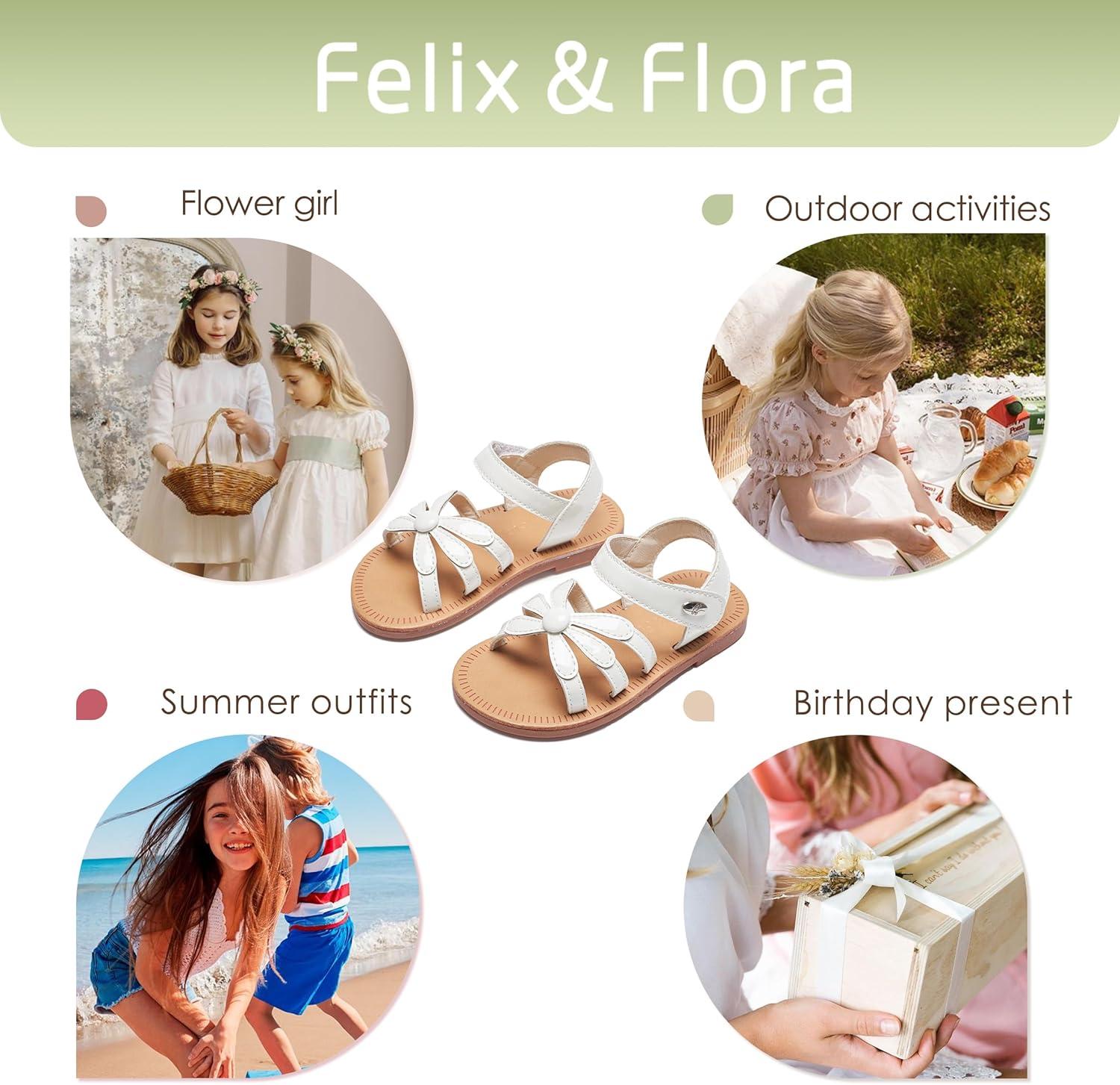 Felix & Flora Toddler Girl Sandals – Flower Girl Dress Shoes Open Toe Little Kid Summer Flats(Bc325-pl White)