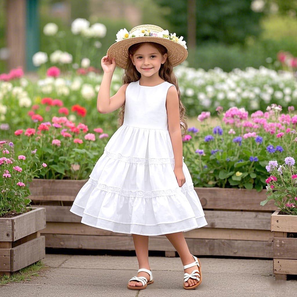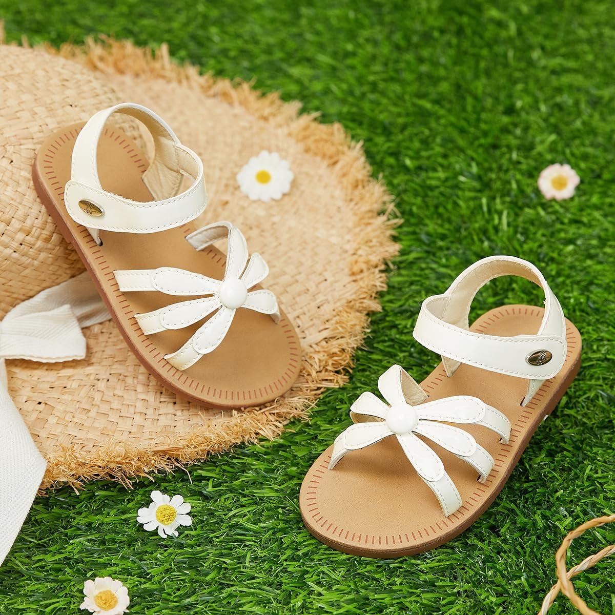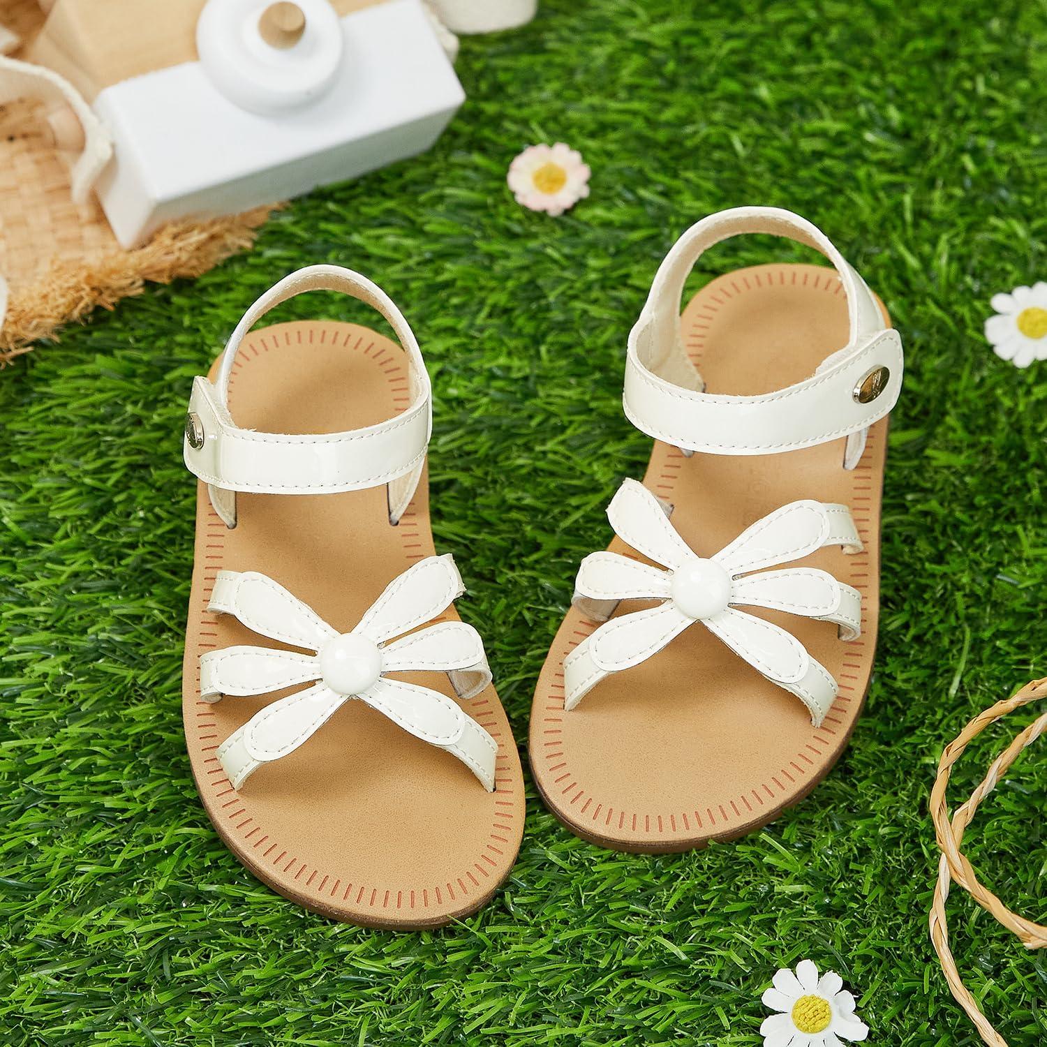 Felix & Flora Toddler Girl Sandals – Flower Girl Dress Shoes Open Toe Little Kid Summer Flats(Bc325-pl White)