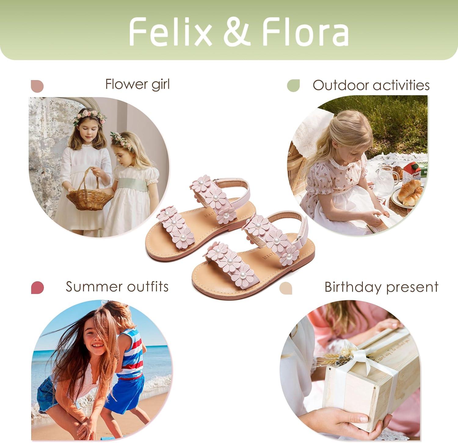 Felix & Flora Toddler Girl Sandals – Flower Girl Dress Shoes Open Toe Little Kid Summer Flats(Bc330-pink)