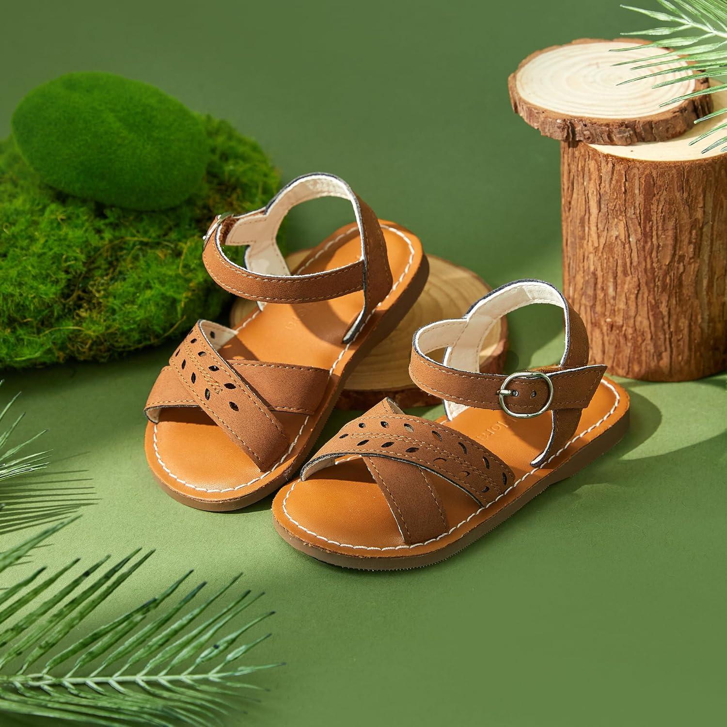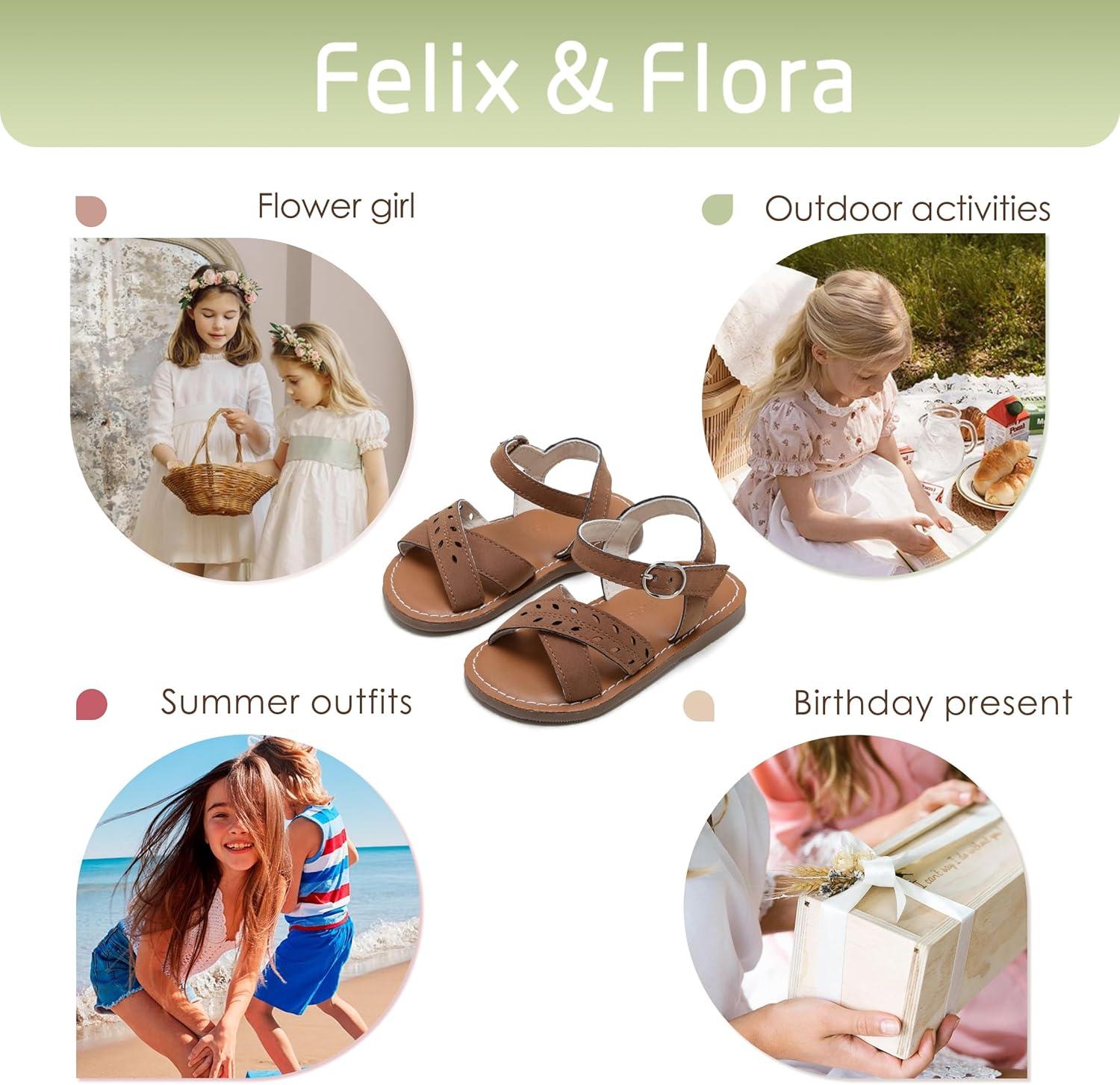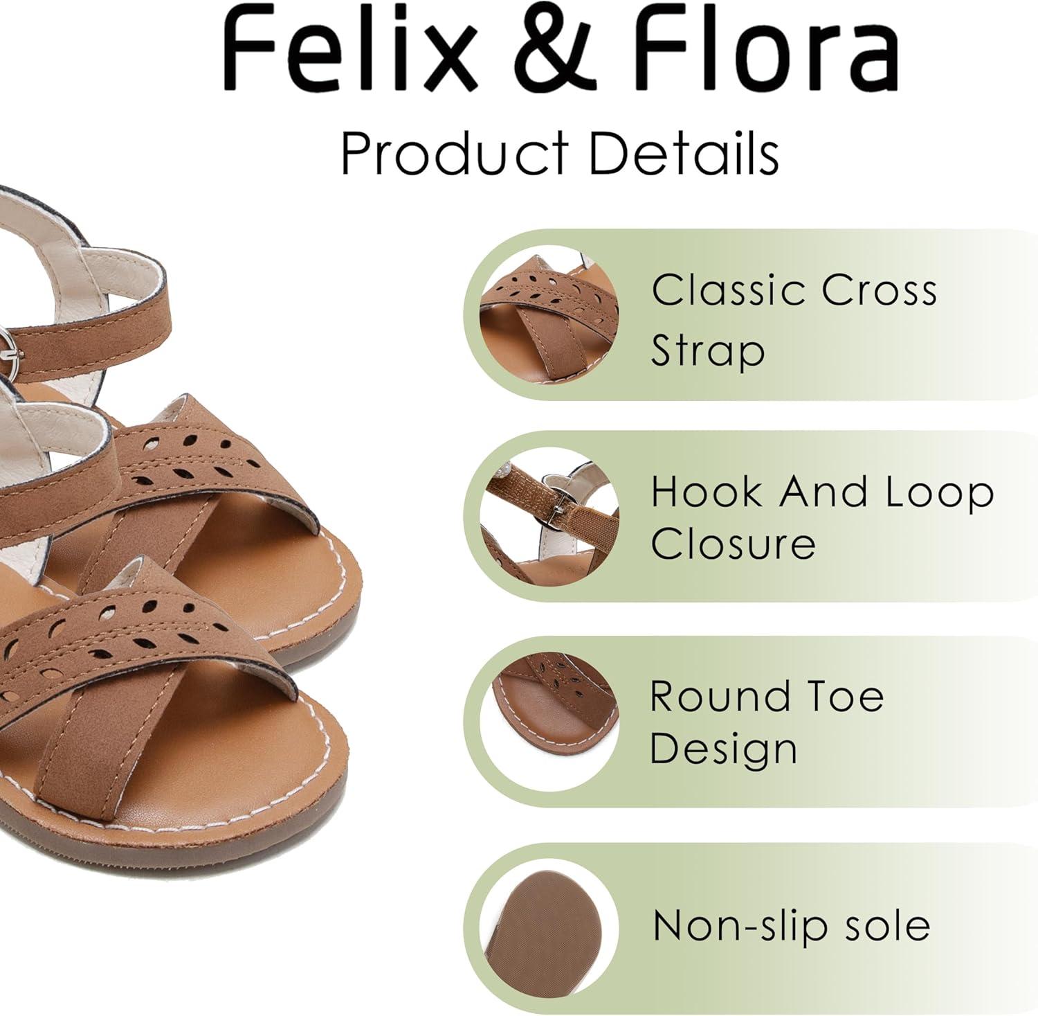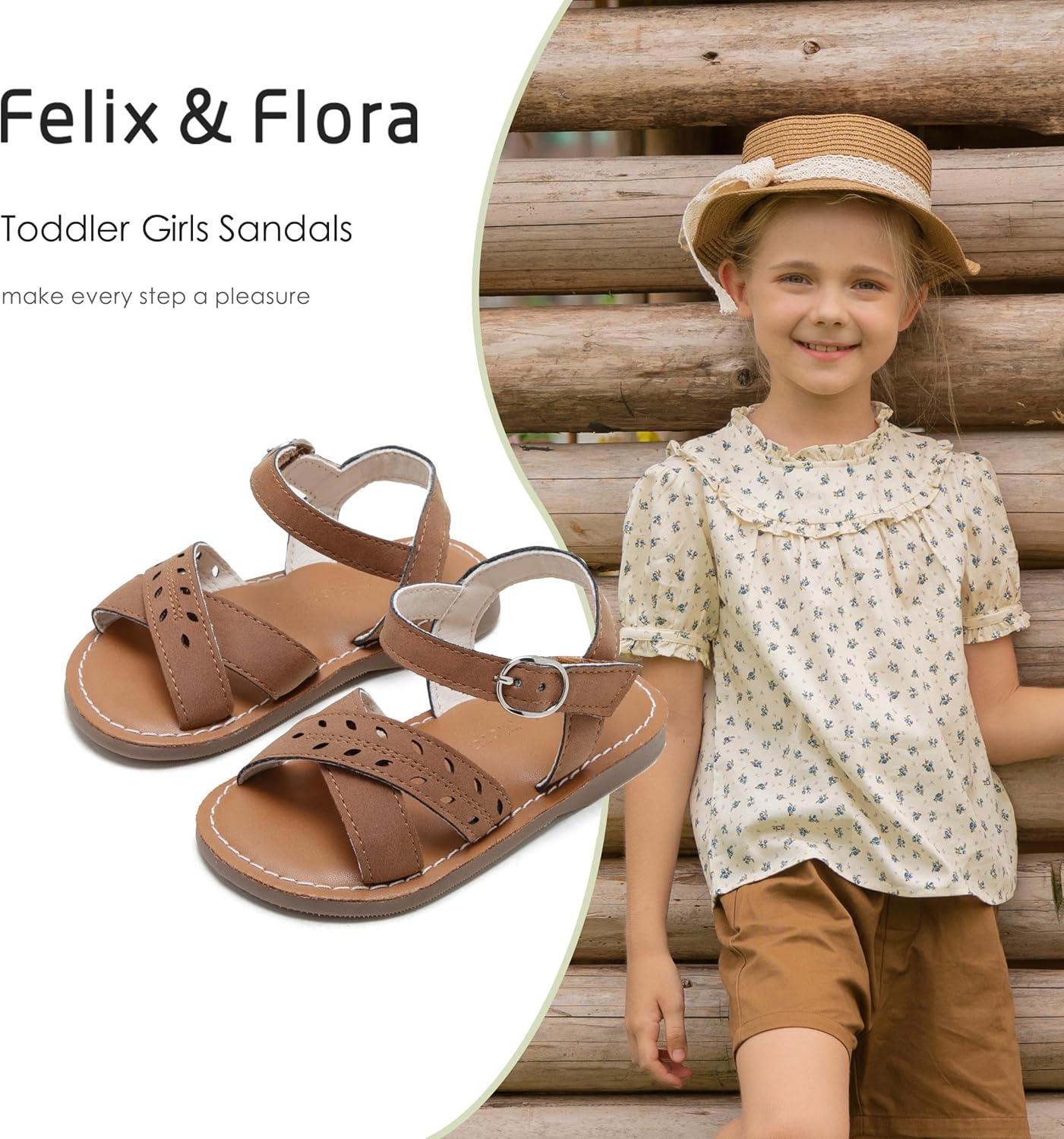 Felix & Flora Toddler Girl Sandals – Little Girl Easter Summer Dress Shoes Lightweight Open Toe Beach Holiday.(Bc219-fs Brown)