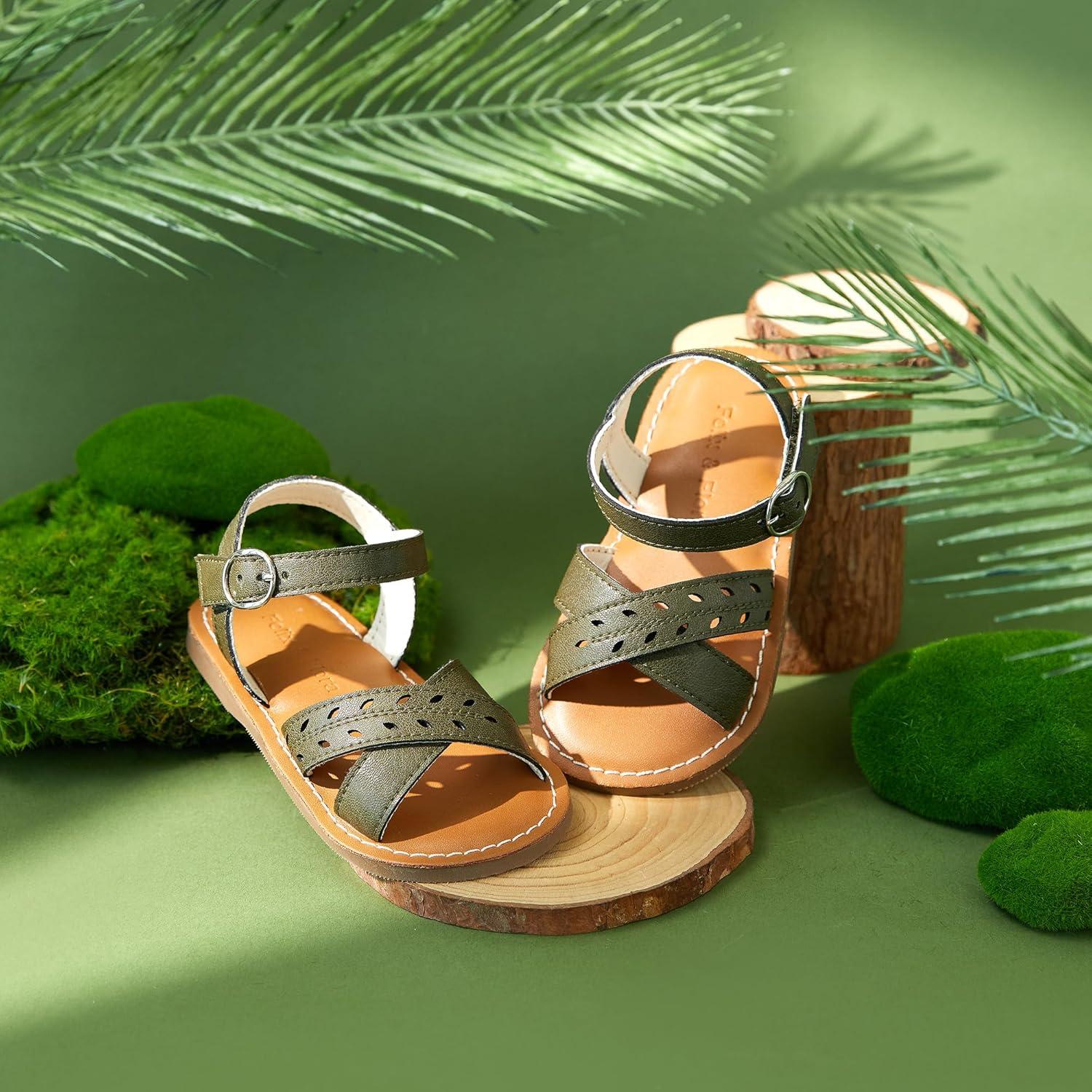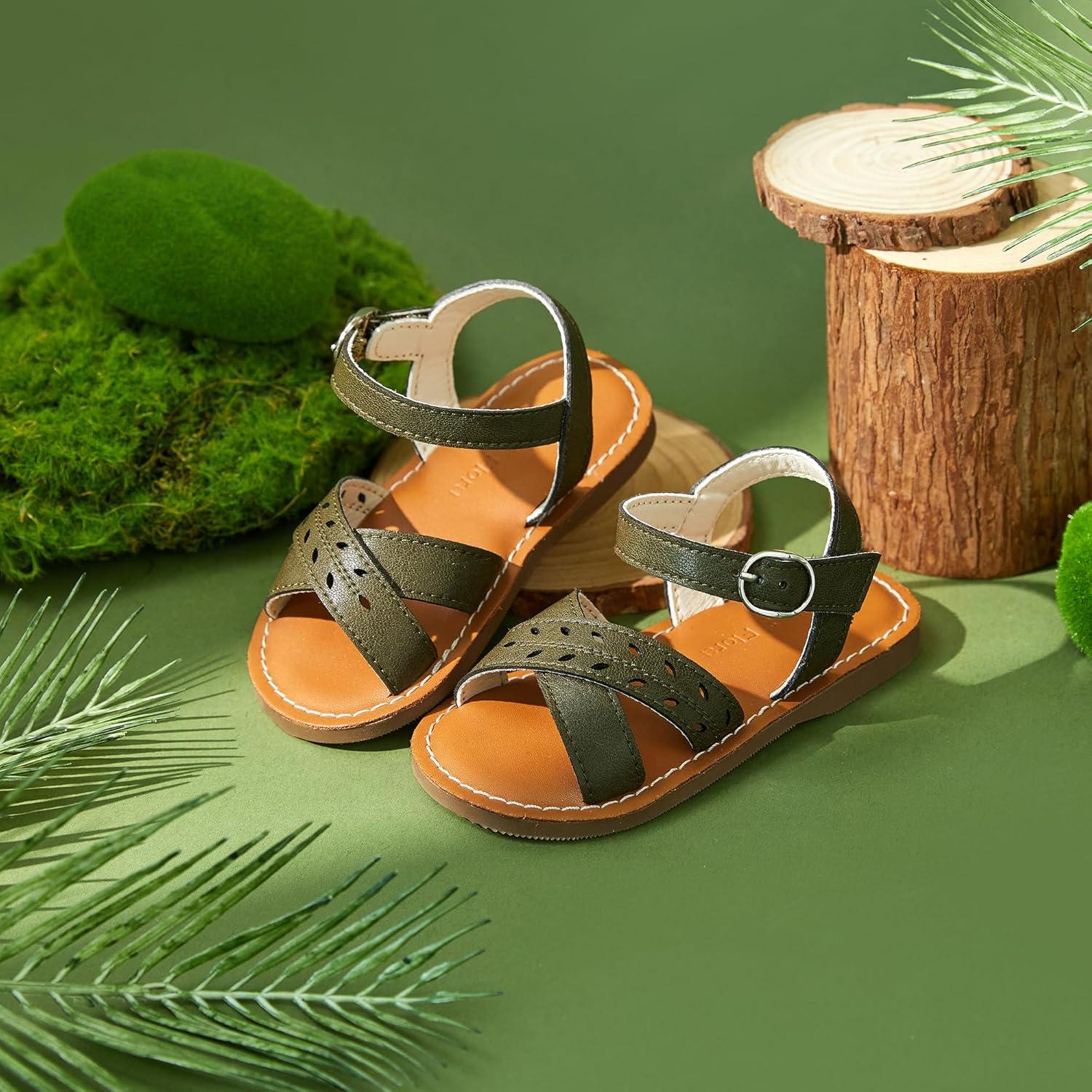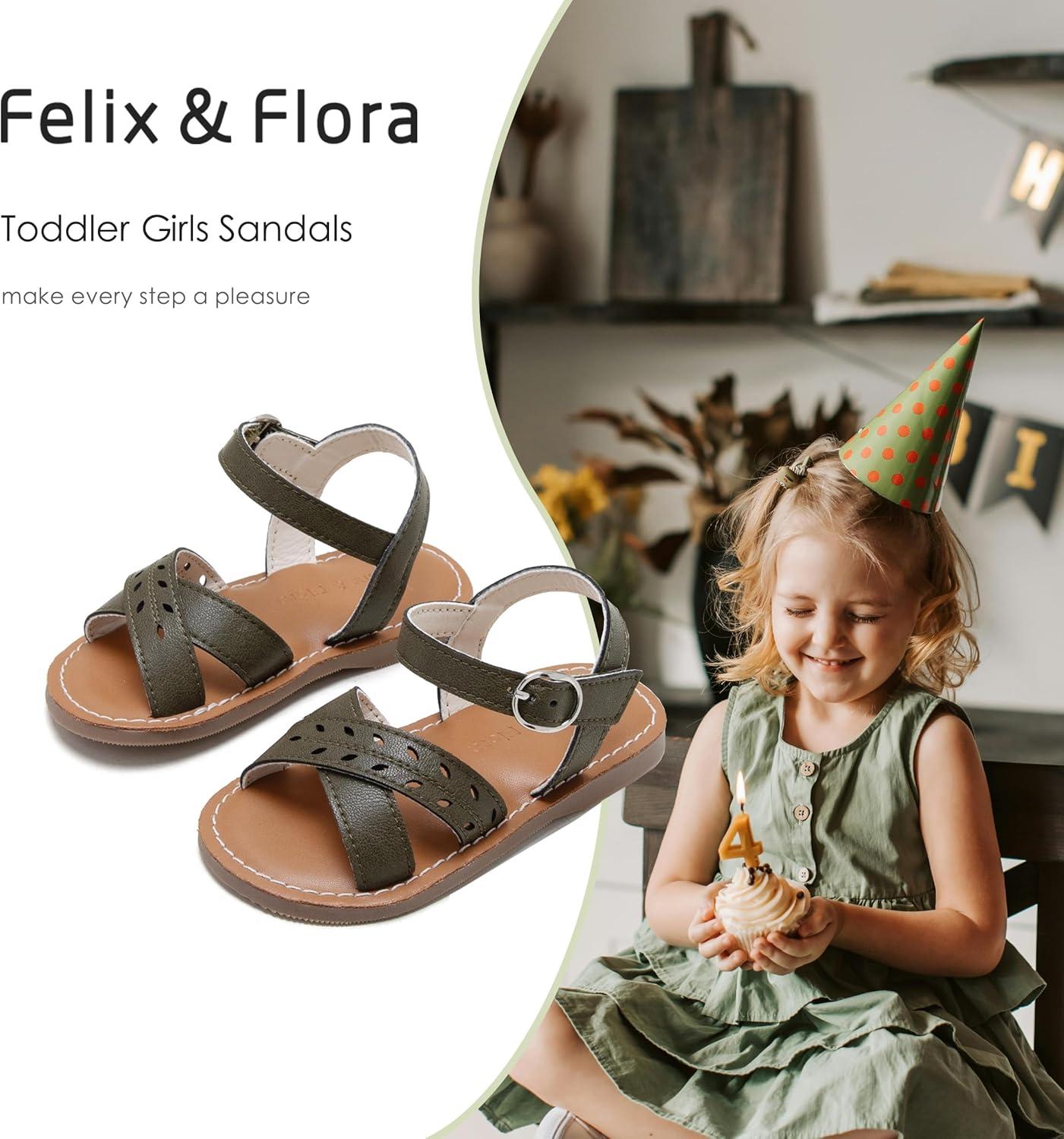 Felix & Flora Toddler Girl Sandals – Little Girl Easter Summer Dress Shoes Lightweight Open Toe Beach Holiday.(Bc219-olive Green)