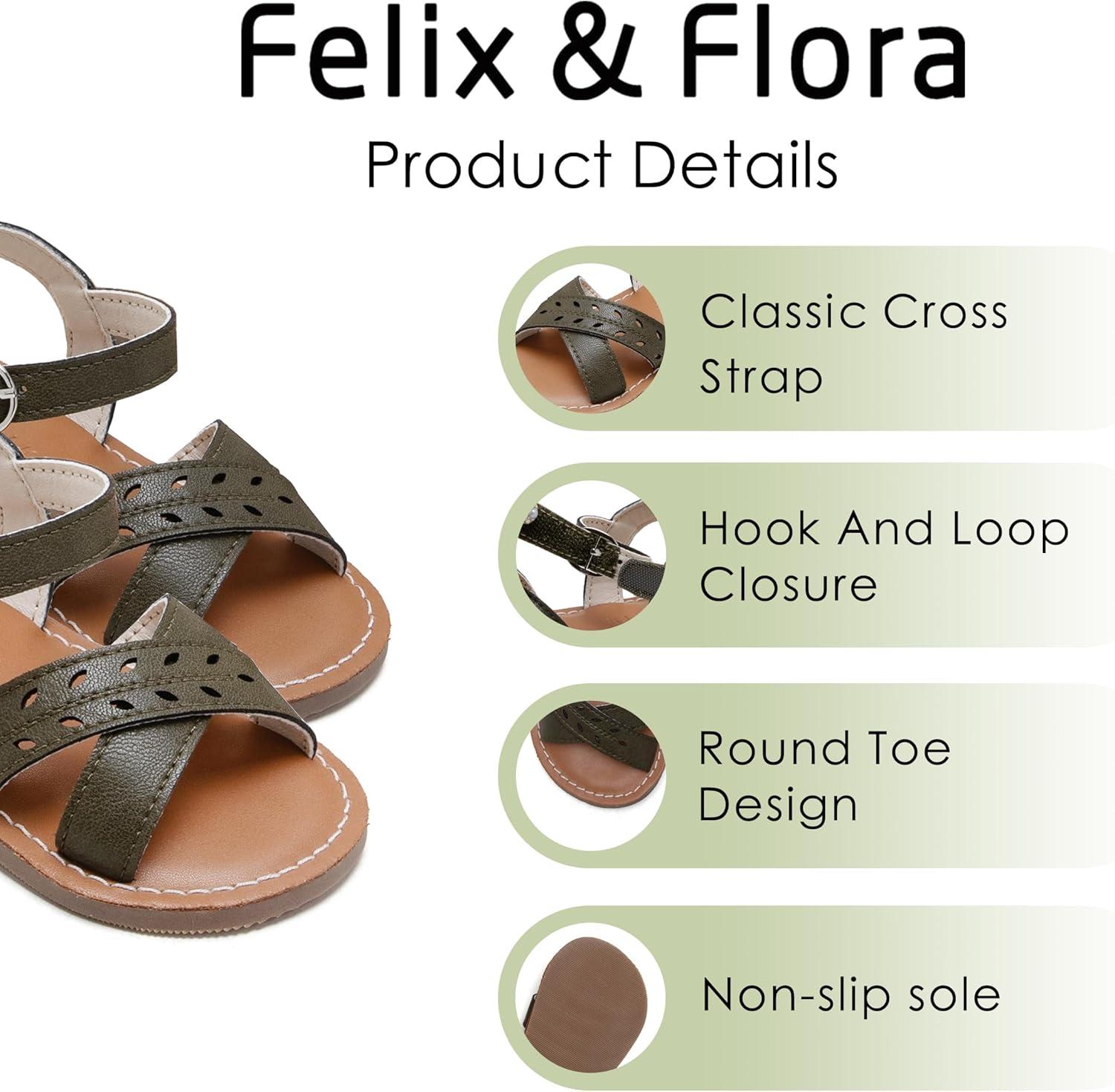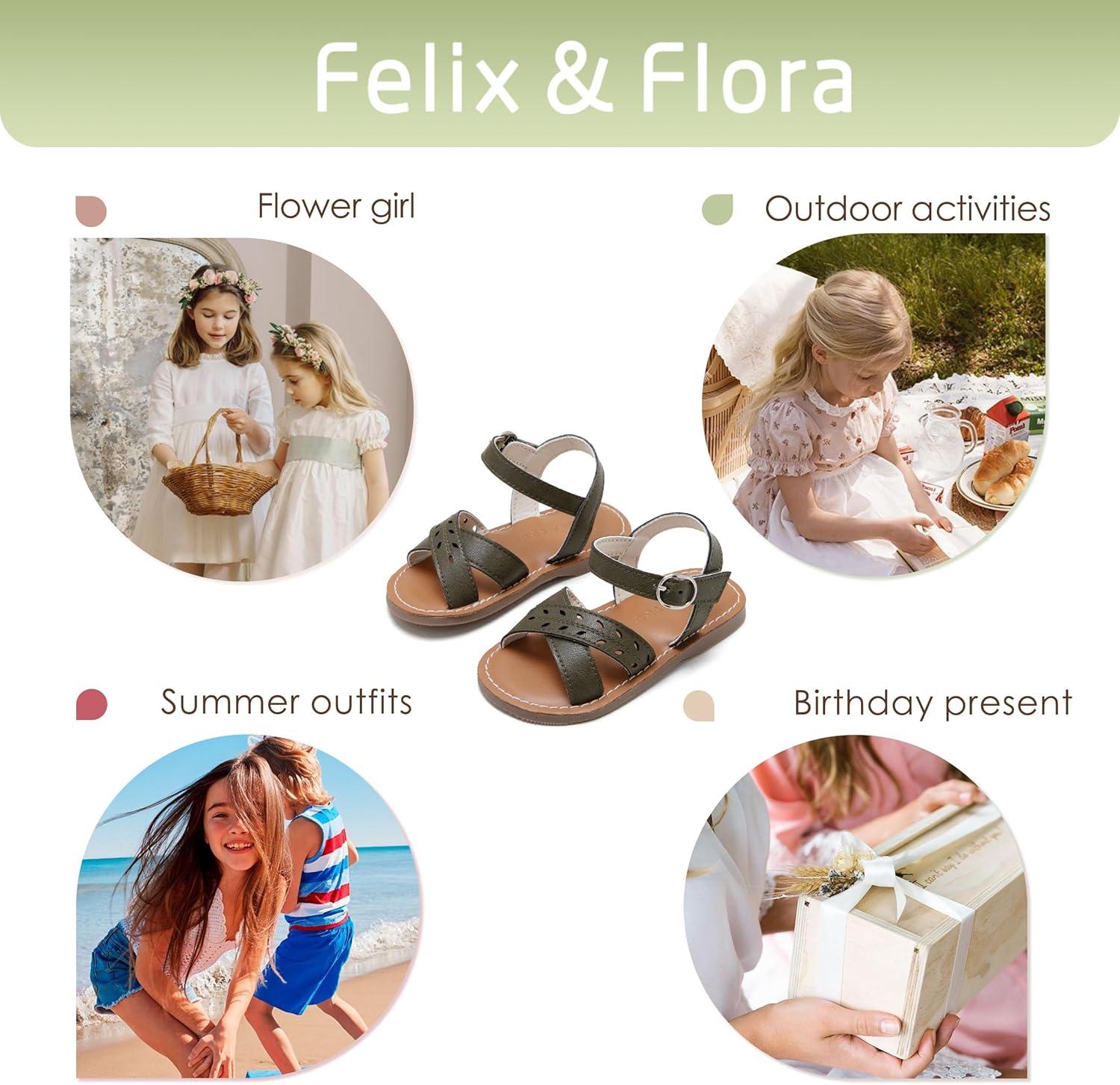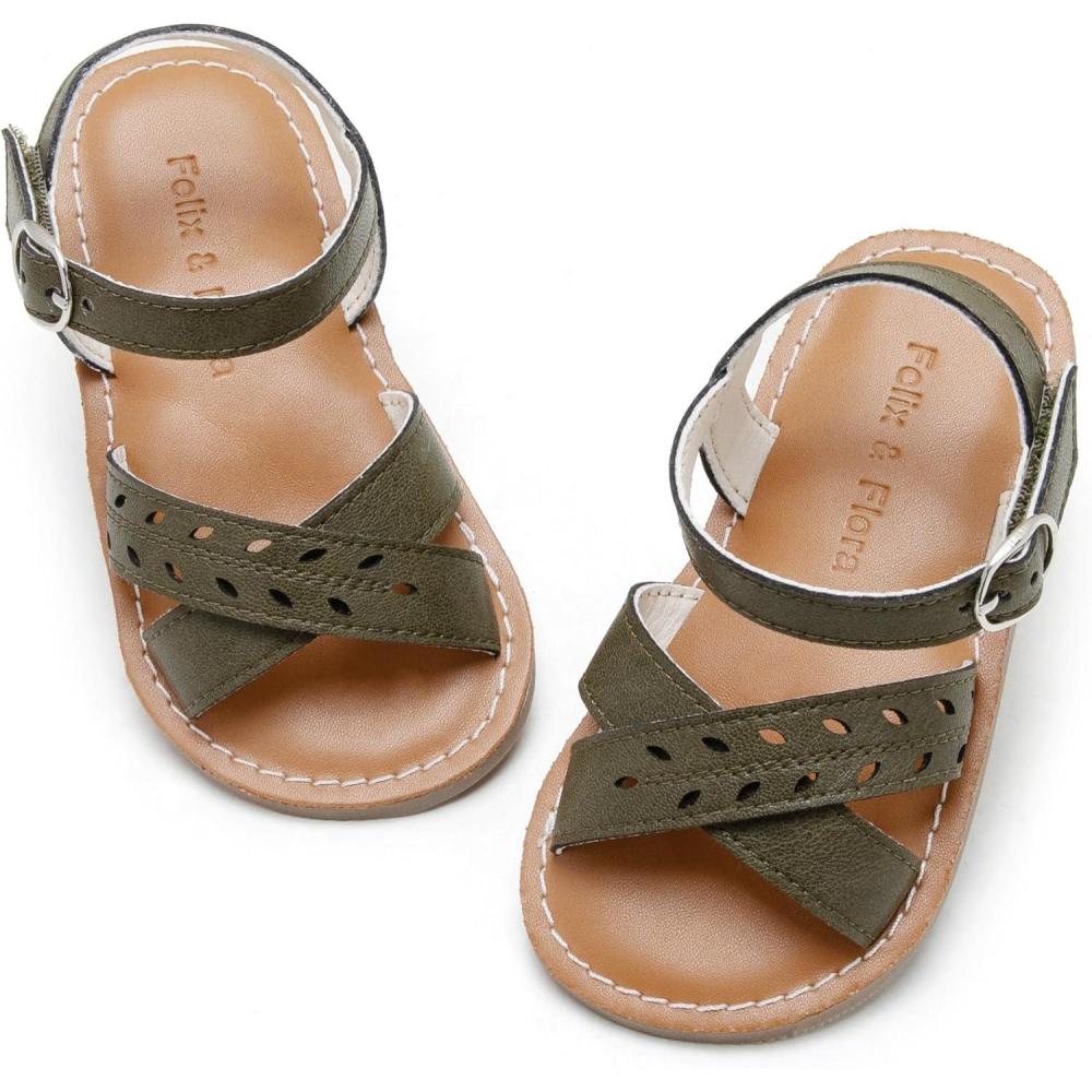 Felix & Flora Toddler Girl Sandals – Little Girl Easter Summer Dress Shoes Lightweight Open Toe Beach Holiday.(Bc219-olive Green)