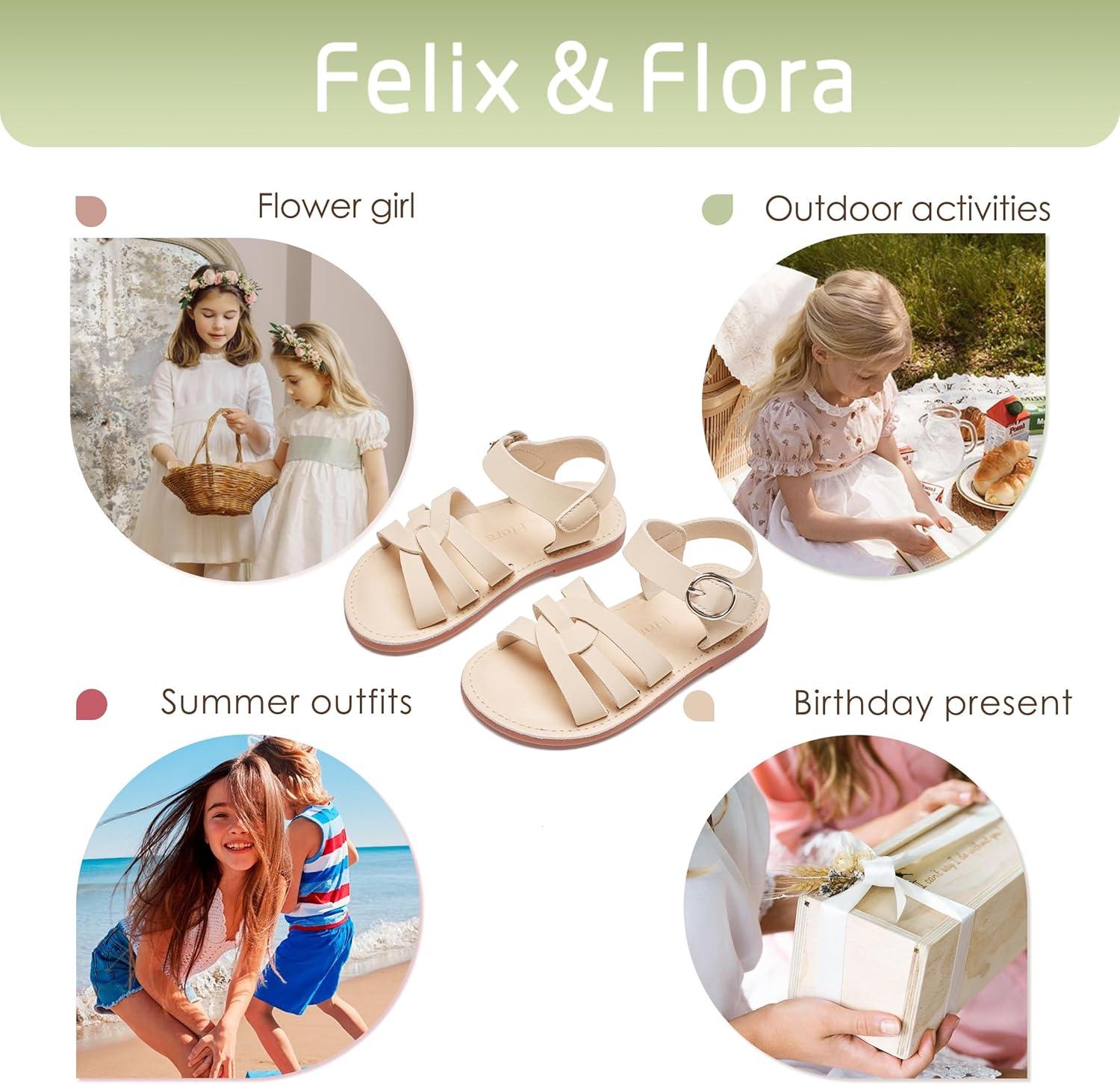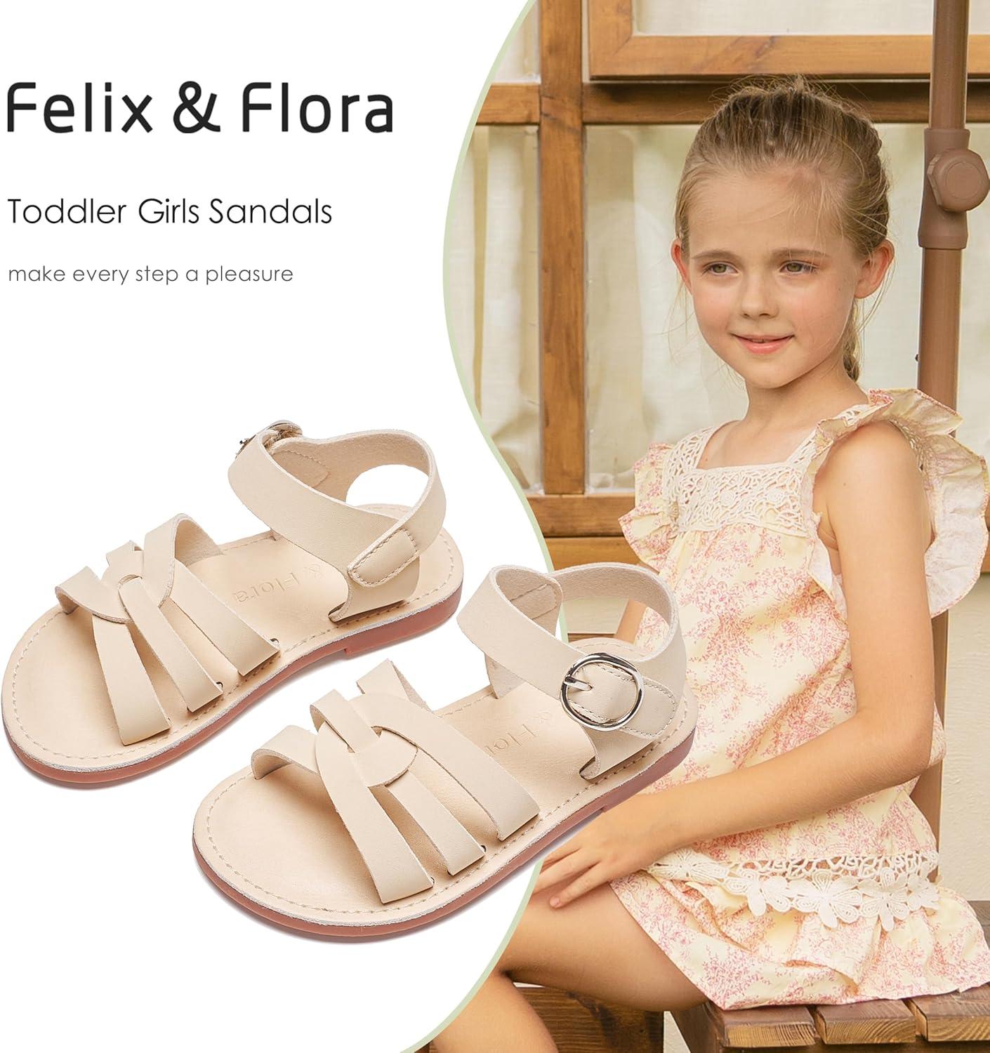Felix & Flora Toddler Girl Sandals – Little Girl Easter Summer Dress Shoes Lightweight Open Toe Beach Holiday.(Bc222-apricot)