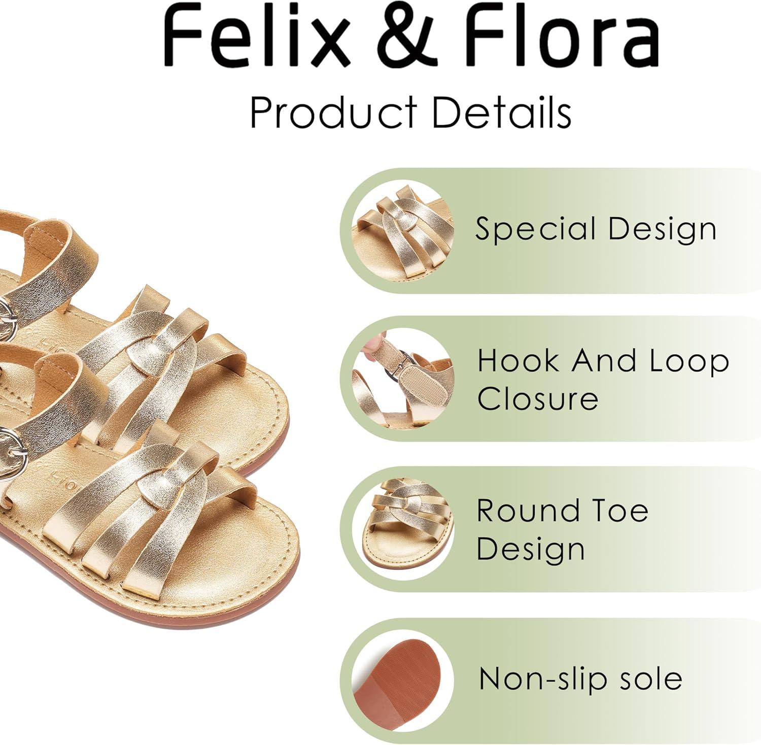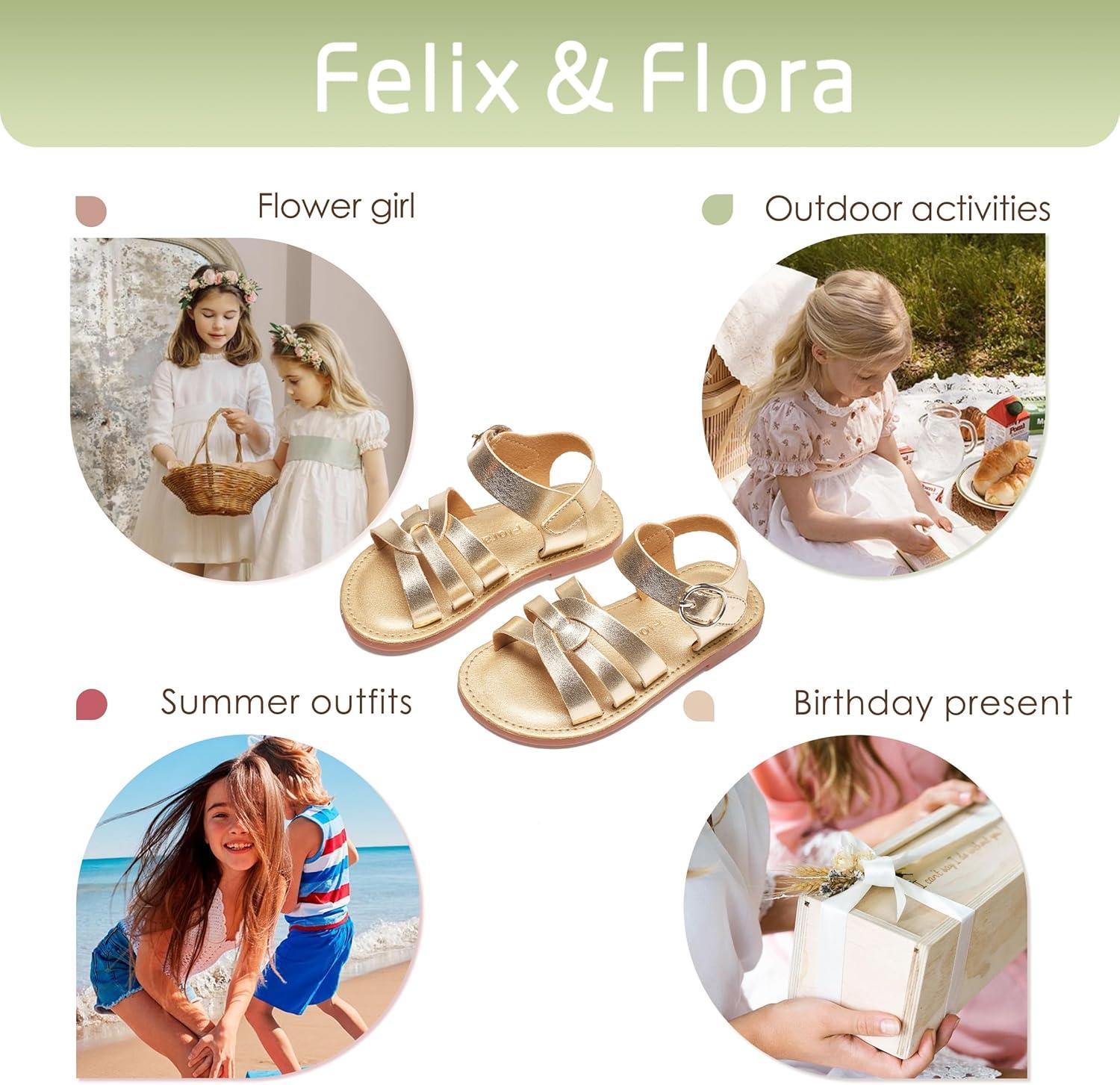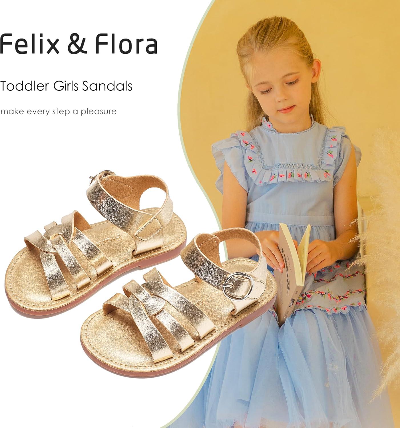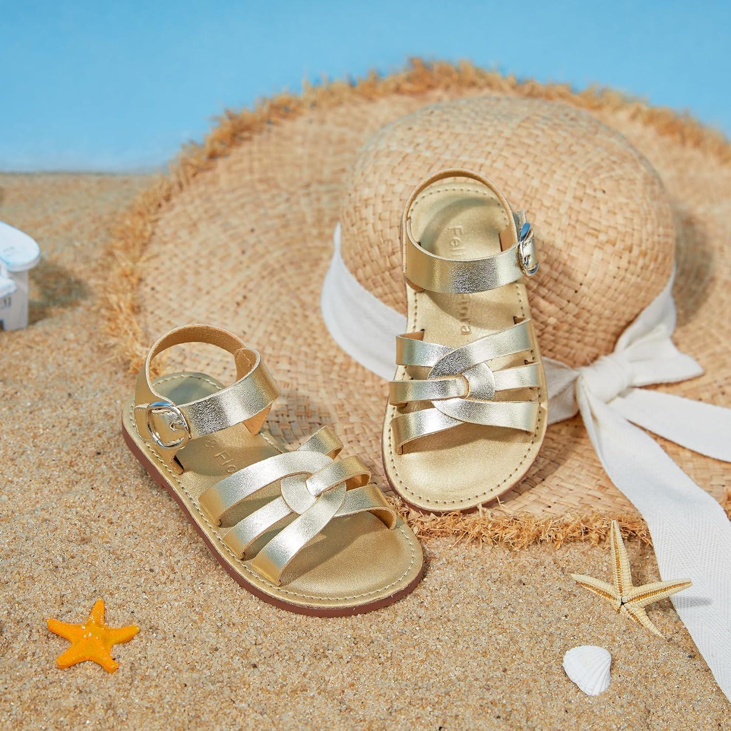 Felix & Flora Toddler Girl Sandals – Little Girl Easter Summer Dress Shoes Lightweight Open Toe Beach Holiday.(Bc222-bright Gold)