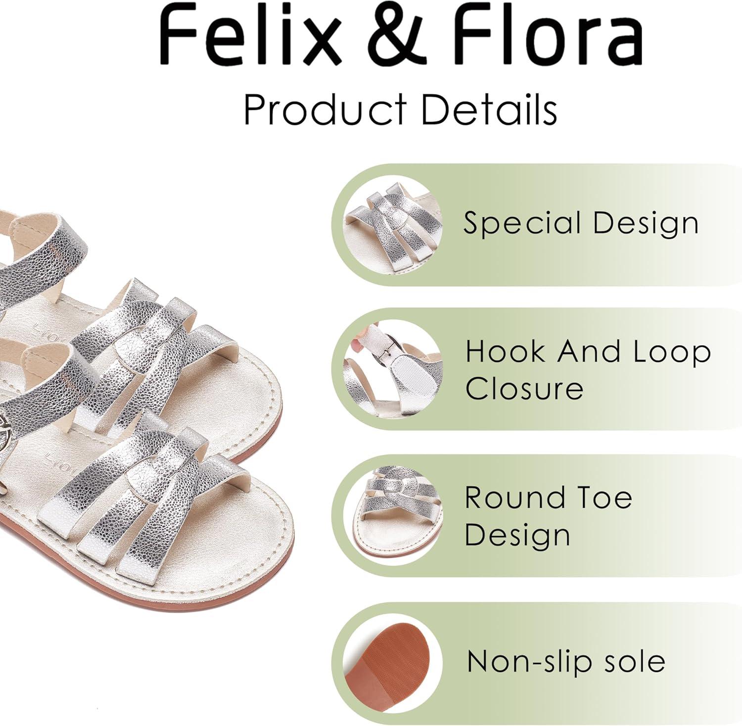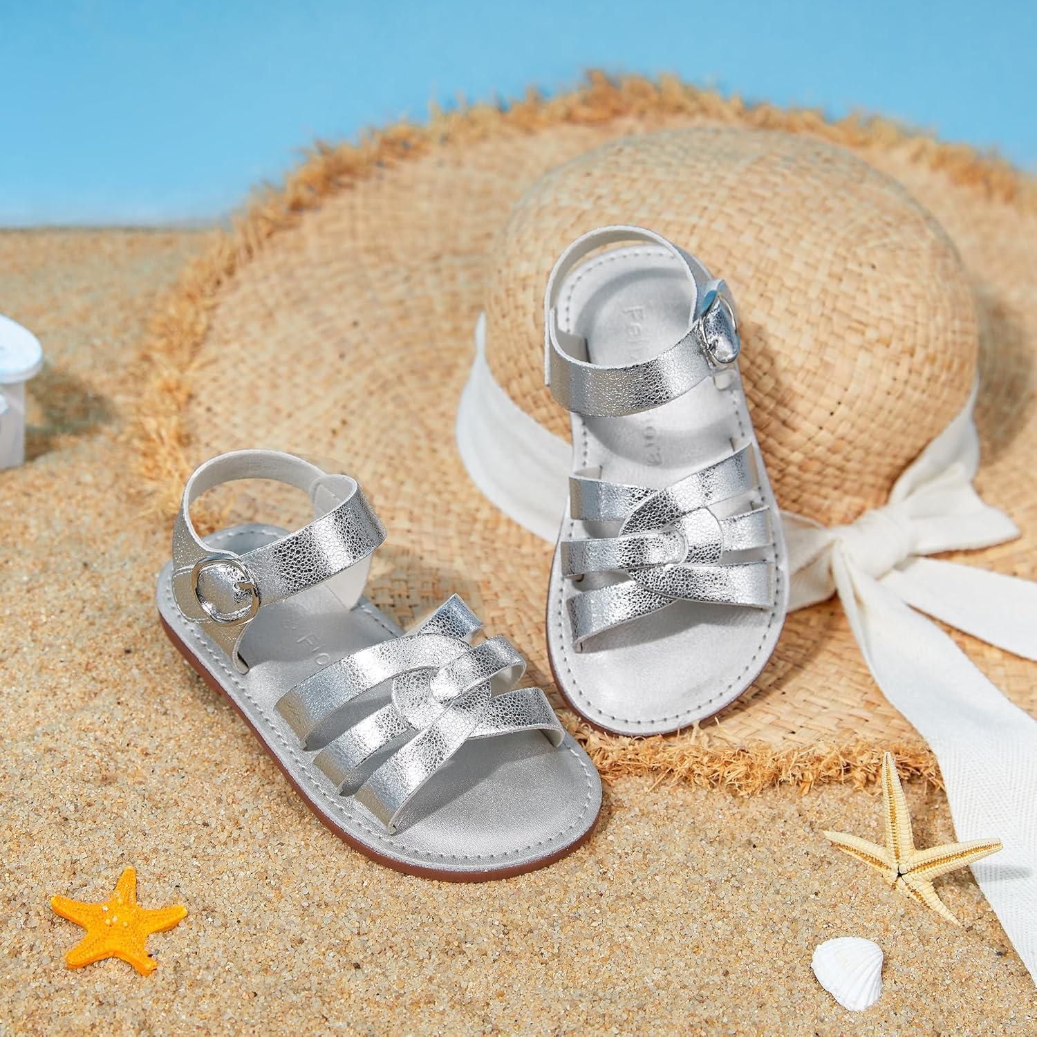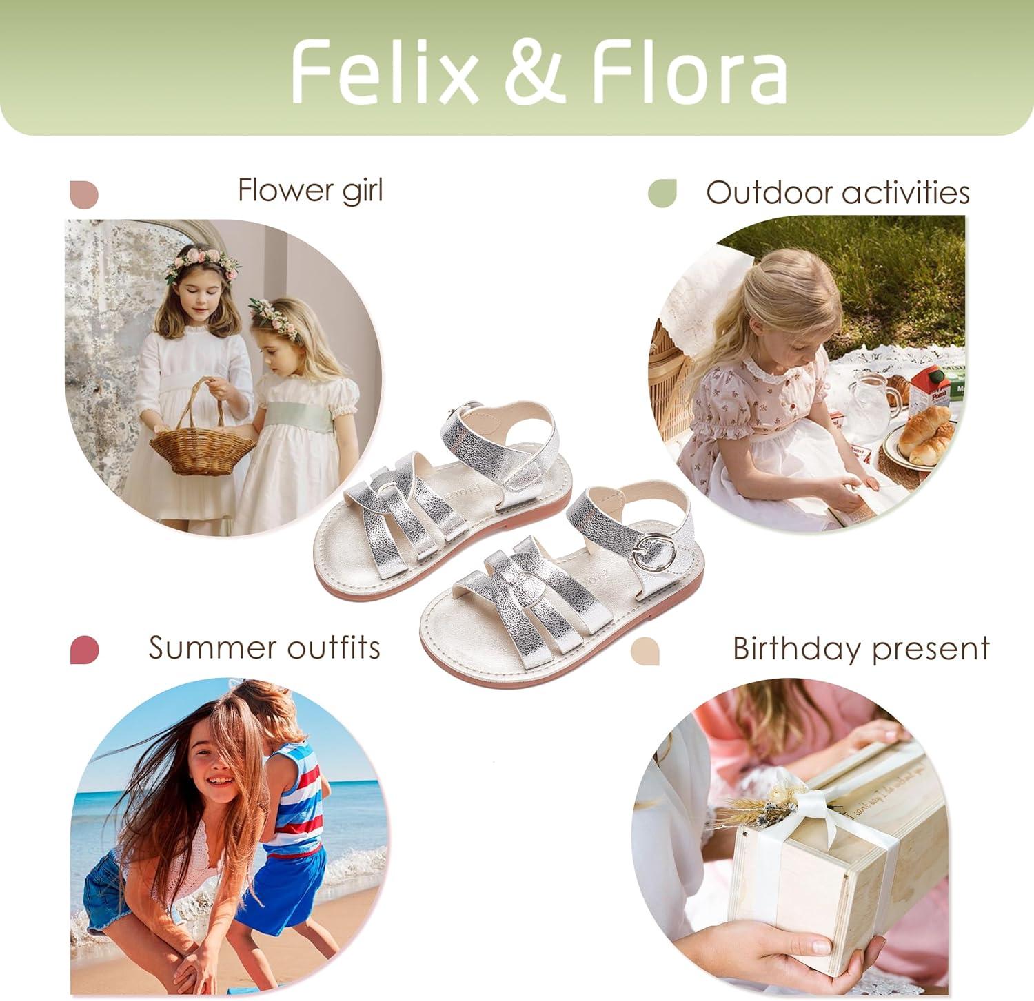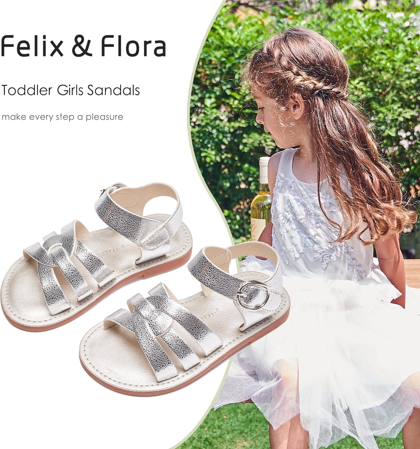 Felix & Flora Toddler Girl Sandals – Little Girl Easter Summer Dress Shoes Lightweight Open Toe Beach Holiday.(Bc222-bright Silver)