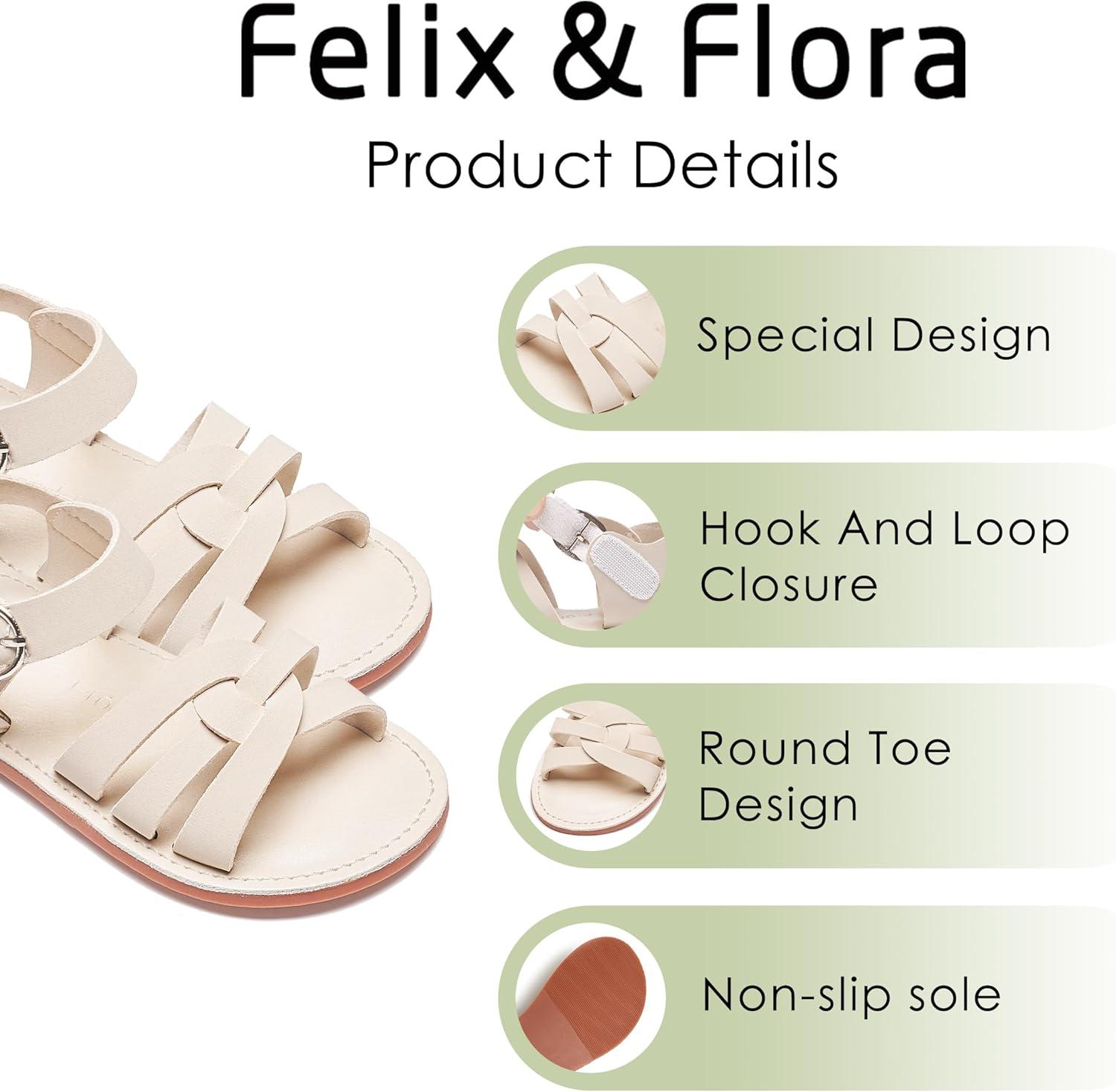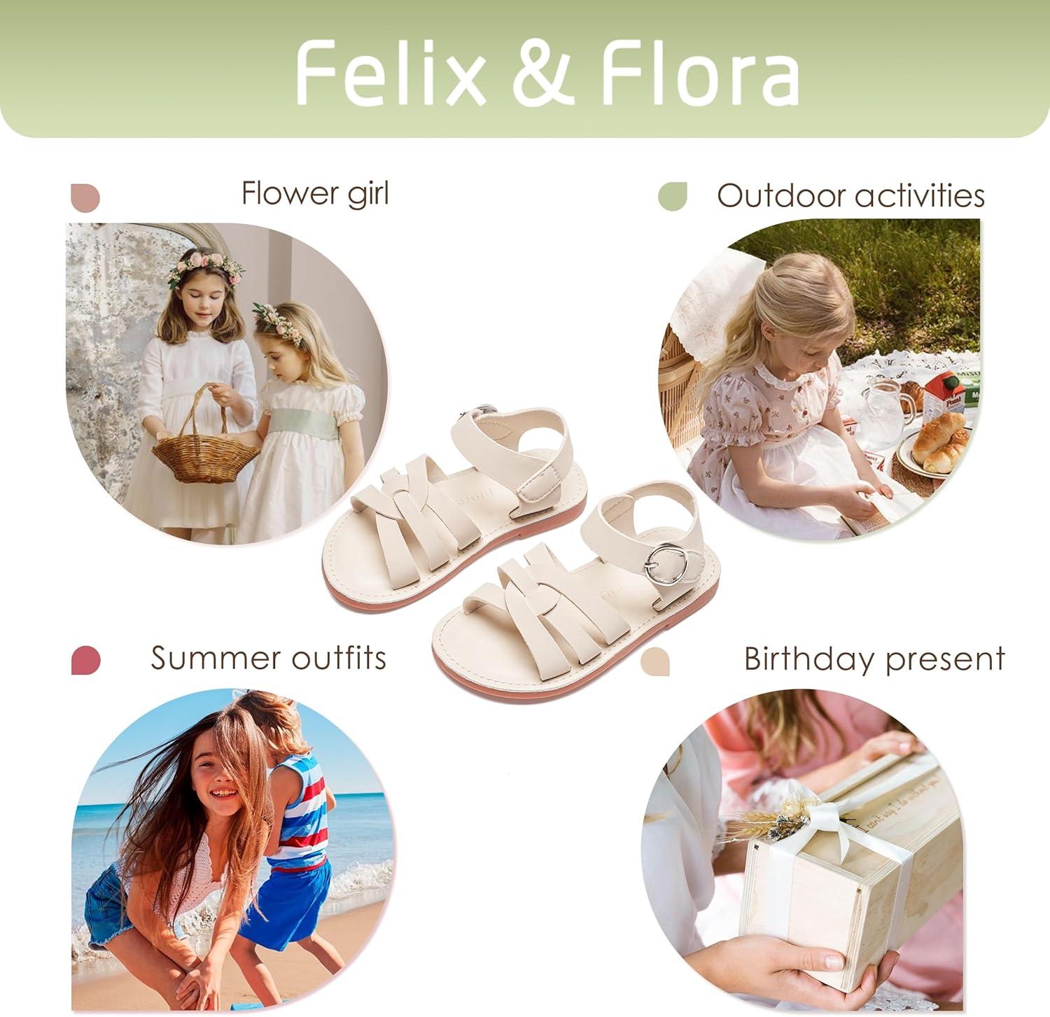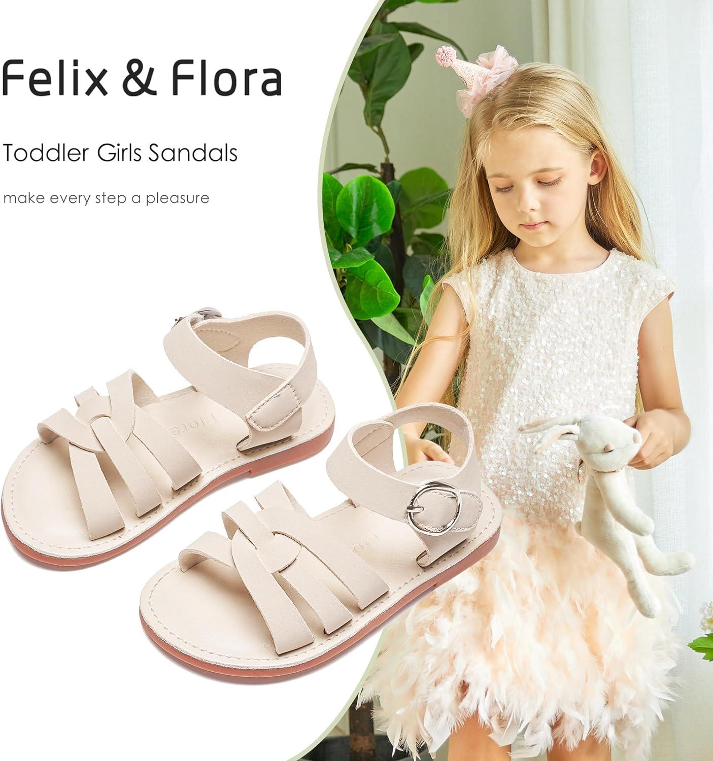 Felix & Flora Toddler Girl Sandals – Little Girl Easter Summer Dress Shoes Lightweight Open Toe Beach Holiday.(Bc222-moonbeam)