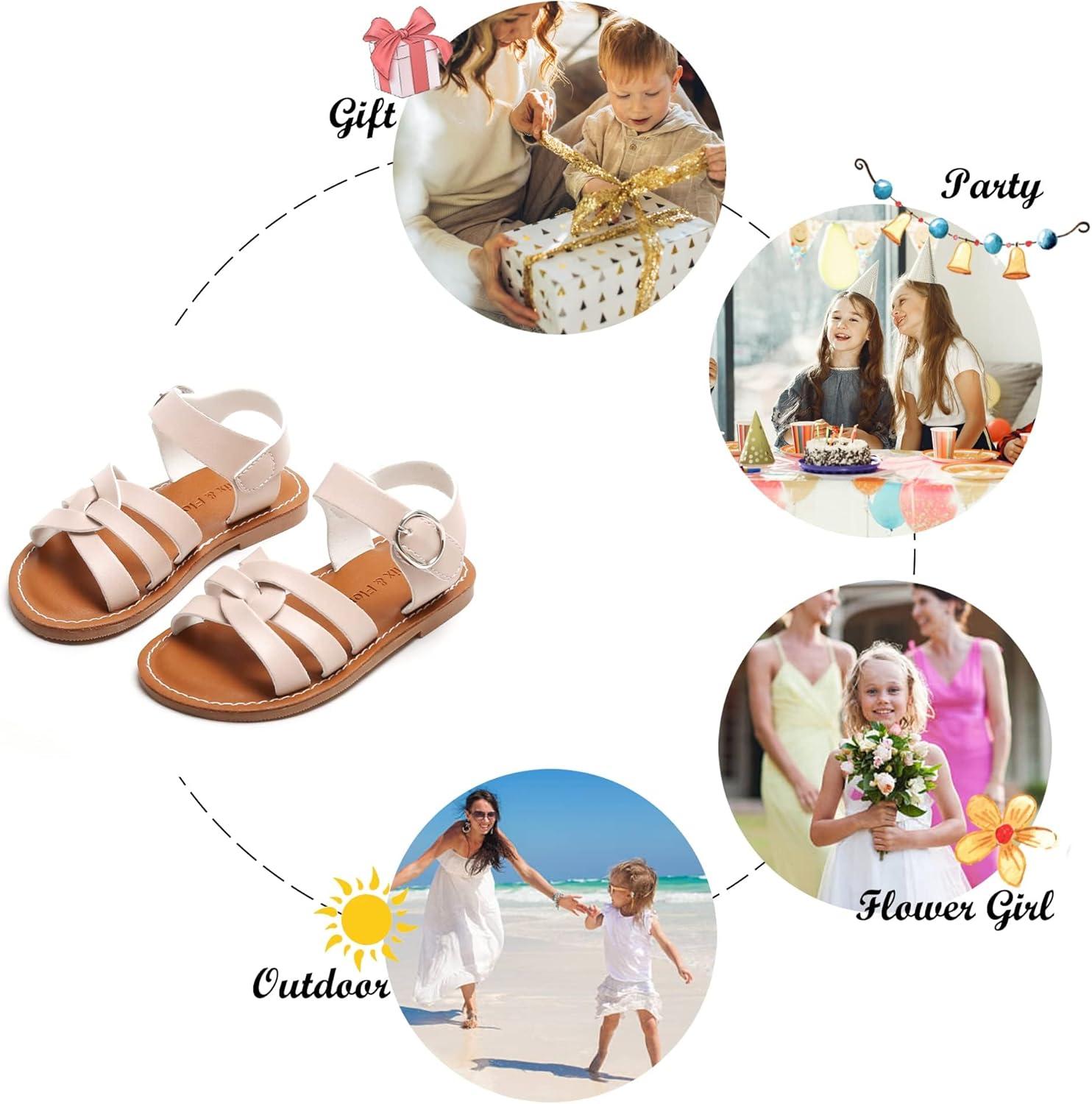 Felix & Flora Toddler Girl Sandals – Little Girl Easter Summer Dress Shoes Lightweight Open Toe Beach Holiday.(Bc222-nude)