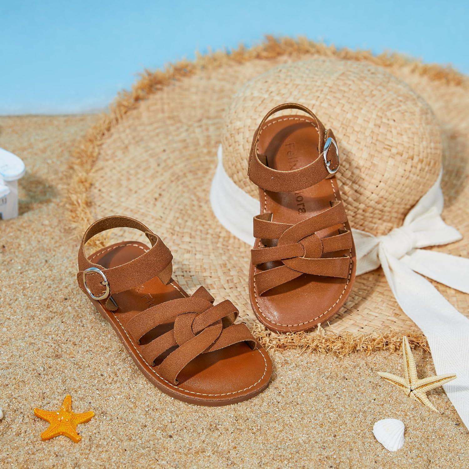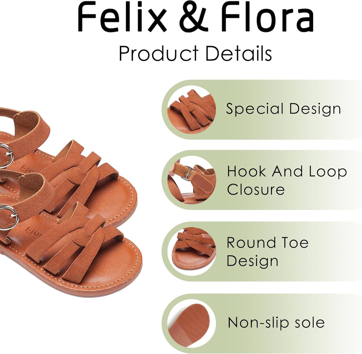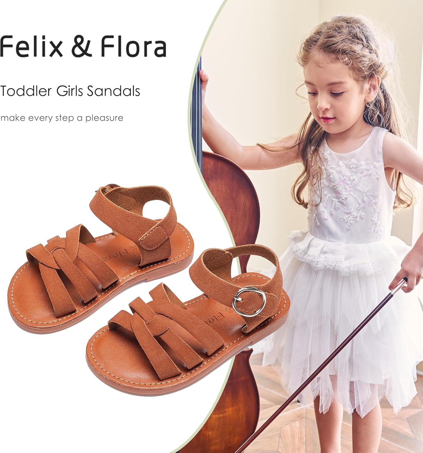 Felix & Flora Toddler Girl Sandals – Little Girl Easter Summer Dress Shoes Lightweight Open Toe Beach Holiday.(Bc222-reddish Brown)