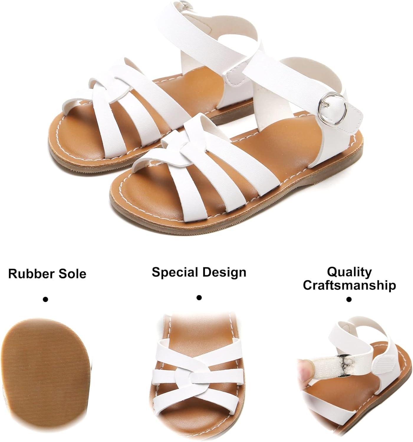 Felix & Flora Toddler Girl Sandals – Little Girl Easter Summer Dress Shoes Lightweight Open Toe Beach Holiday.(Bc222-white)