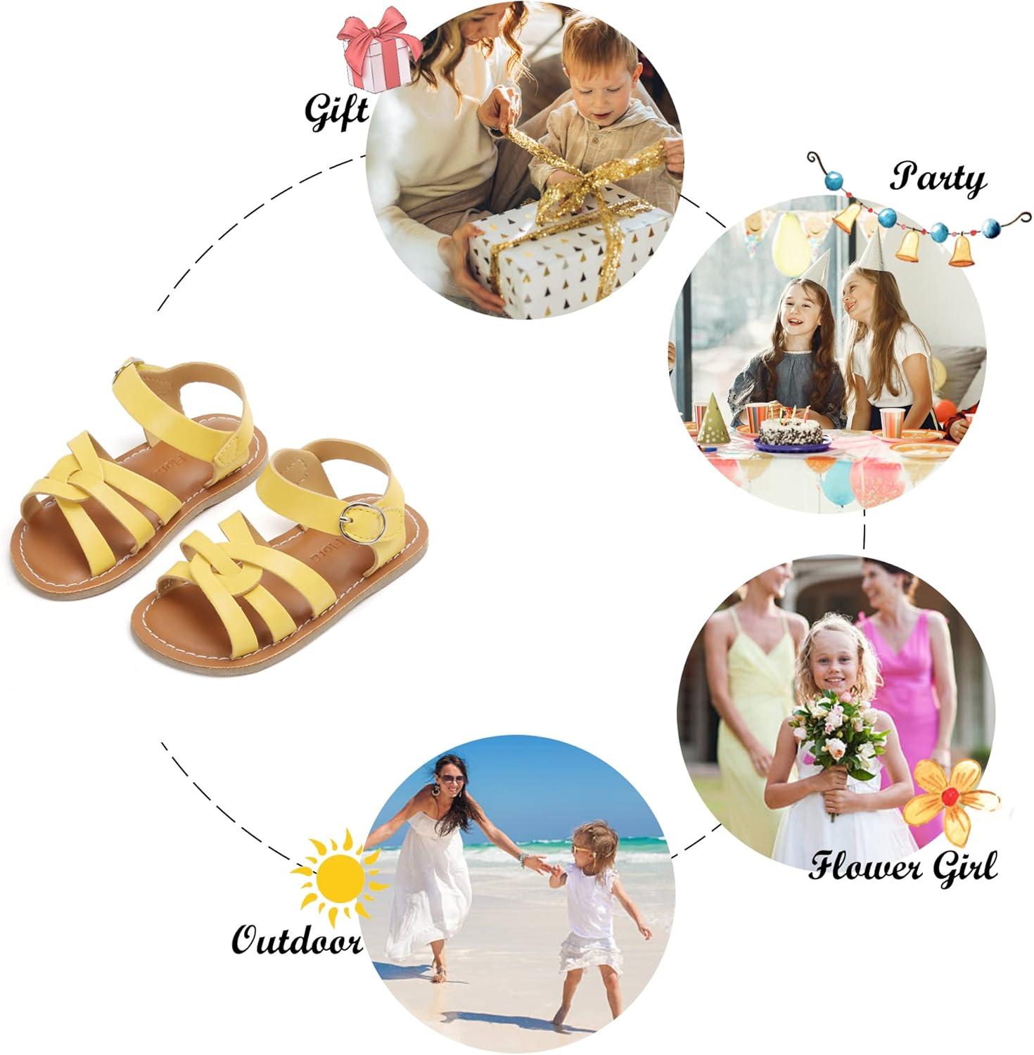 Felix & Flora Toddler Girl Sandals – Little Girl Easter Summer Dress Shoes Lightweight Open Toe Beach Holiday.(Bc222-yellow)