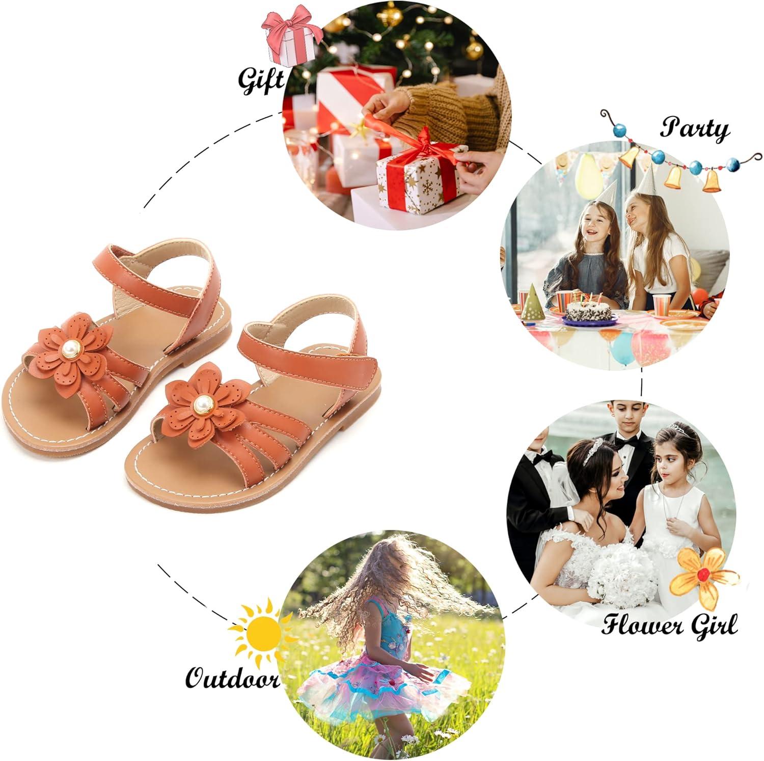 Felix & Flora Toddler Girl Sandals – Little Girl Easter Summer Dress Shoes Lightweight Open Toe Beach Holiday.(Bc264-brown)