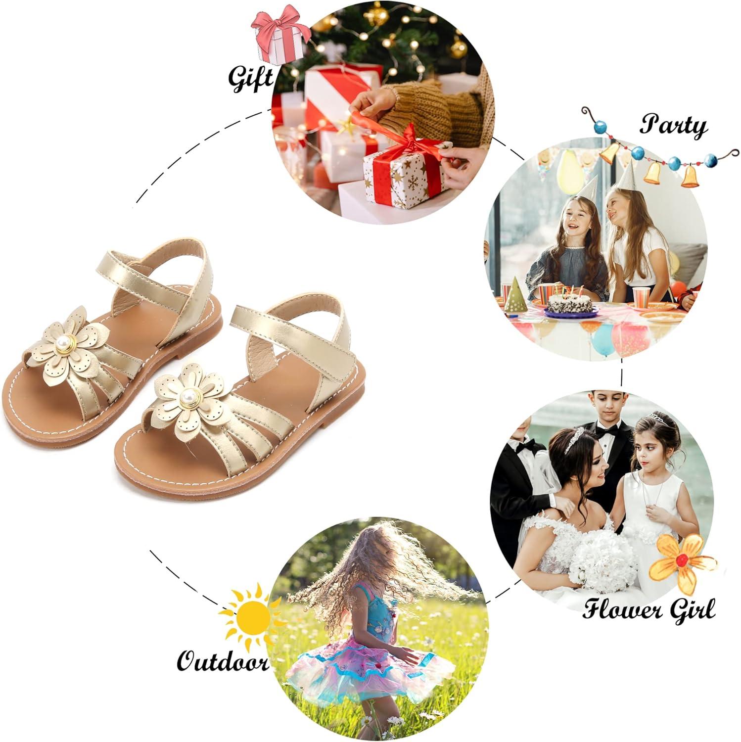 Felix & Flora Toddler Girl Sandals – Little Girl Easter Summer Dress Shoes Lightweight Open Toe Beach Holiday.(Bc264-gold)