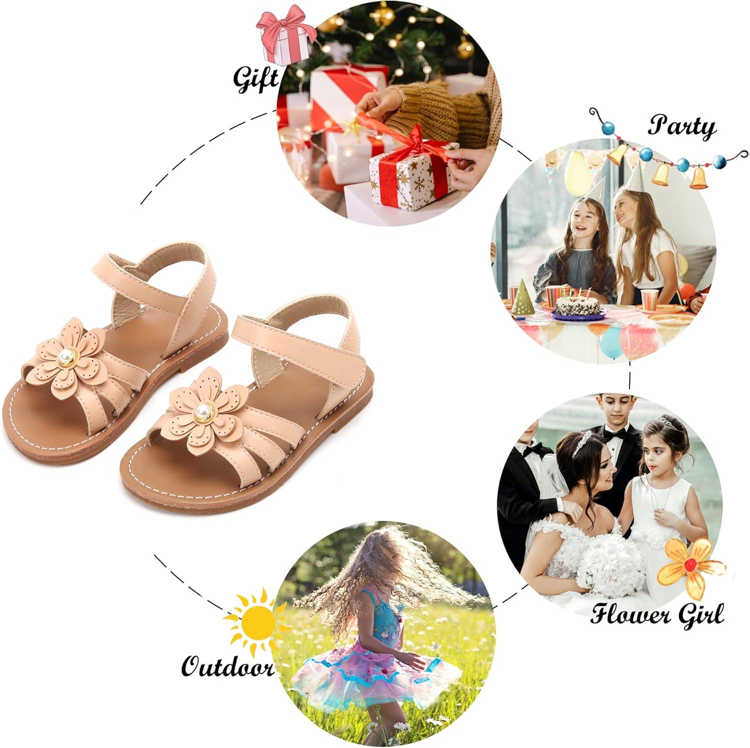 Felix & Flora Toddler Girl Sandals – Little Girl Easter Summer Dress Shoes Lightweight Open Toe Beach Holiday.(Bc264-nude)