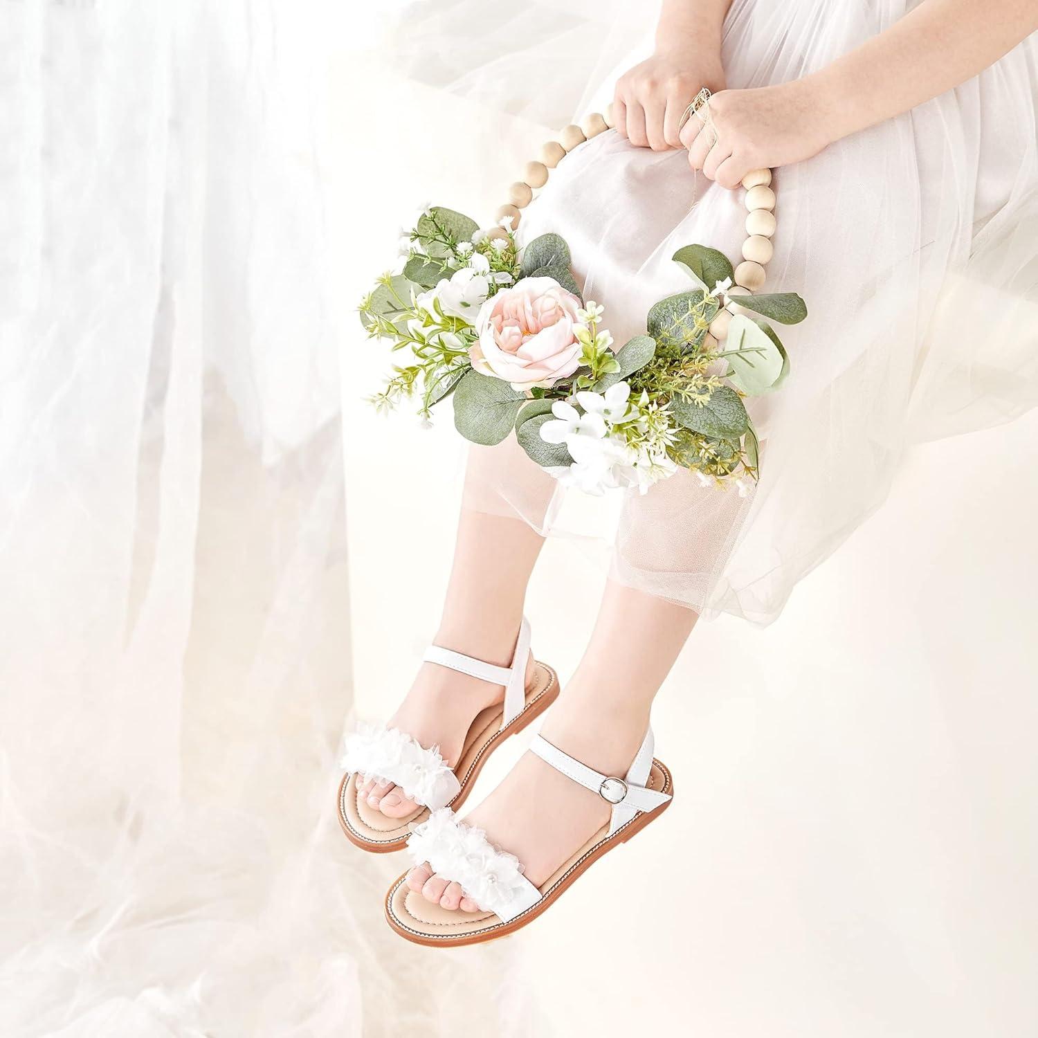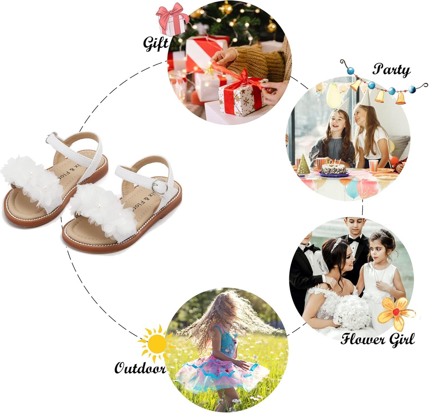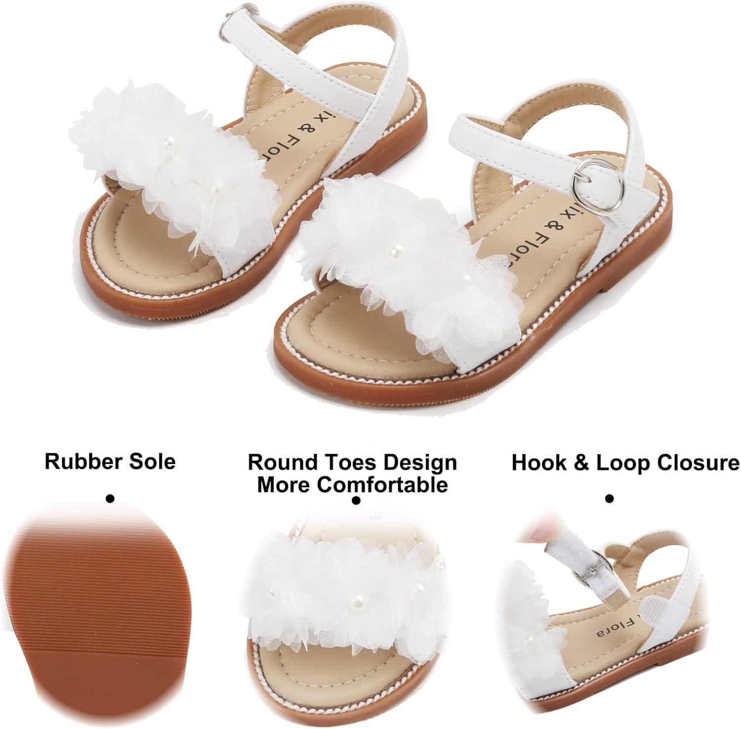 Felix & Flora Toddler Girl Sandals – Little Girl Easter Summer Dress Shoes Lightweight Open Toe Beach Holiday.(Bc279-white)