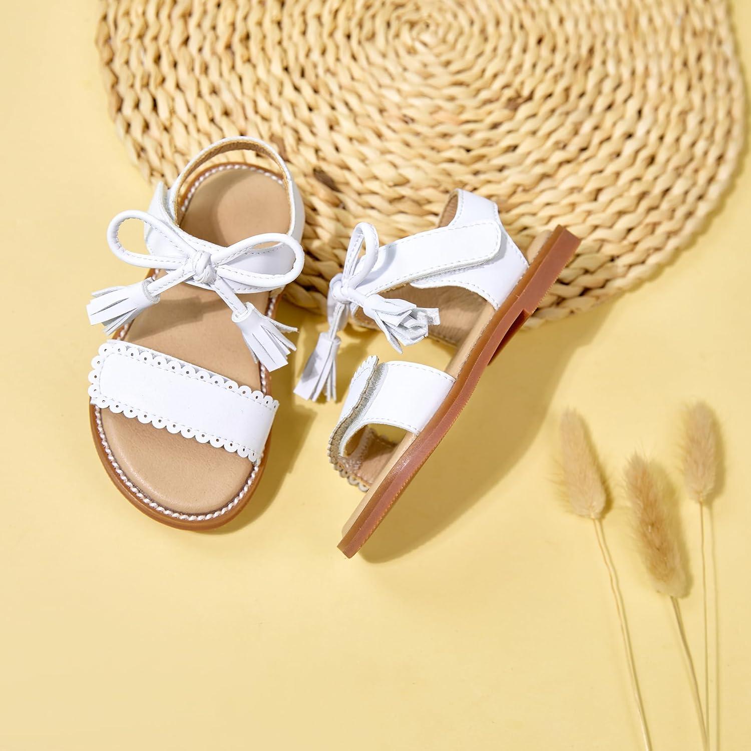 Felix & Flora Toddler Girl Sandals – Little Girl Easter Summer Dress Shoes Lightweight Open Toe Beach Holiday.(Bc282-white)