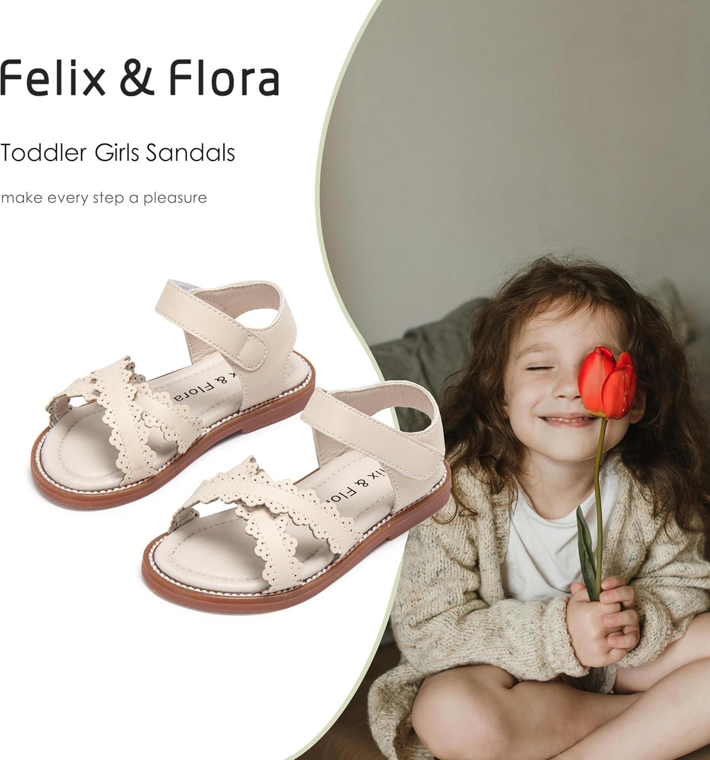 Felix & Flora Toddler Girl Sandals – Little Girl Easter Summer Dress Shoes Lightweight Open Toe Beach Holiday.(Bc286-apricot)