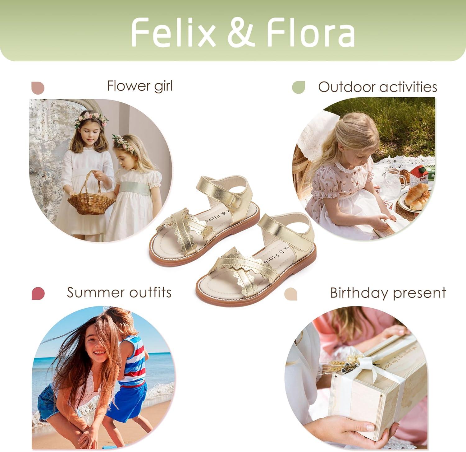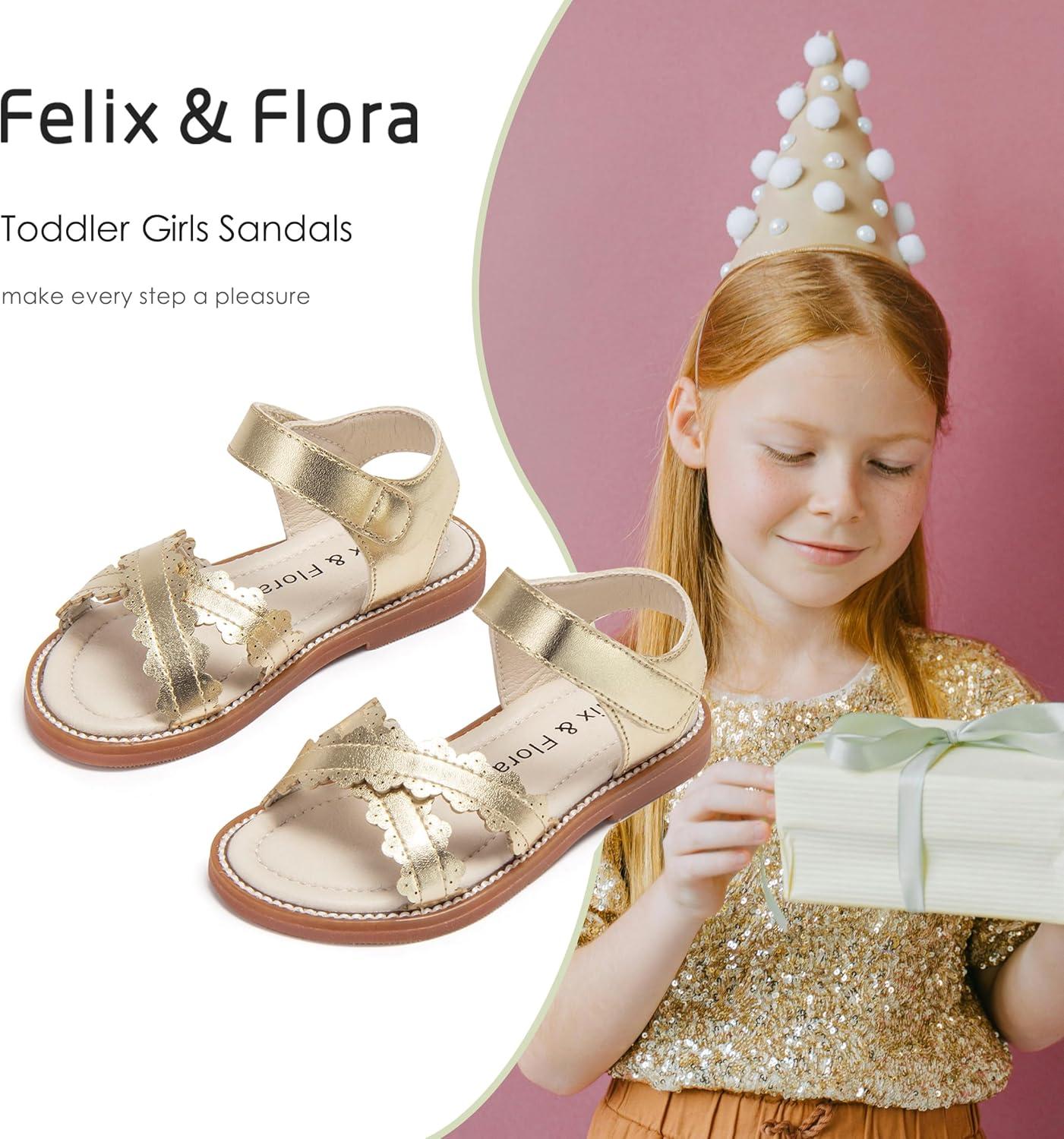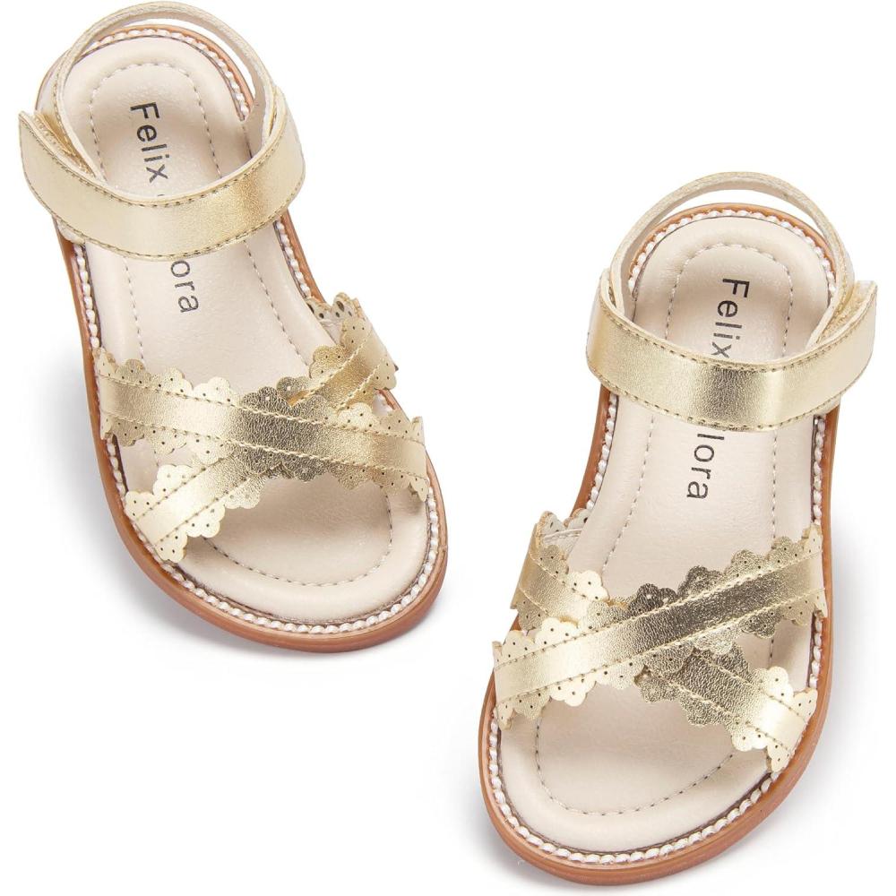 Felix & Flora Toddler Girl Sandals – Little Girl Easter Summer Dress Shoes Lightweight Open Toe Beach Holiday.(Bc286-bright Gold)