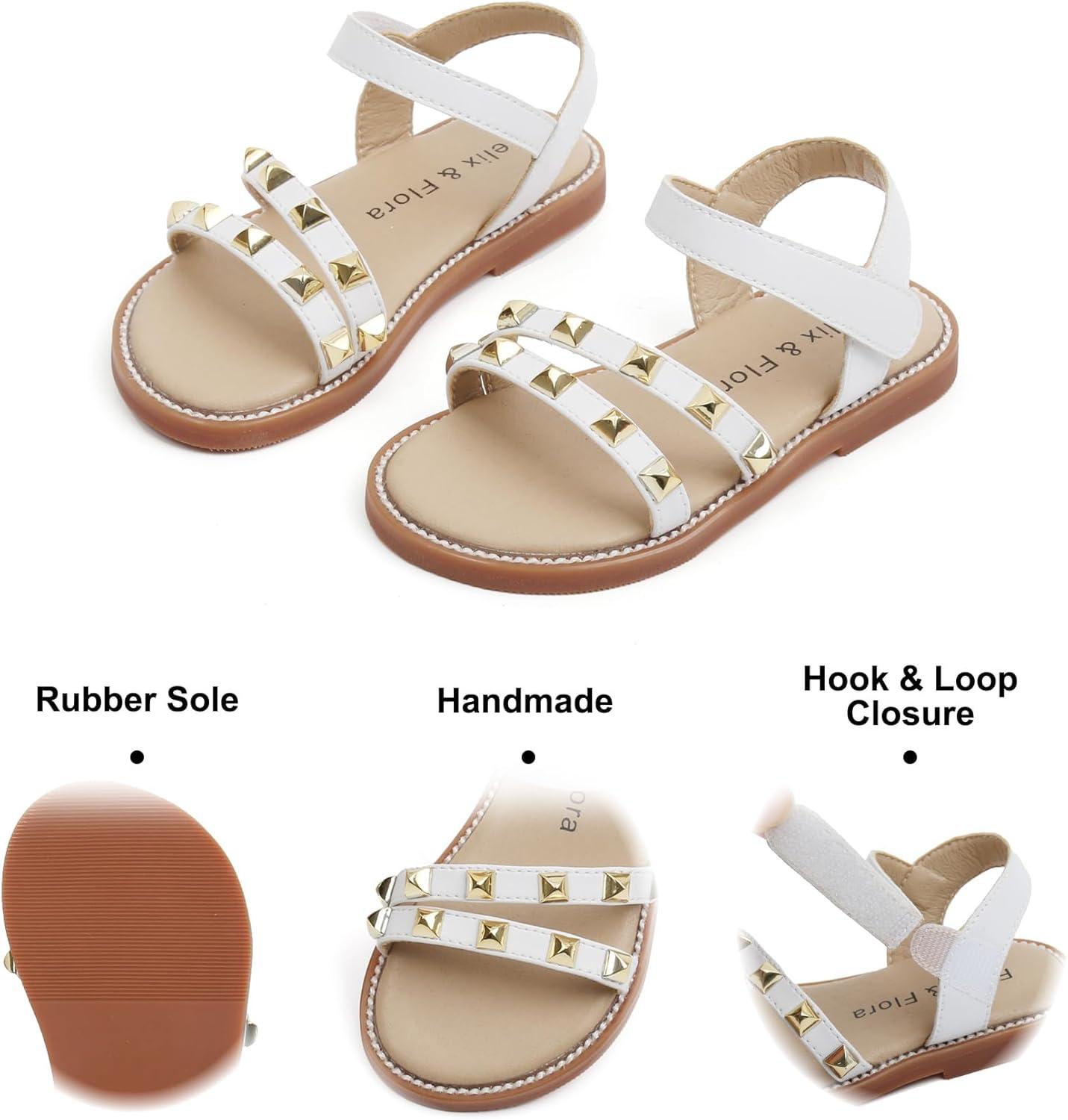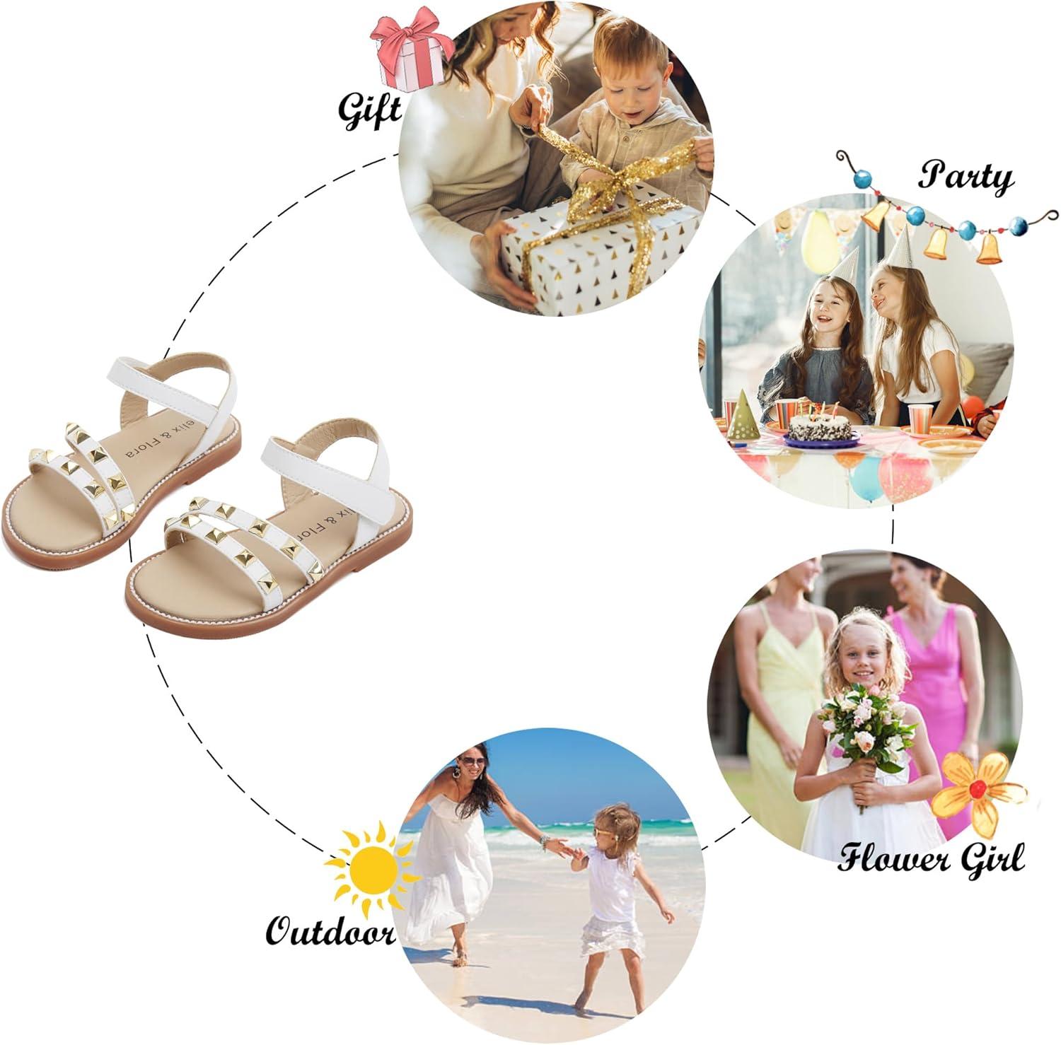 Felix & Flora Toddler Girl Sandals – Little Girl Easter Summer Dress Shoes Lightweight Open Toe Beach Holiday.(Bc292-white)