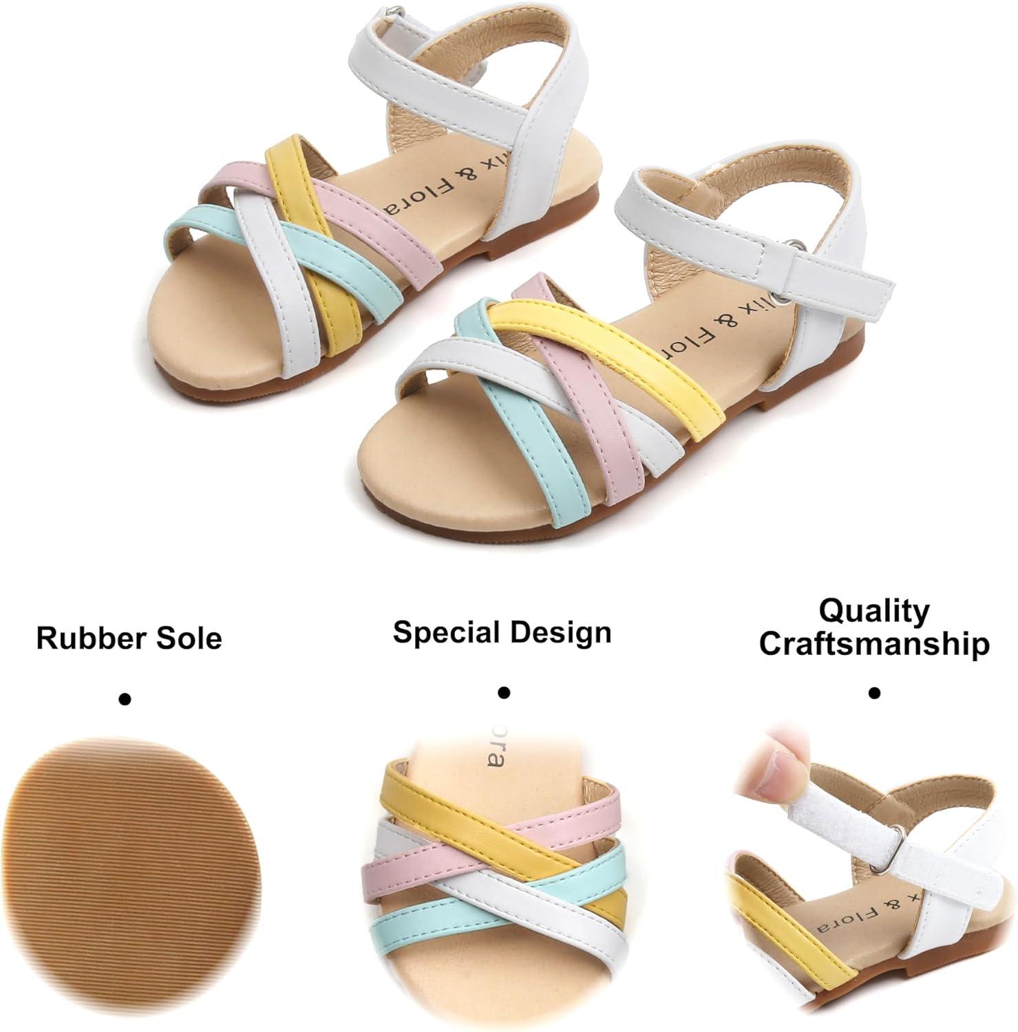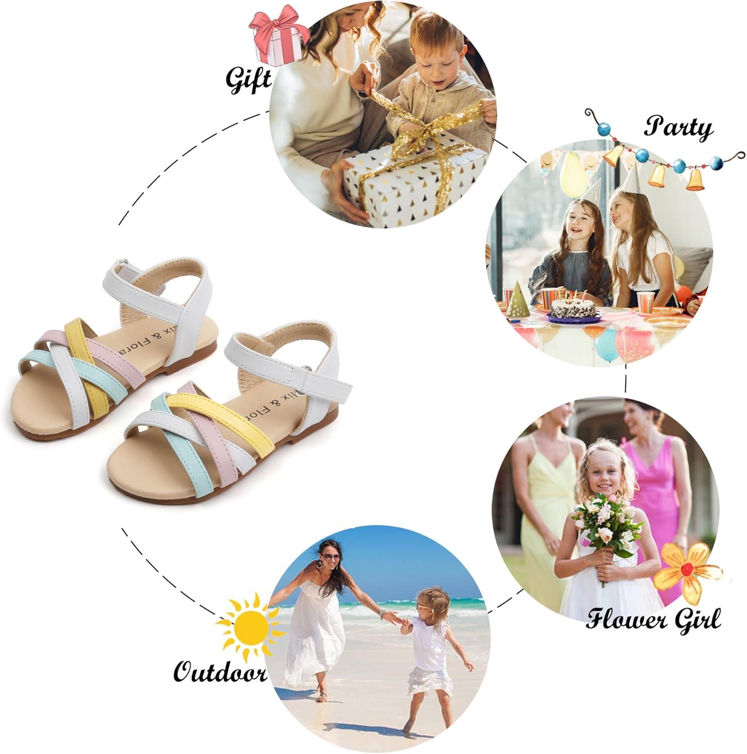Felix & Flora Toddler Girl Sandals – Little Girl Easter Summer Dress Shoes Lightweight Open Toe Beach Holiday.(Bc294-rainbow)