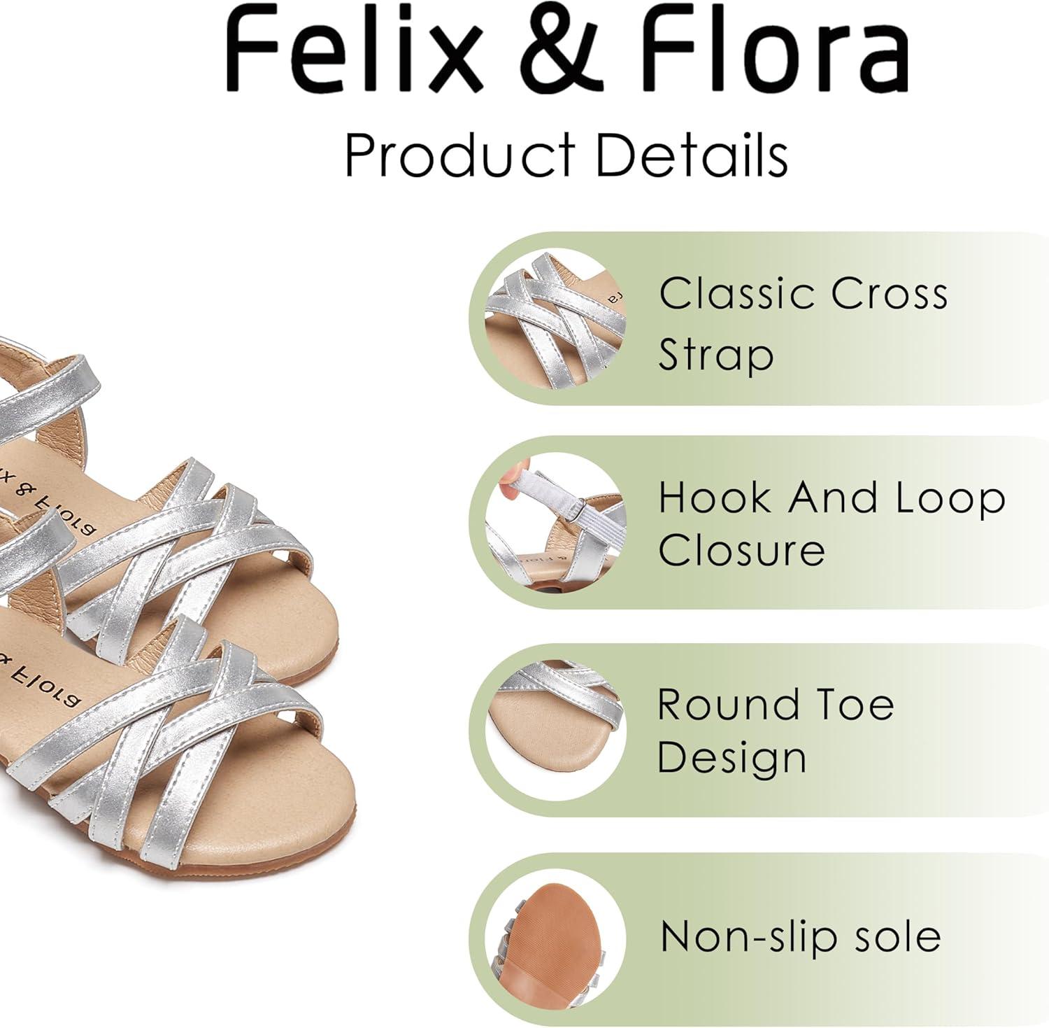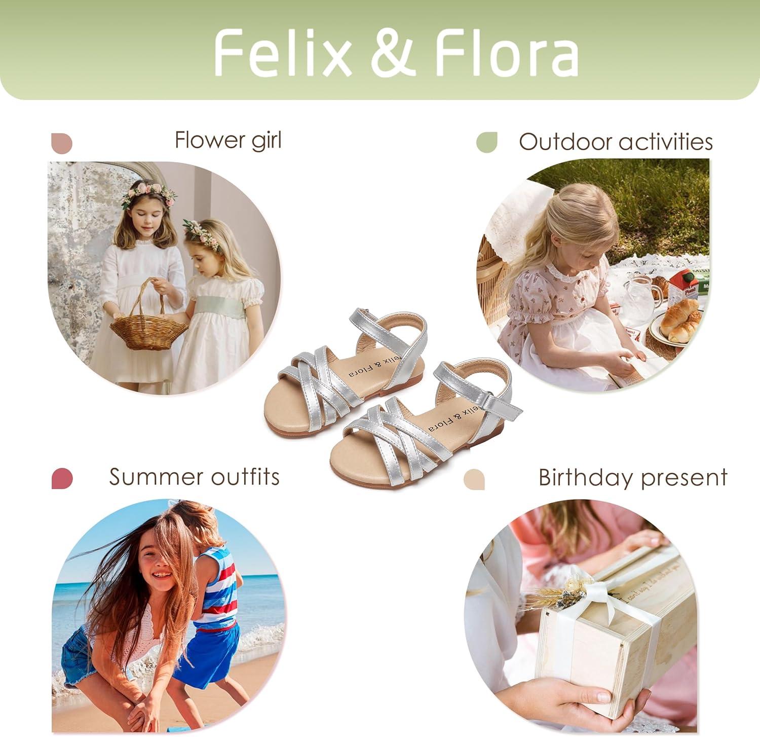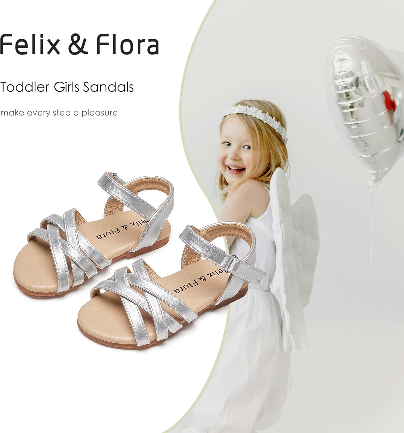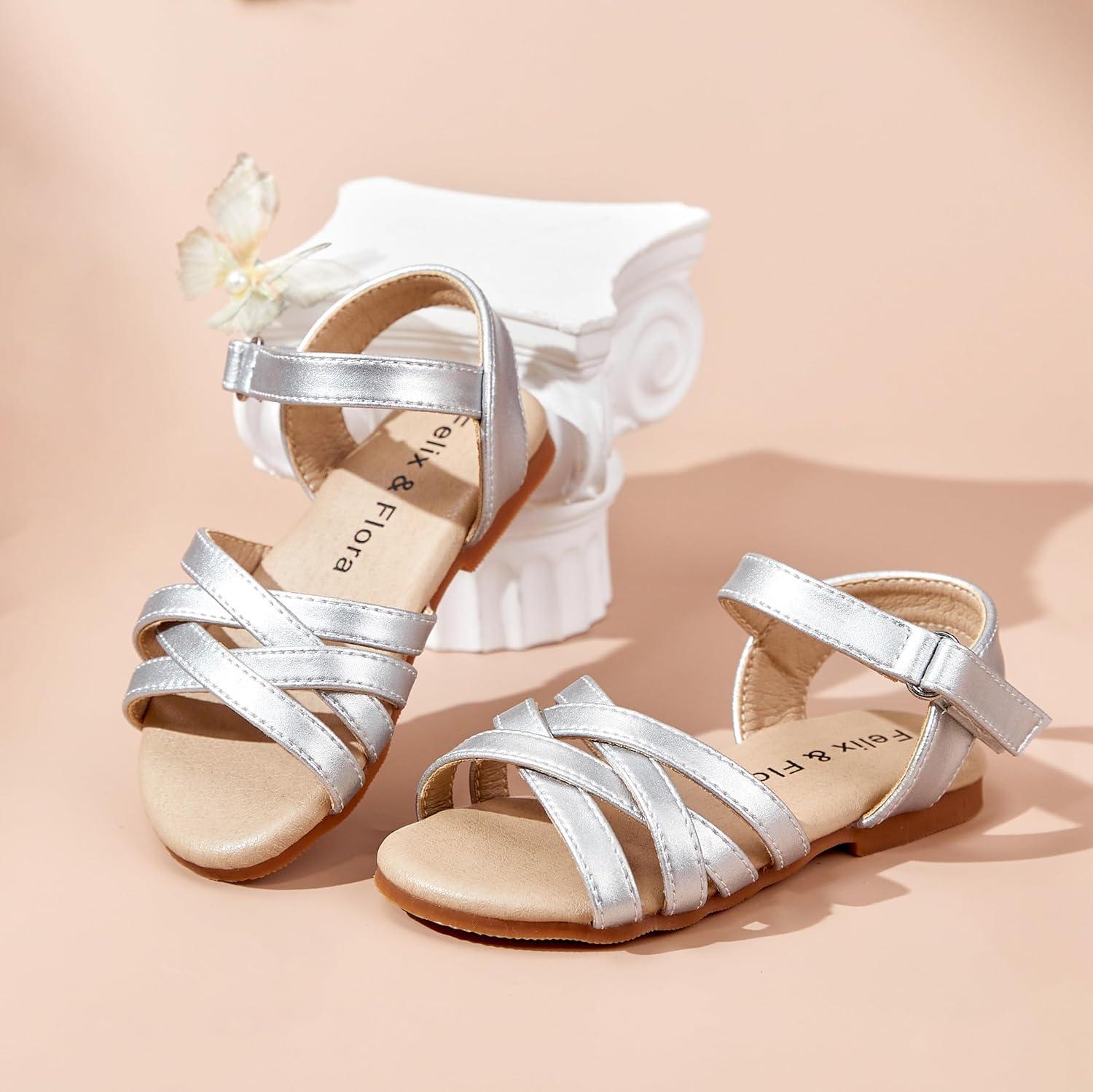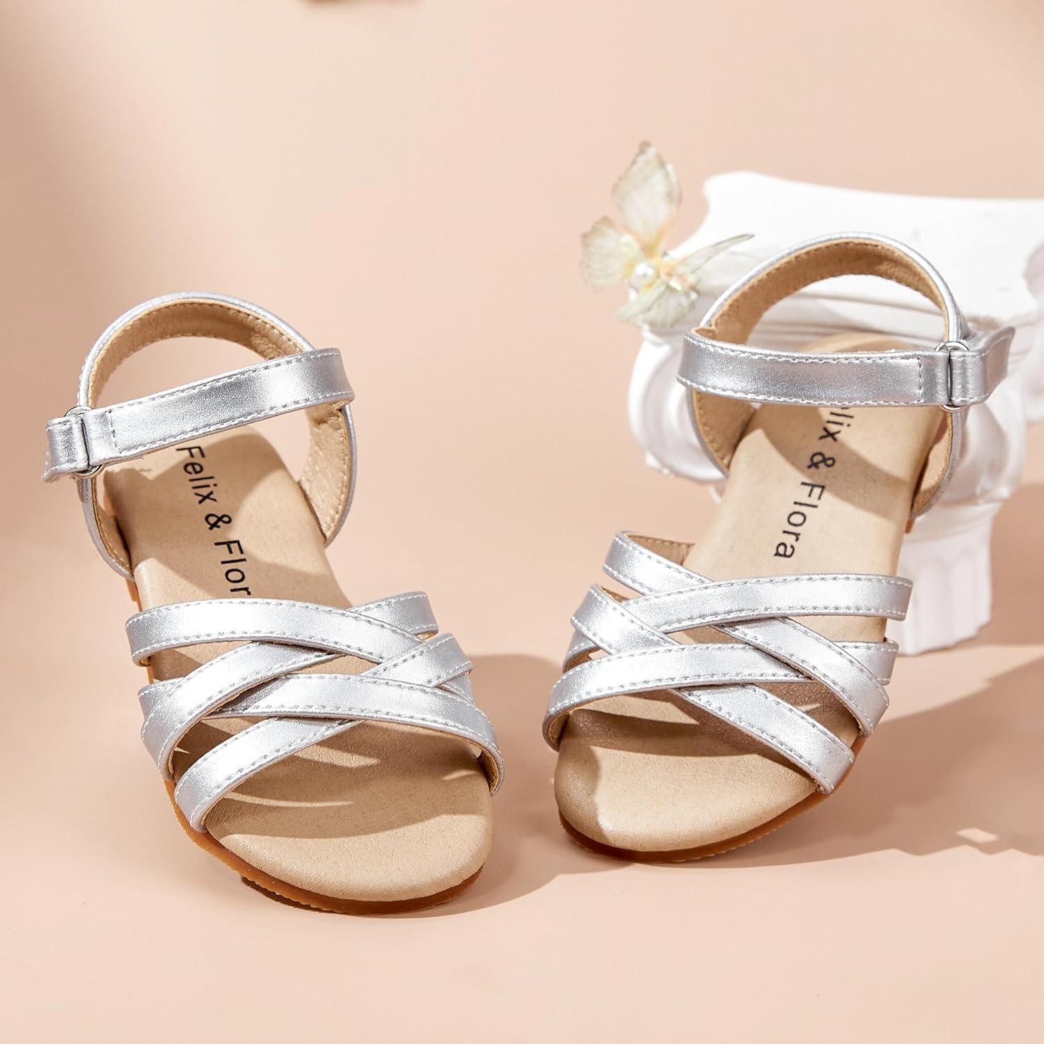 Felix & Flora Toddler Girl Sandals – Little Girl Easter Summer Dress Shoes Lightweight Open Toe Beach Holiday.(Bc294-silver)