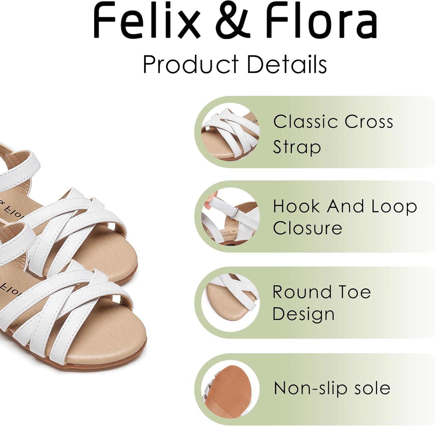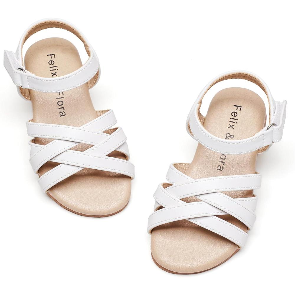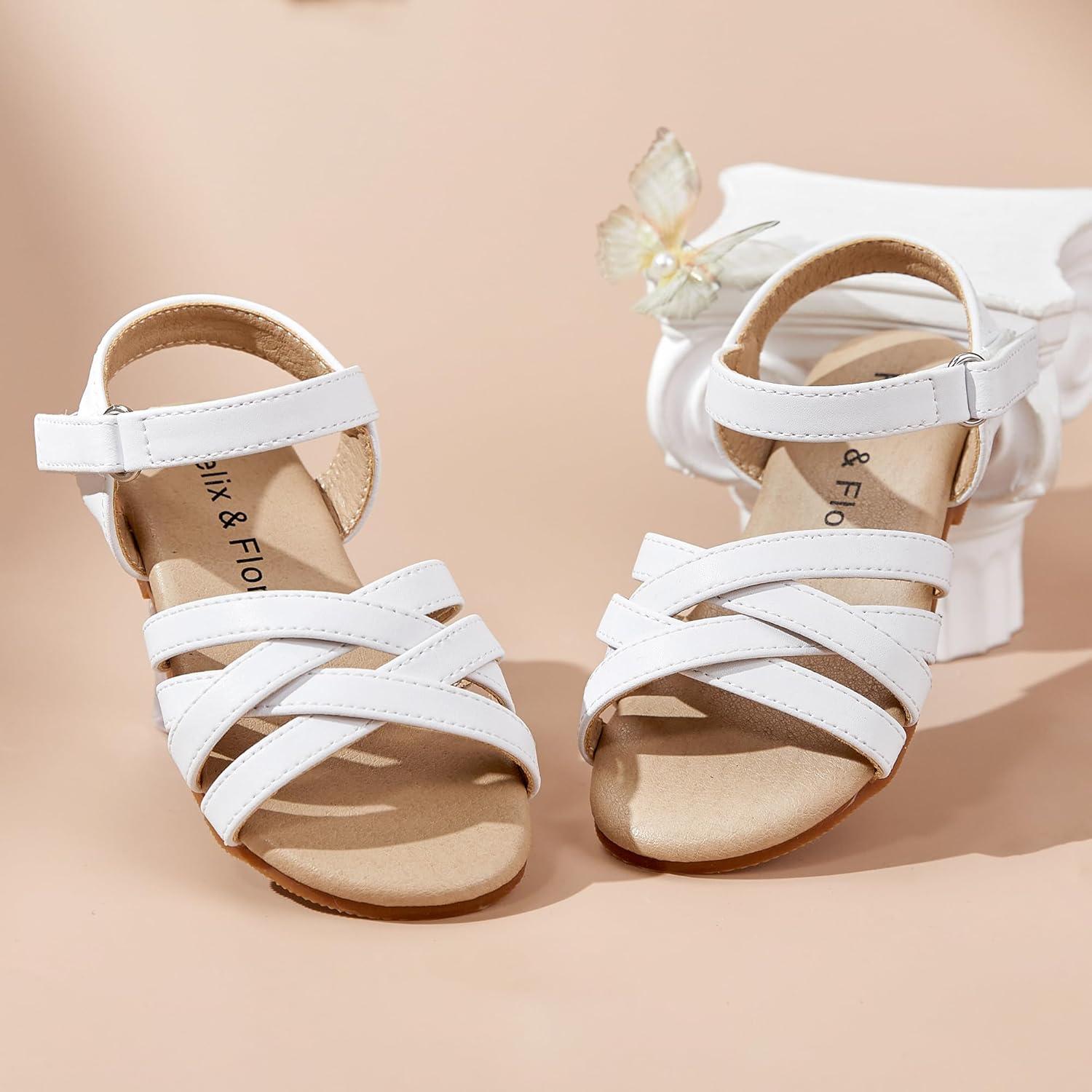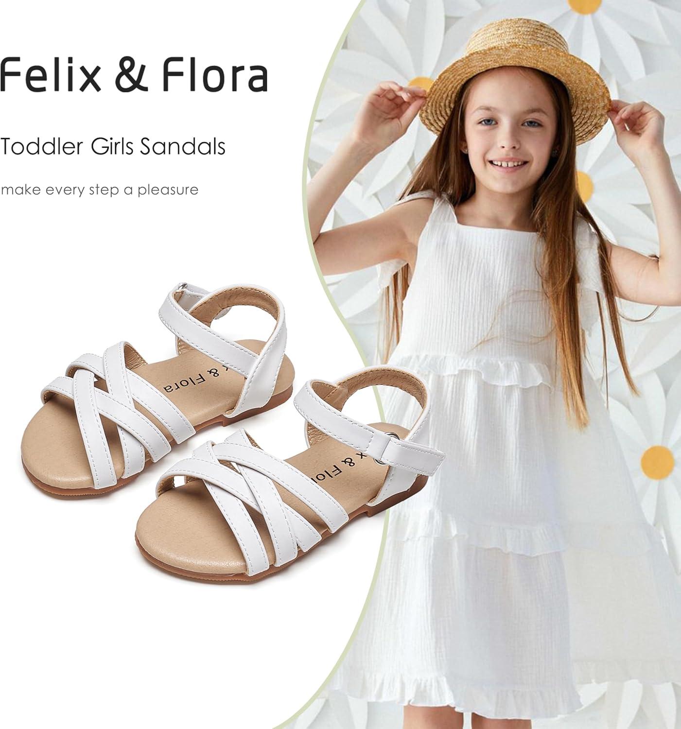 Felix & Flora Toddler Girl Sandals – Little Girl Easter Summer Dress Shoes Lightweight Open Toe Beach Holiday.(Bc294-white)