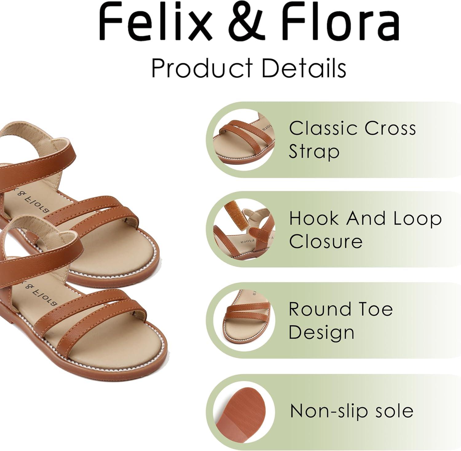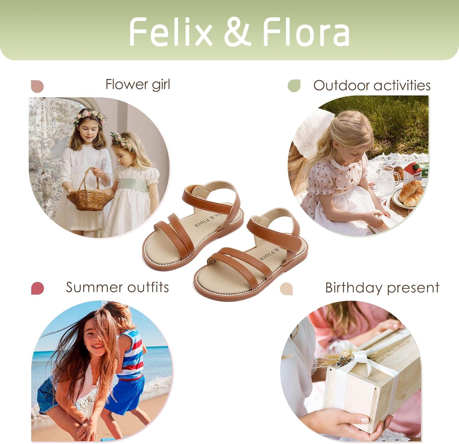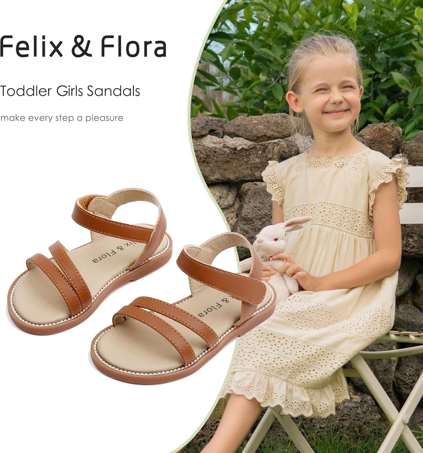 Felix & Flora Toddler Girl Sandals – Little Girl Easter Summer Dress Shoes Lightweight Open Toe Beach Holiday.(Bc296-brown)