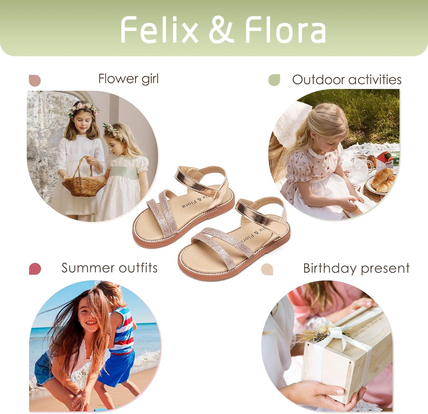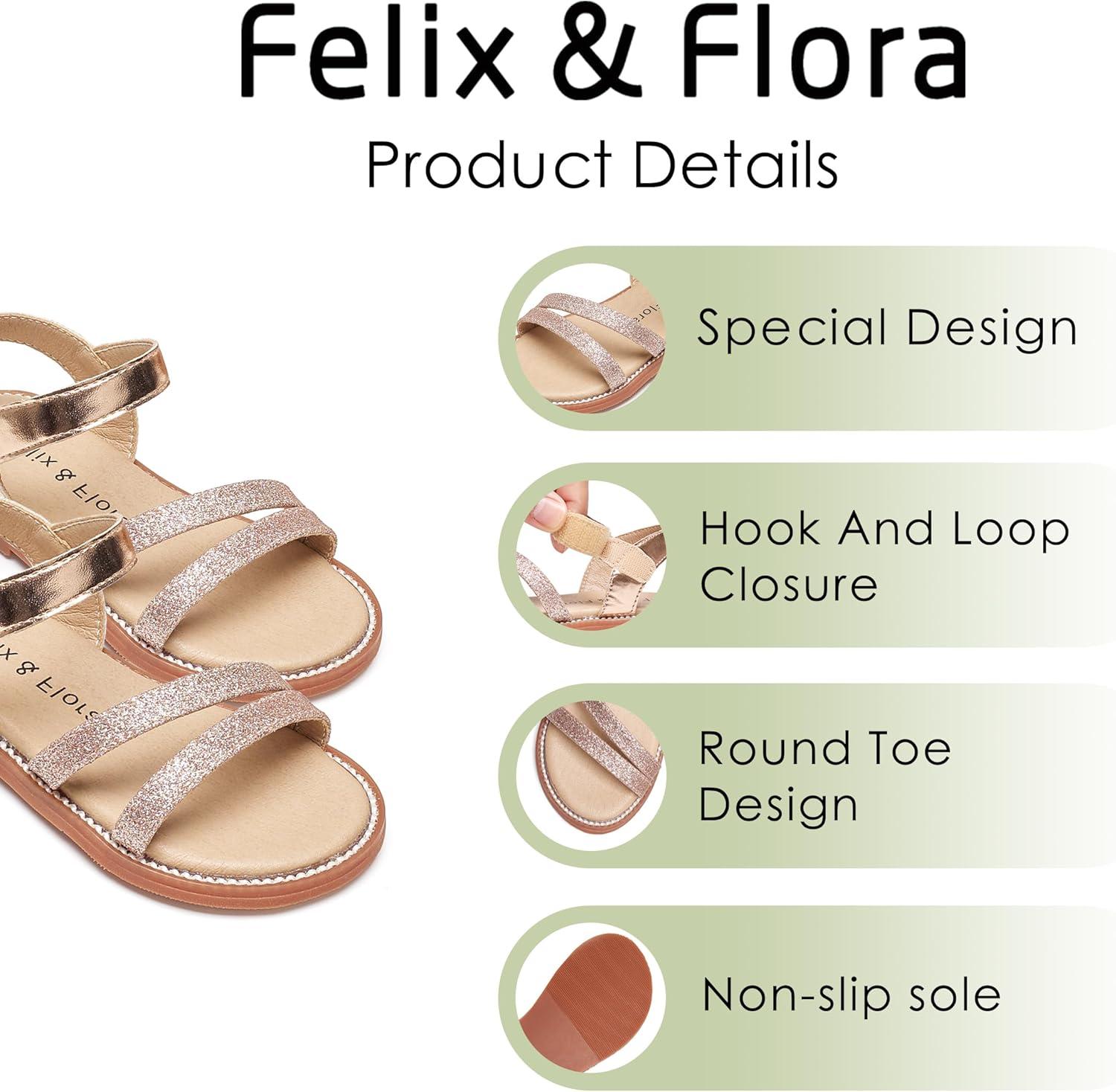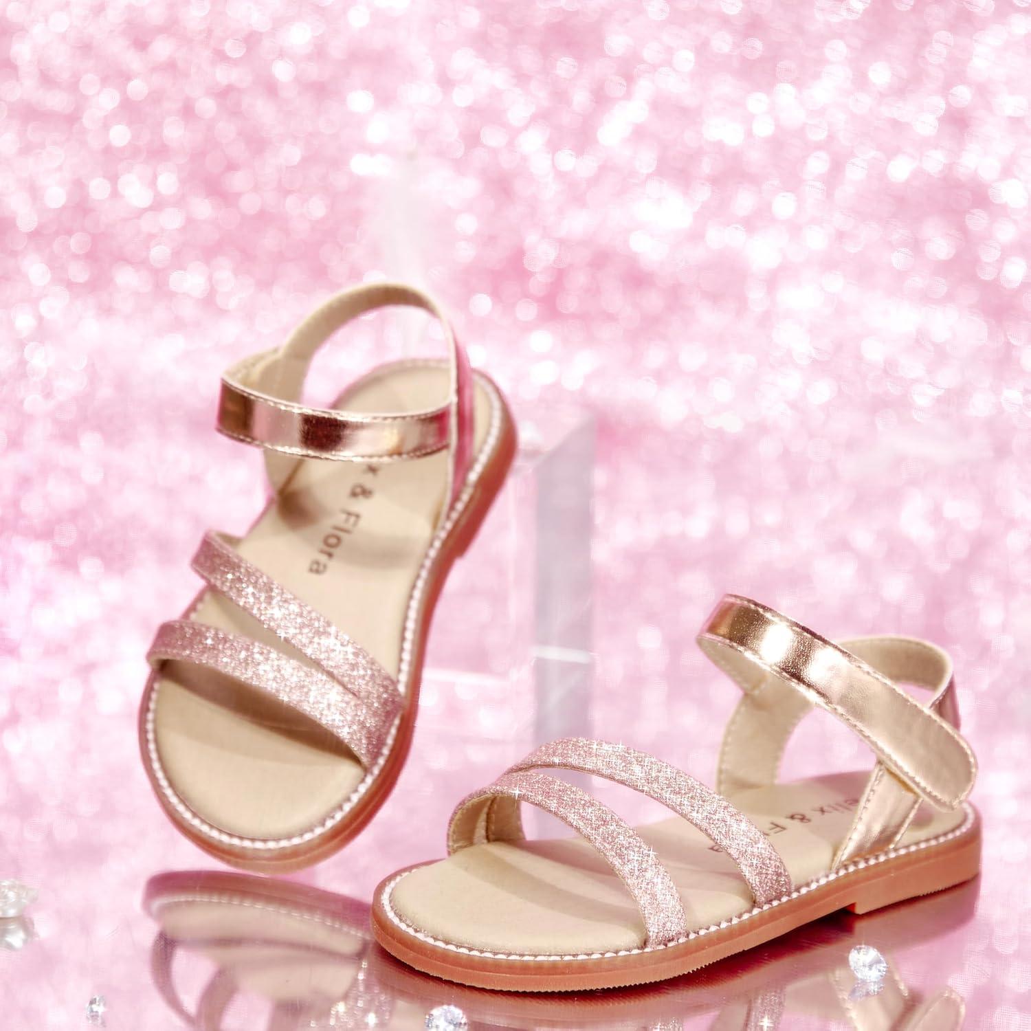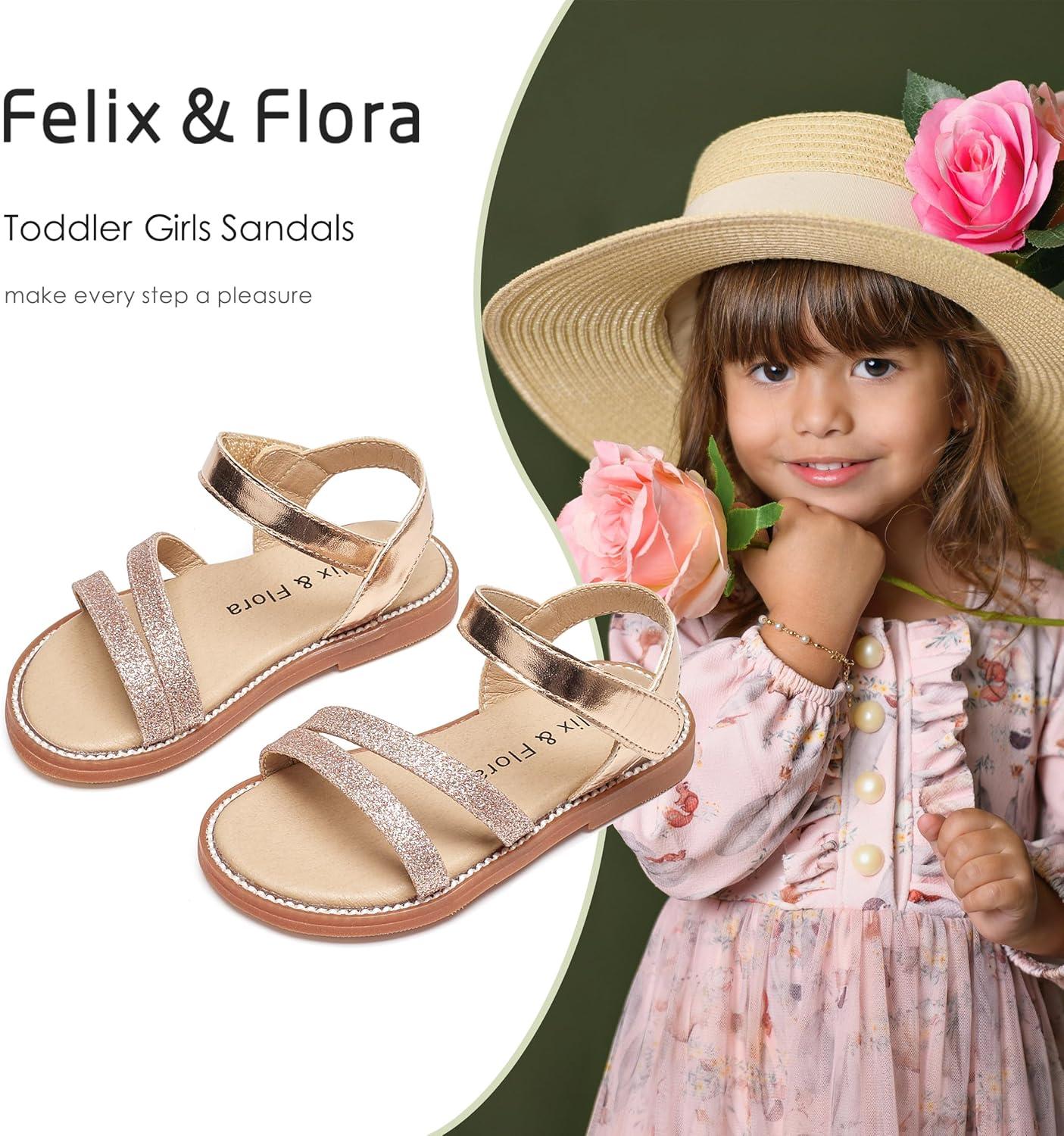 Felix & Flora Toddler Girl Sandals – Little Girl Easter Summer Dress Shoes Lightweight Open Toe Beach Holiday.(Bc296-glitter Pink)