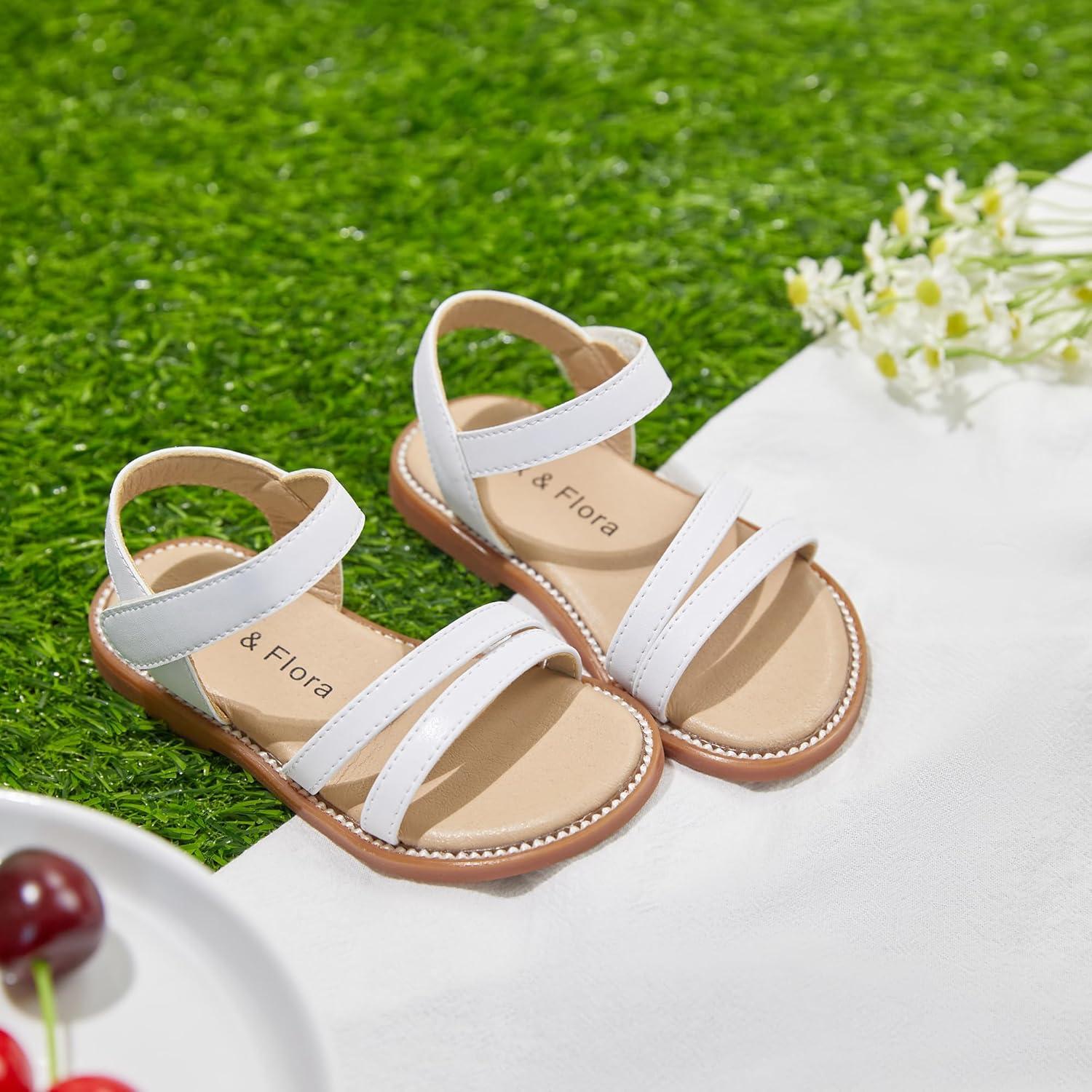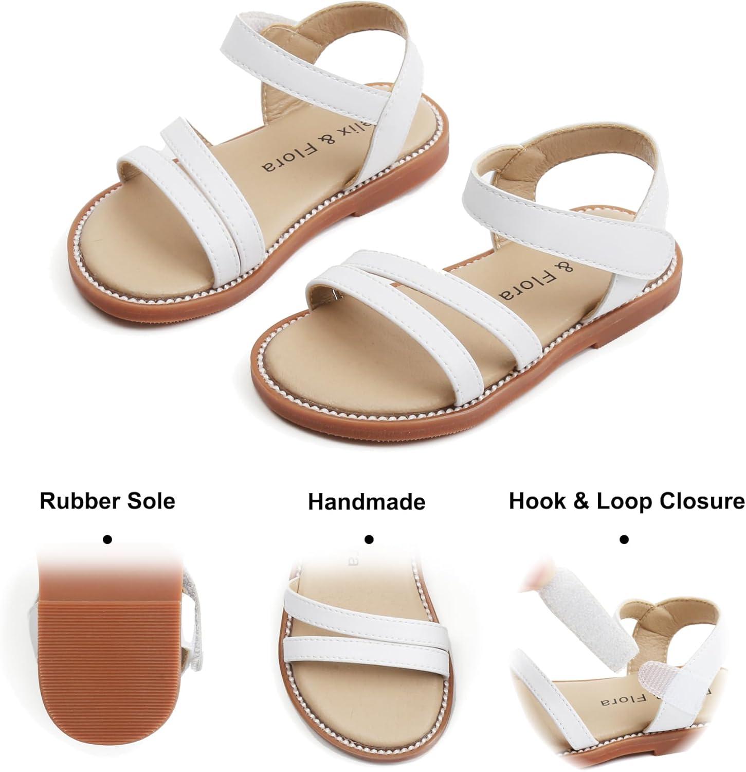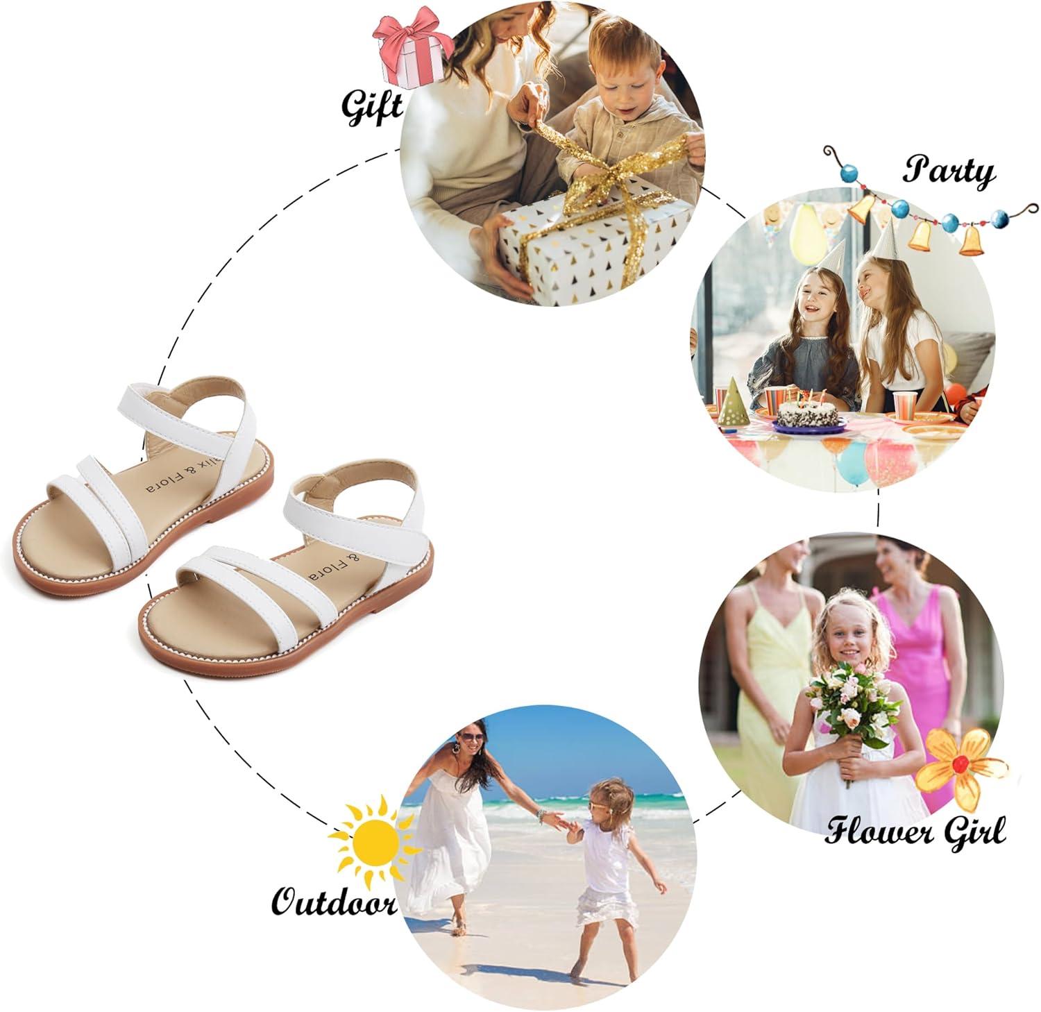 Felix & Flora Toddler Girl Sandals – Little Girl Easter Summer Dress Shoes Lightweight Open Toe Beach Holiday.(Bc296-white)