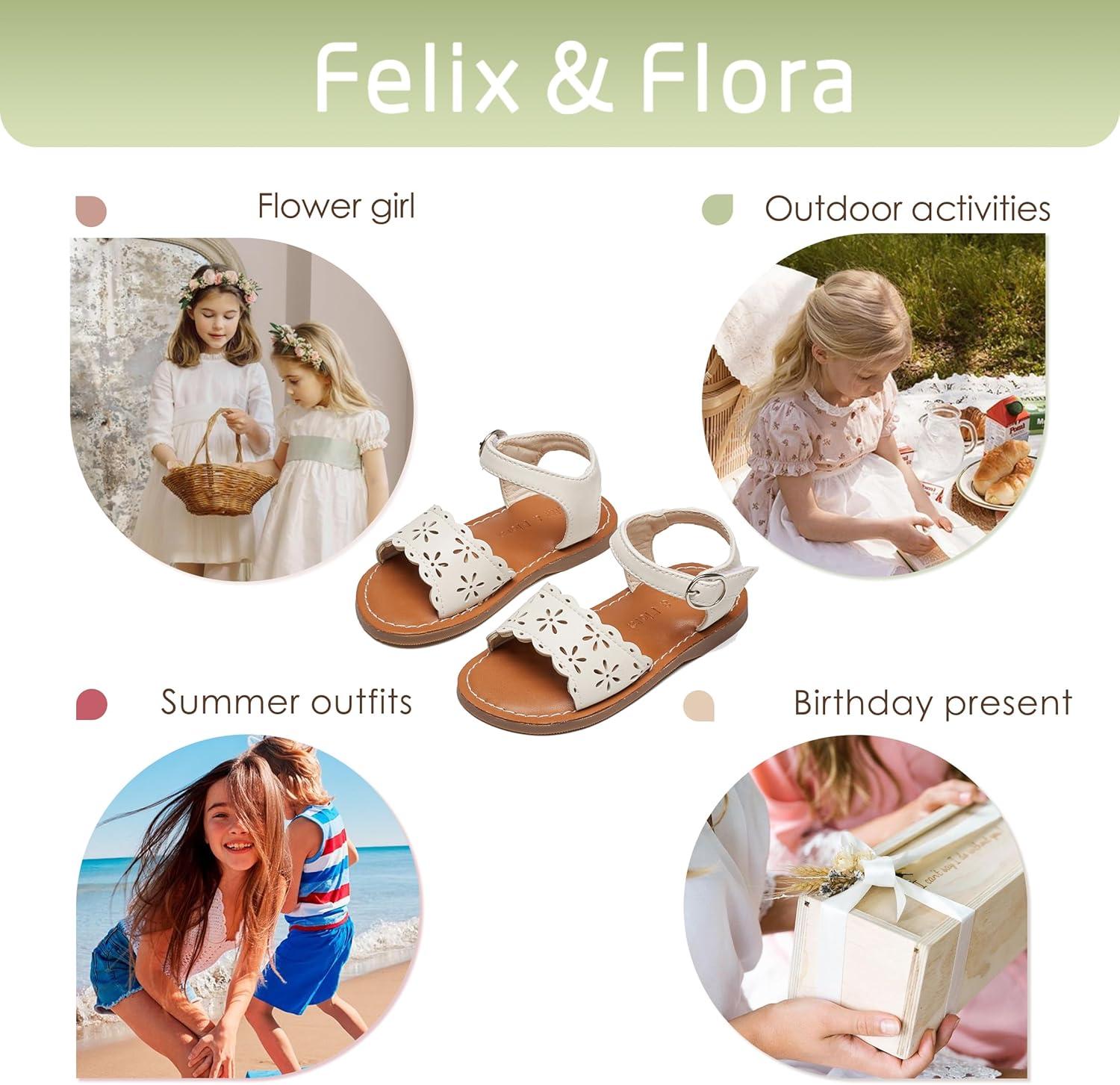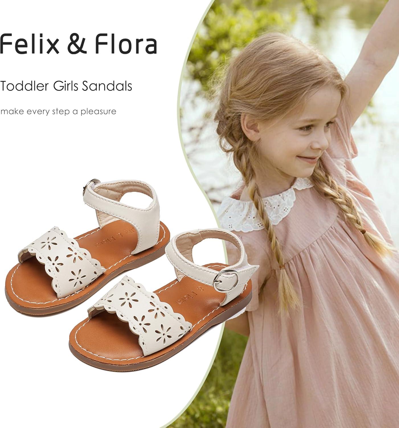Felix & Flora Toddler Girl Sandals – Little Girl Easter Summer Dress Shoes Lightweight Open Toe Beach Holiday.(Bc307-beige)