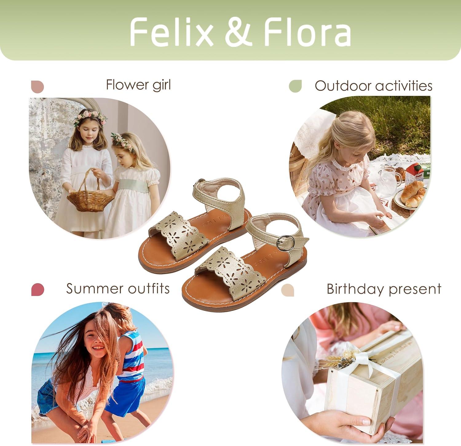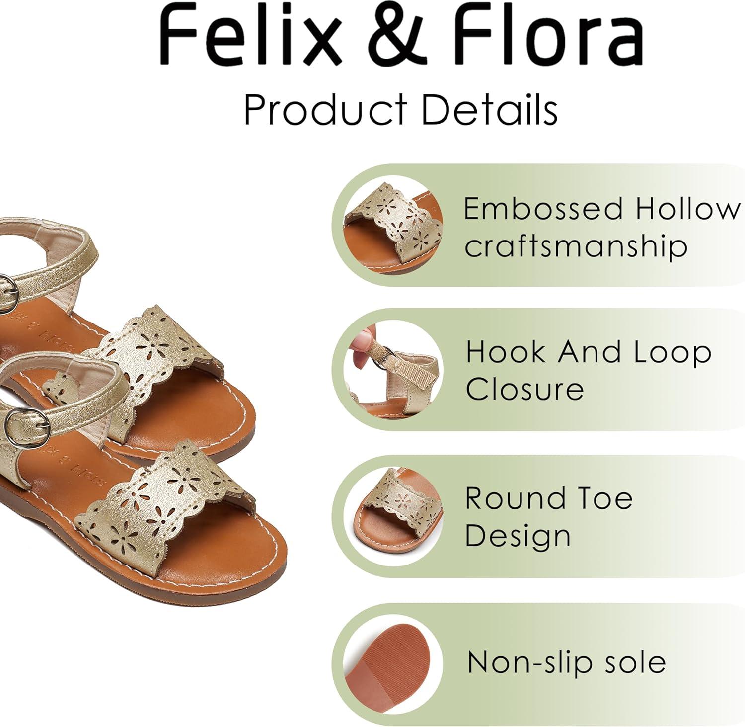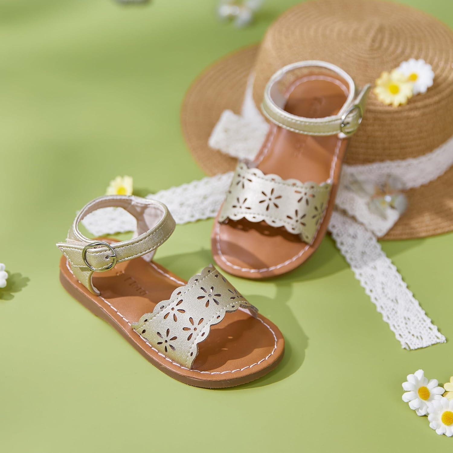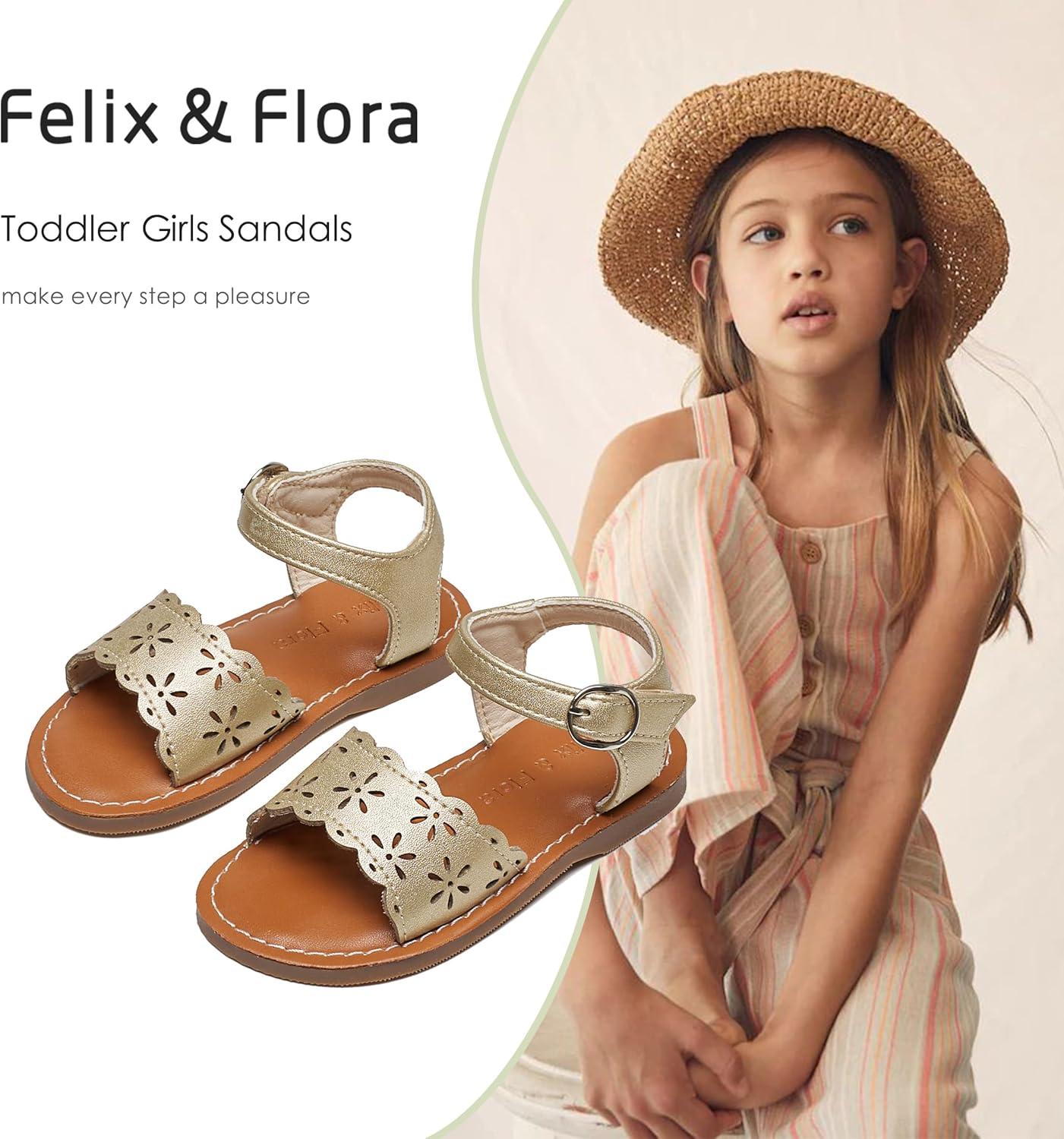 Felix & Flora Toddler Girl Sandals – Little Girl Easter Summer Dress Shoes Lightweight Open Toe Beach Holiday.(Bc307-gold)
