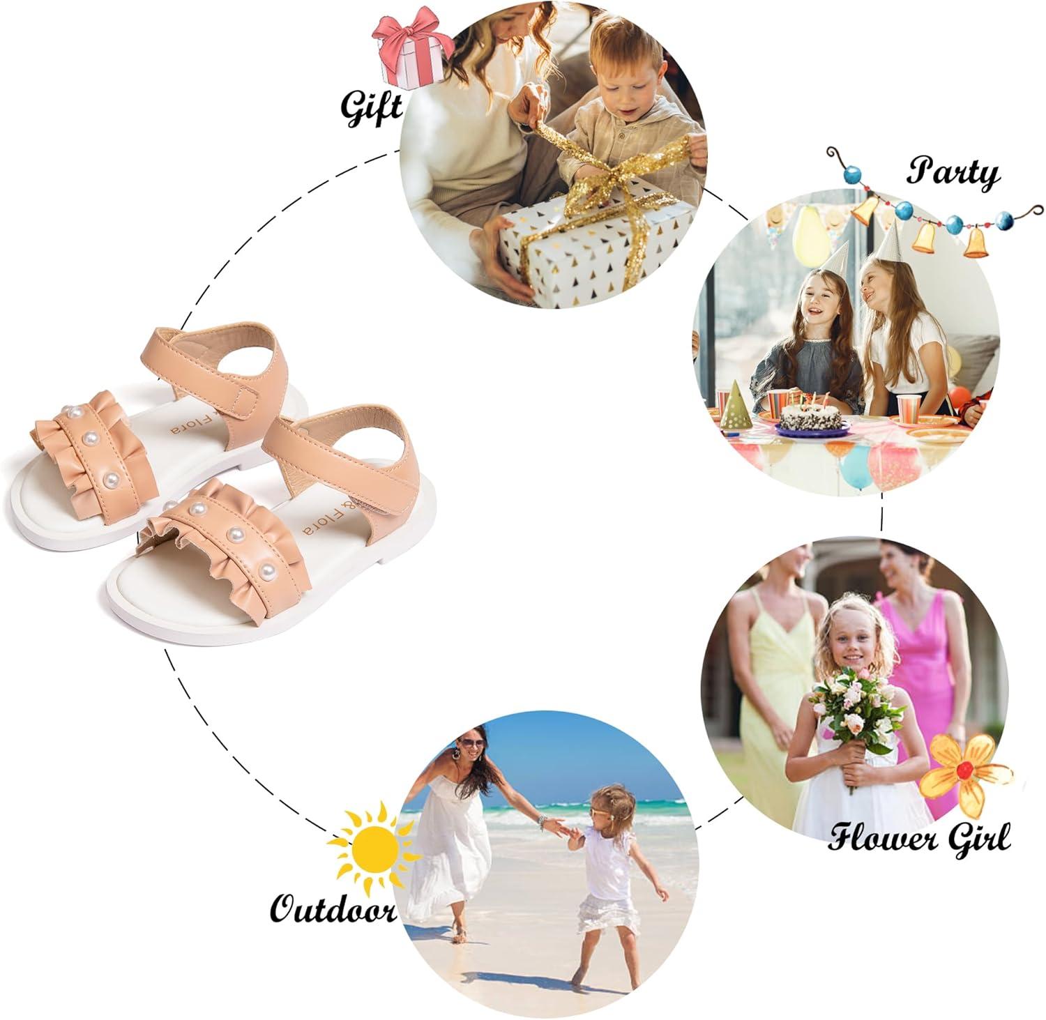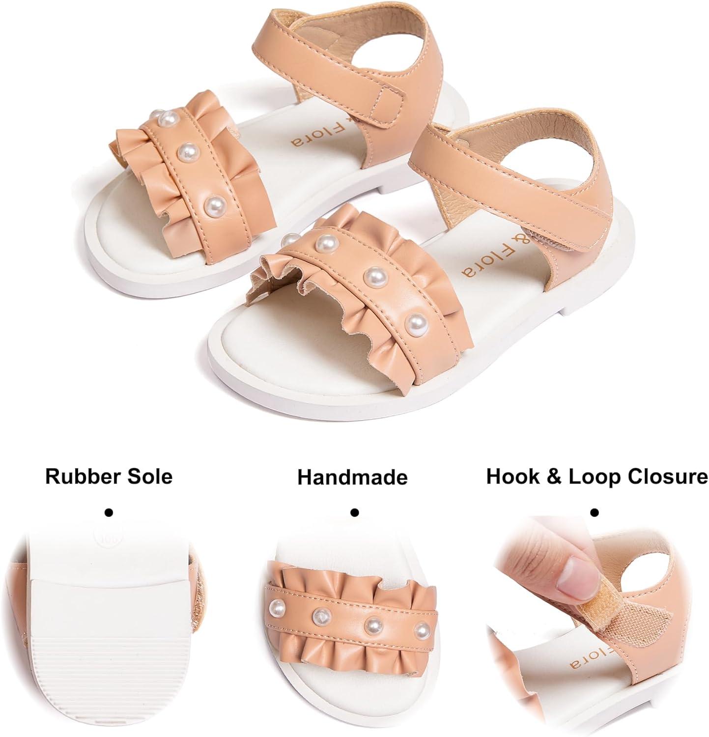 Felix & Flora Toddler Girl Sandals Open Toe Summer Flower Girl Dress Shoes(Bc302-nude)