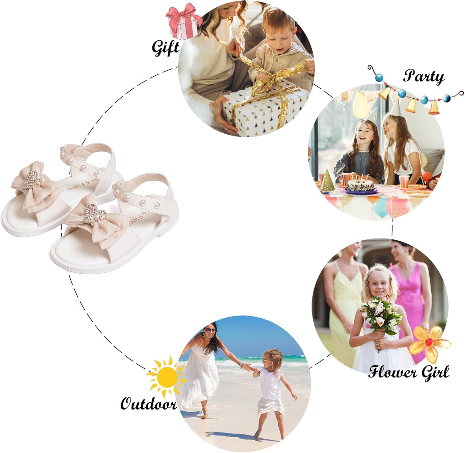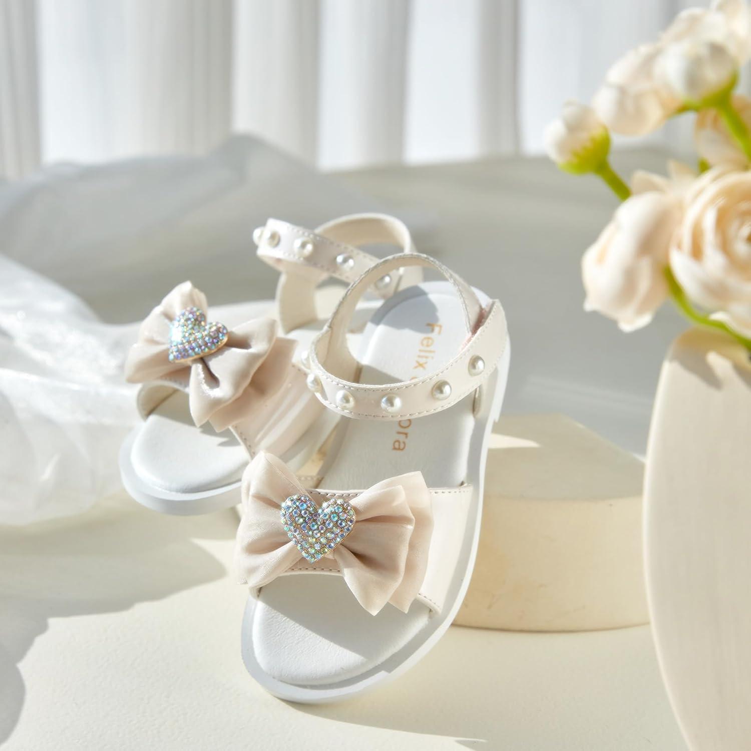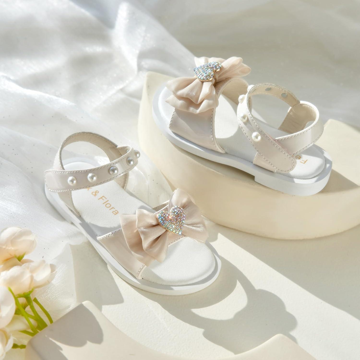 Felix & Flora Toddler Girl Sandals Open Toe Summer Flower Girl Dress Shoes(Bc303-nude)
