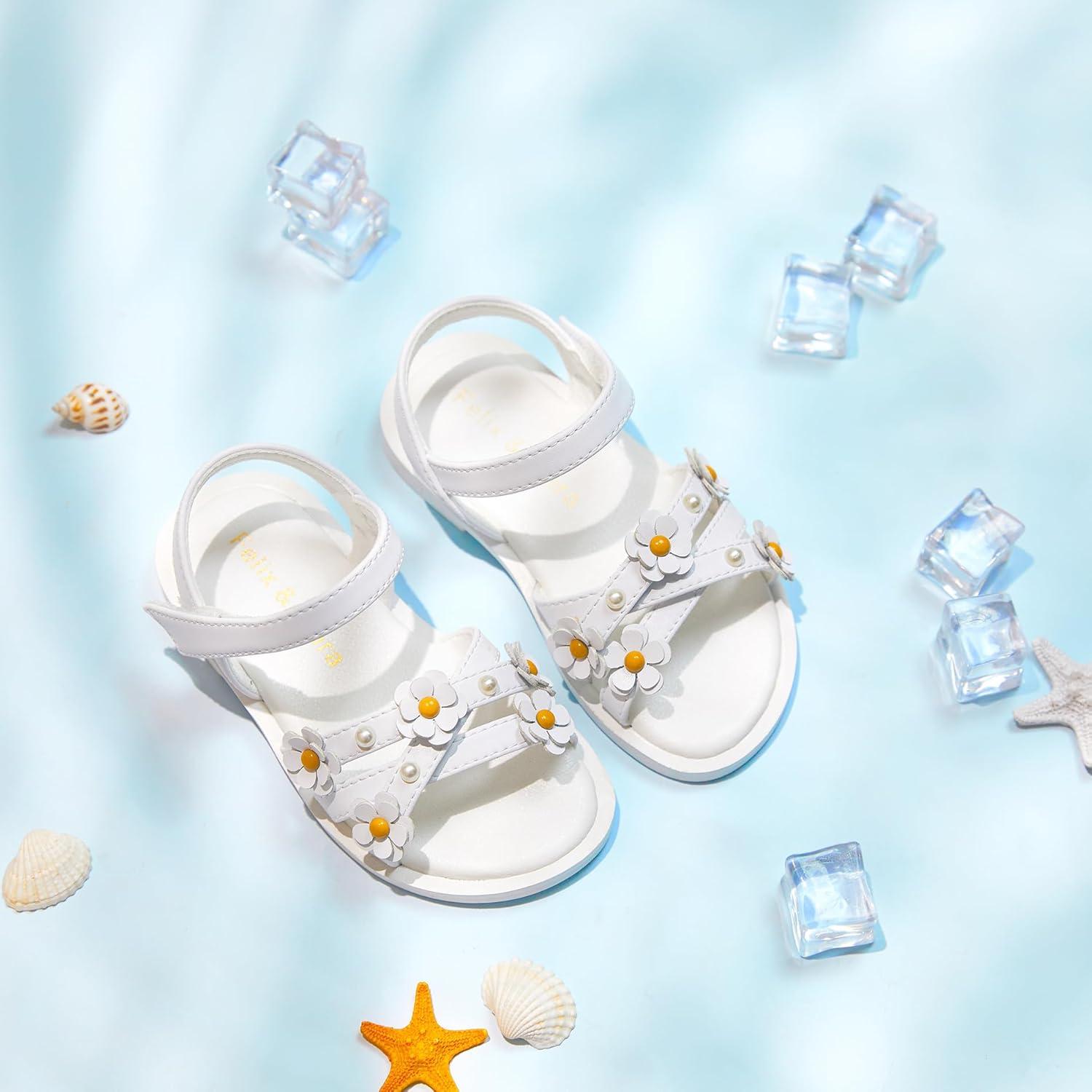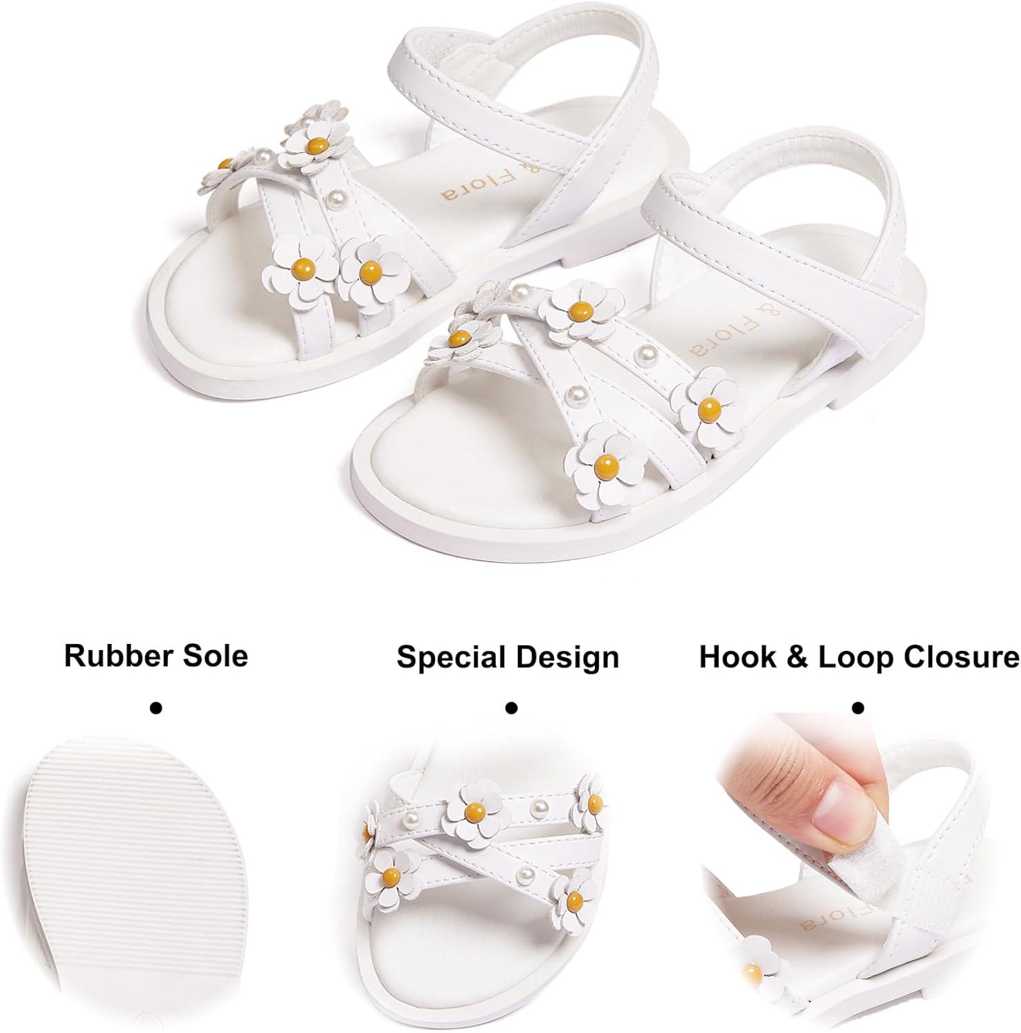 Felix & Flora Toddler Girl Sandals Open Toe Summer Flower Girl Dress Shoes(Bc304-white)