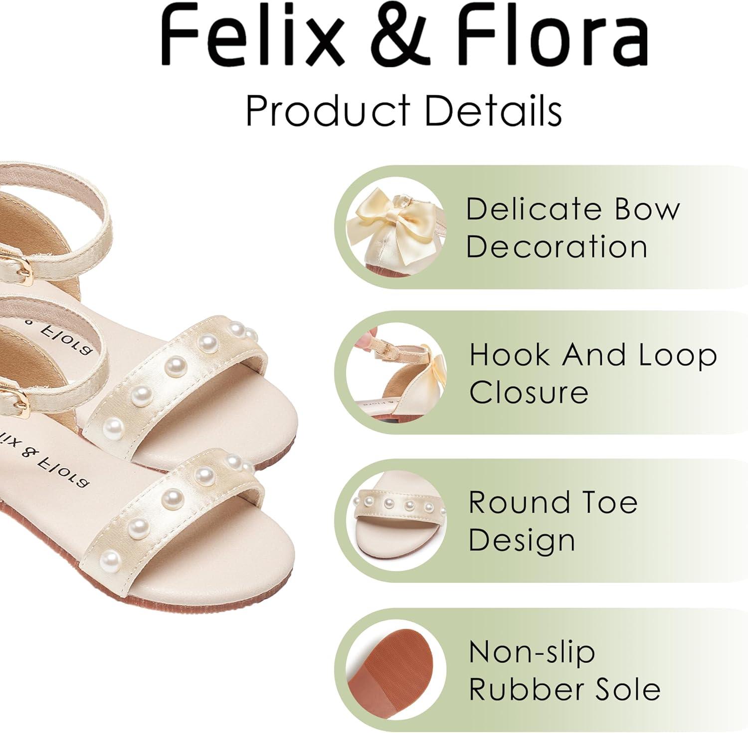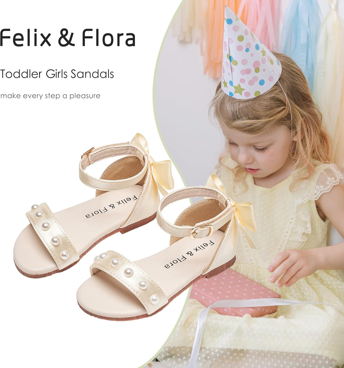 Felix & Flora Toddler Girl Sandals Open Toe Summer Flower Girl Dress Shoes(Bc324-gold)