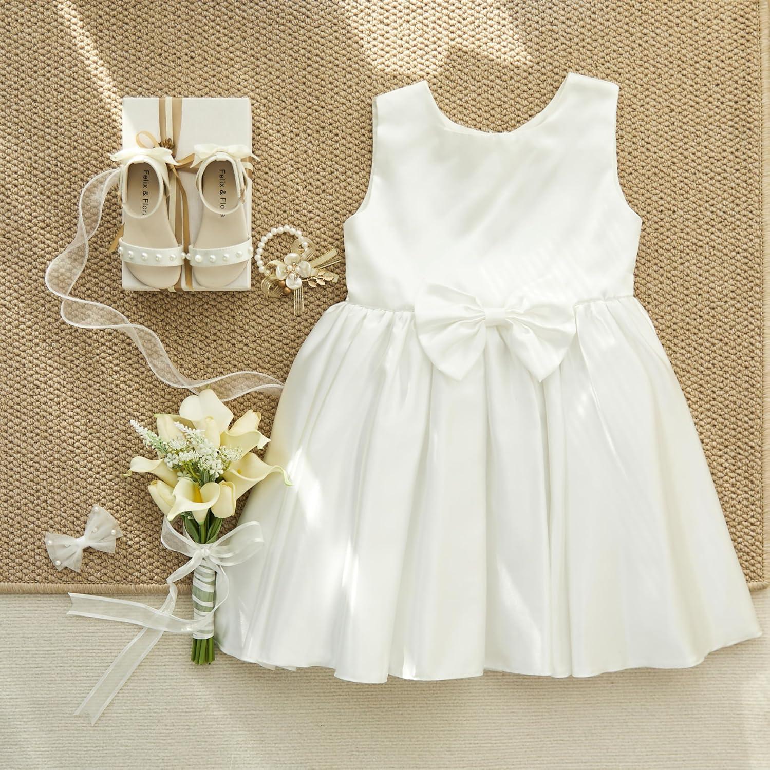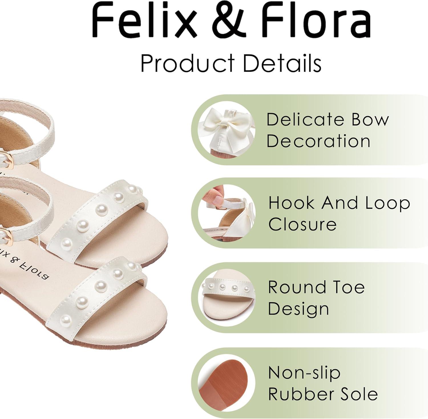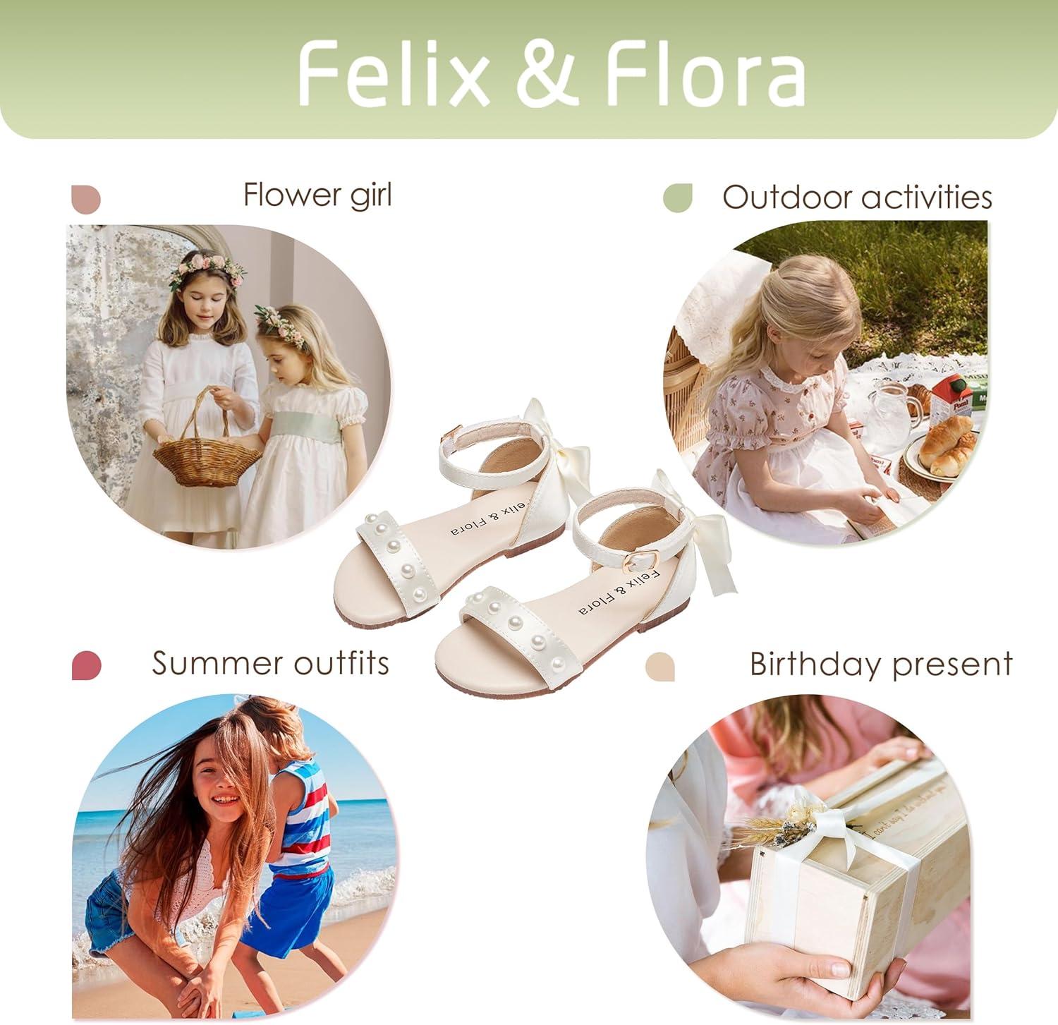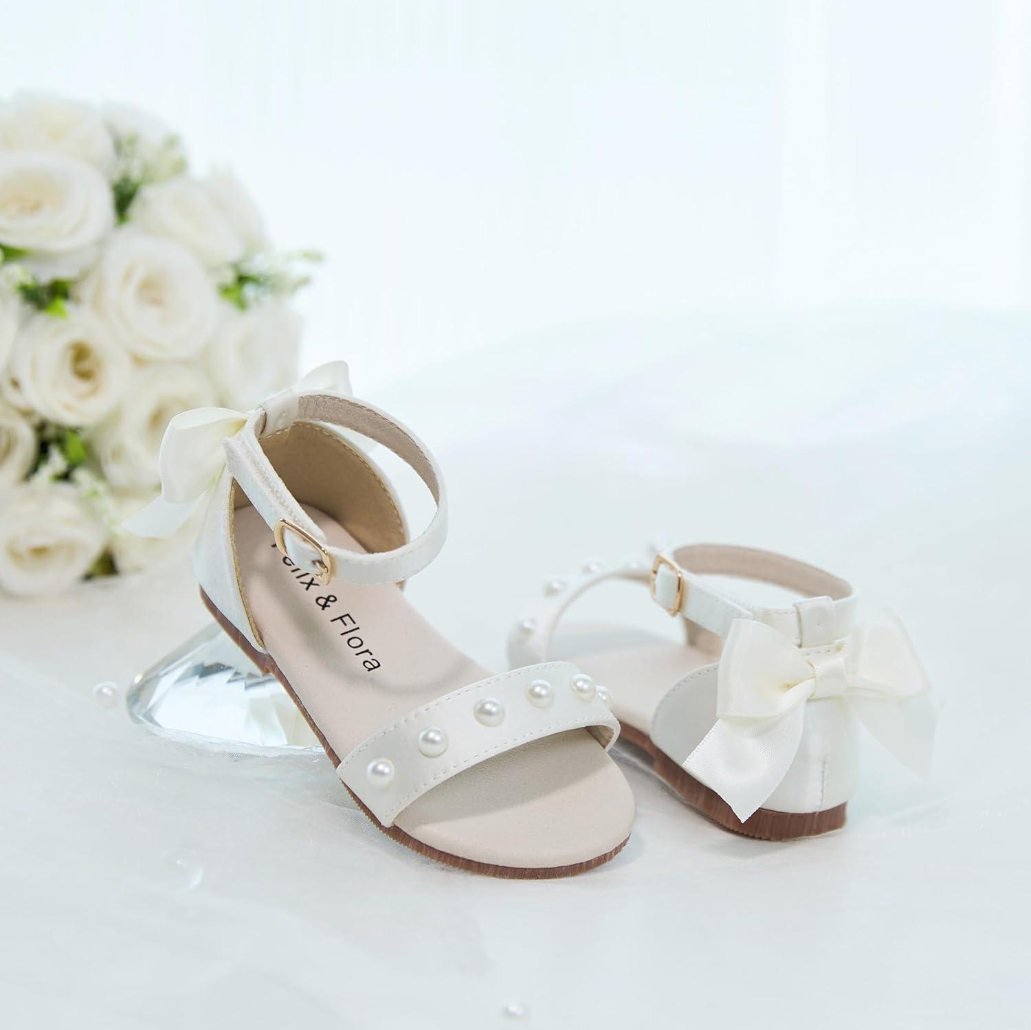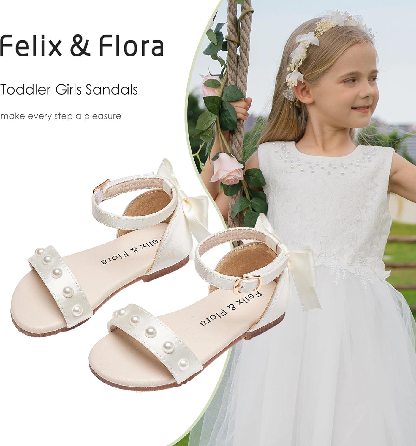 Felix & Flora Toddler Girl Sandals Open Toe Summer Flower Girl Dress Shoes(Bc324-ivory White)