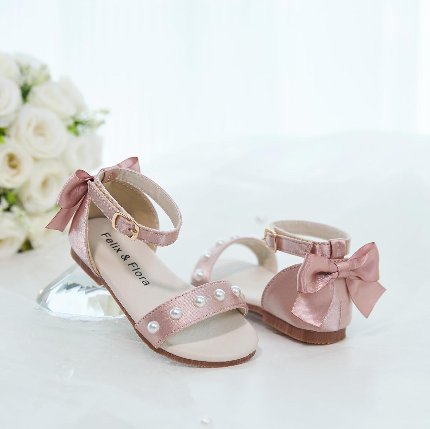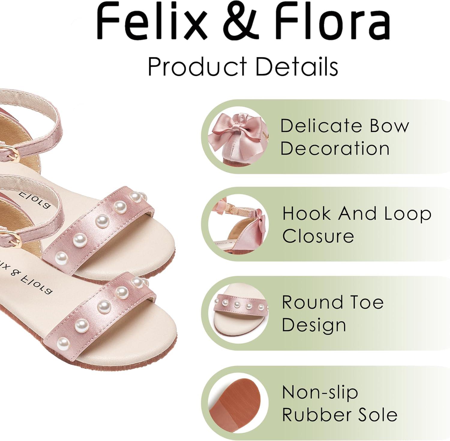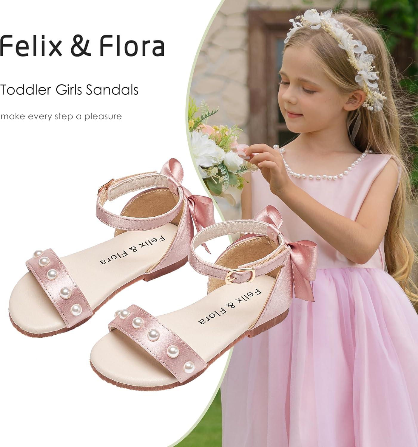 Felix & Flora Toddler Girl Sandals Open Toe Summer Flower Girl Dress Shoes(Bc324-pink)