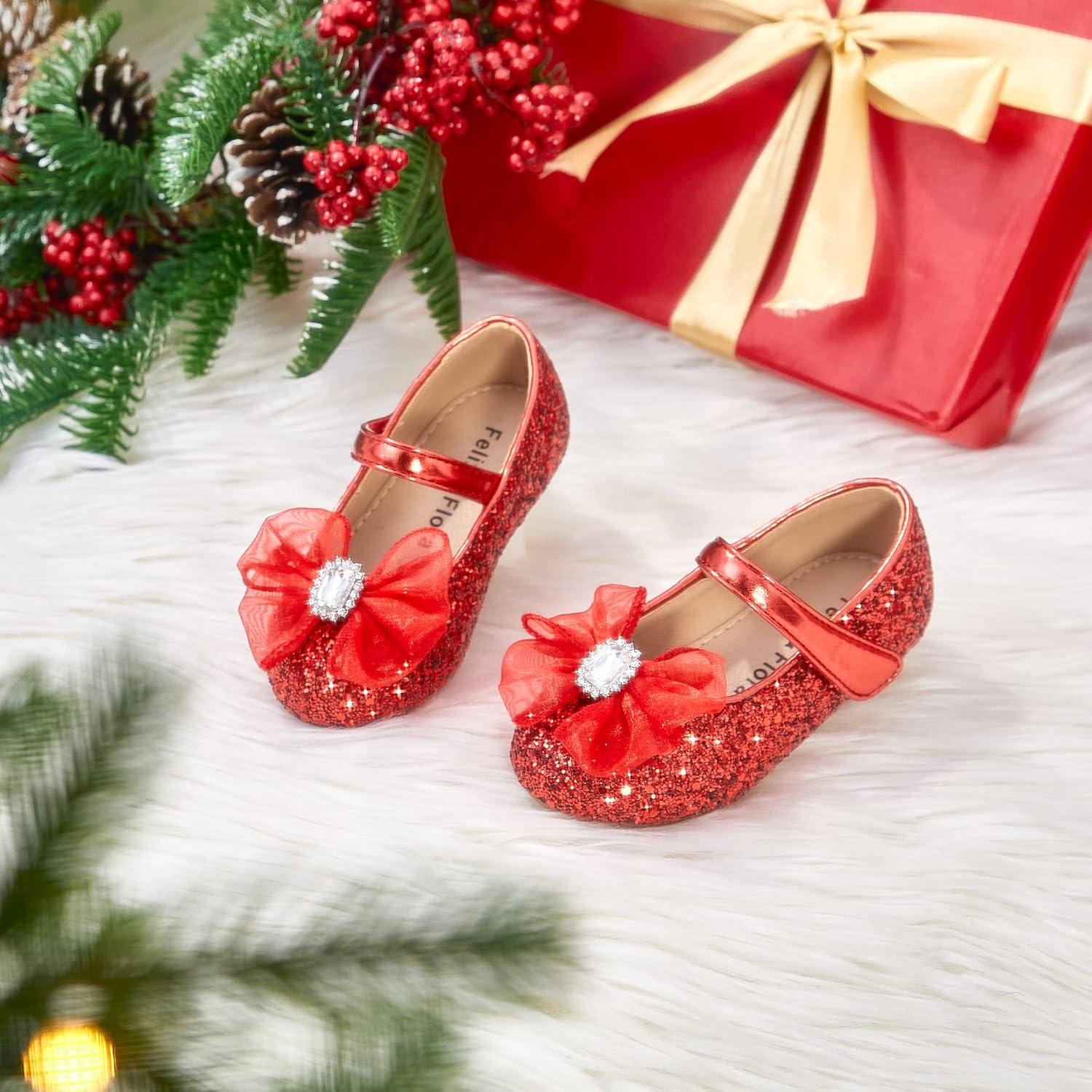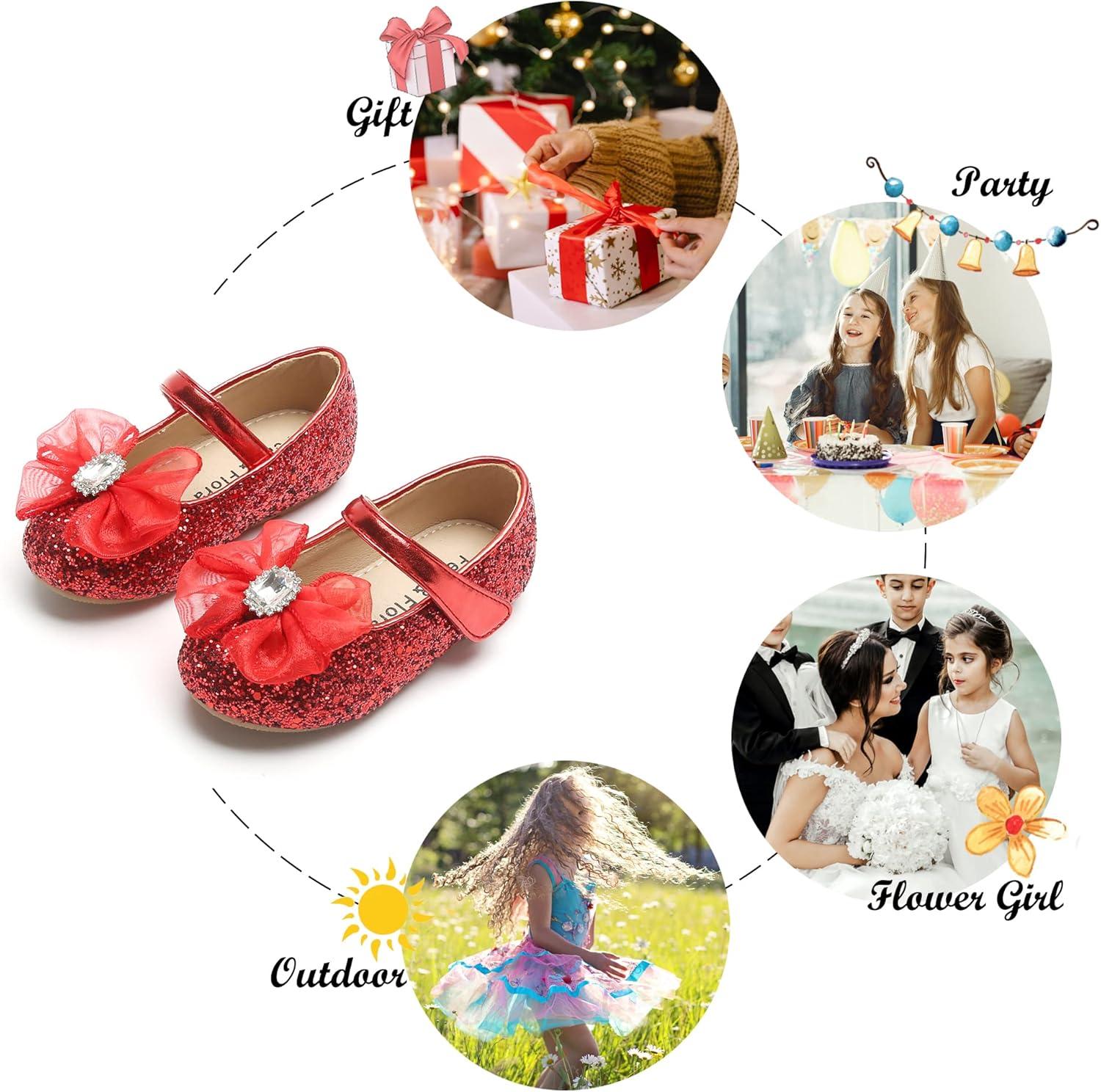 Felix & Flora Toddler Girls Dress Shoes – Little Girl Ballet Mary Jane Flats Party School Wedding(B849-red)
