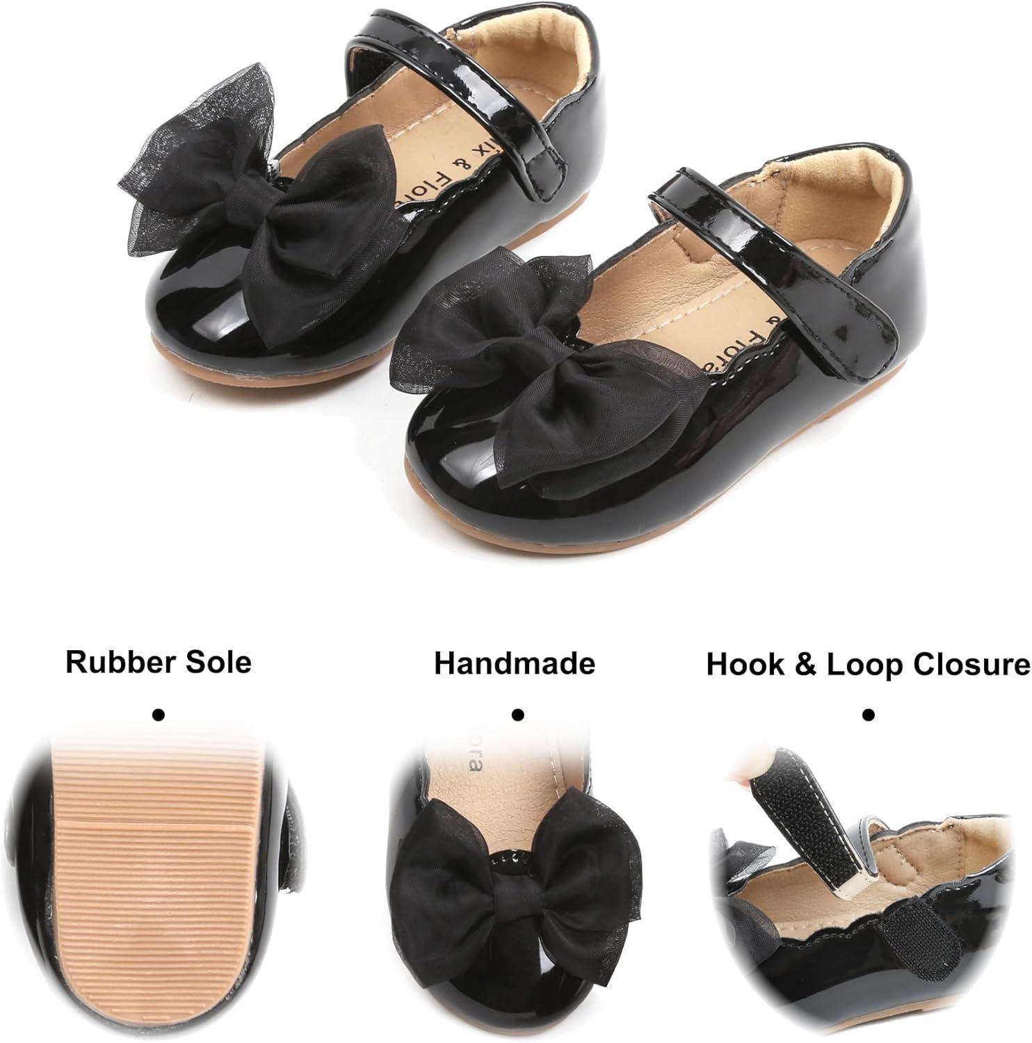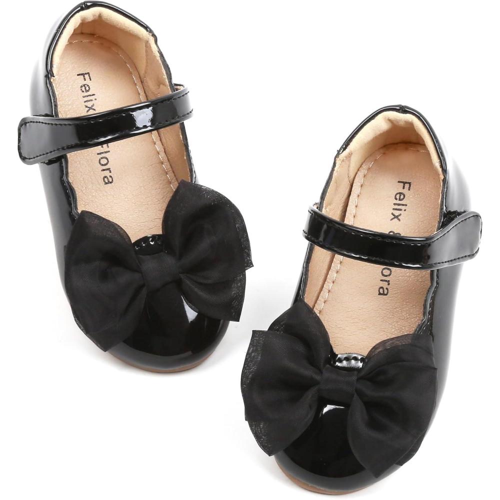 Felix & Flora Toddler Girls Dress Shoes – Little Girl Ballet Mary Jane Flats Party School Wedding(B875-black)