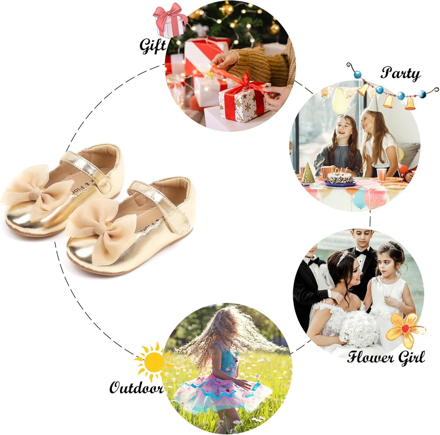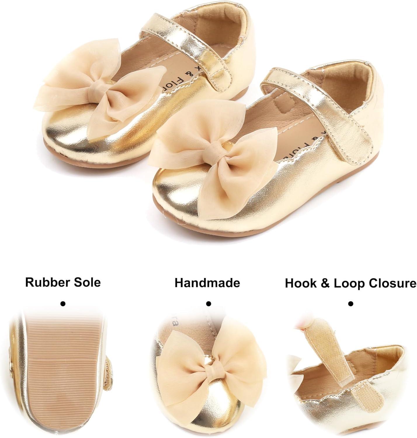Felix & Flora Toddler Girls Dress Shoes – Little Girl Ballet Mary Jane Flats Party School Wedding(B875-gold)
