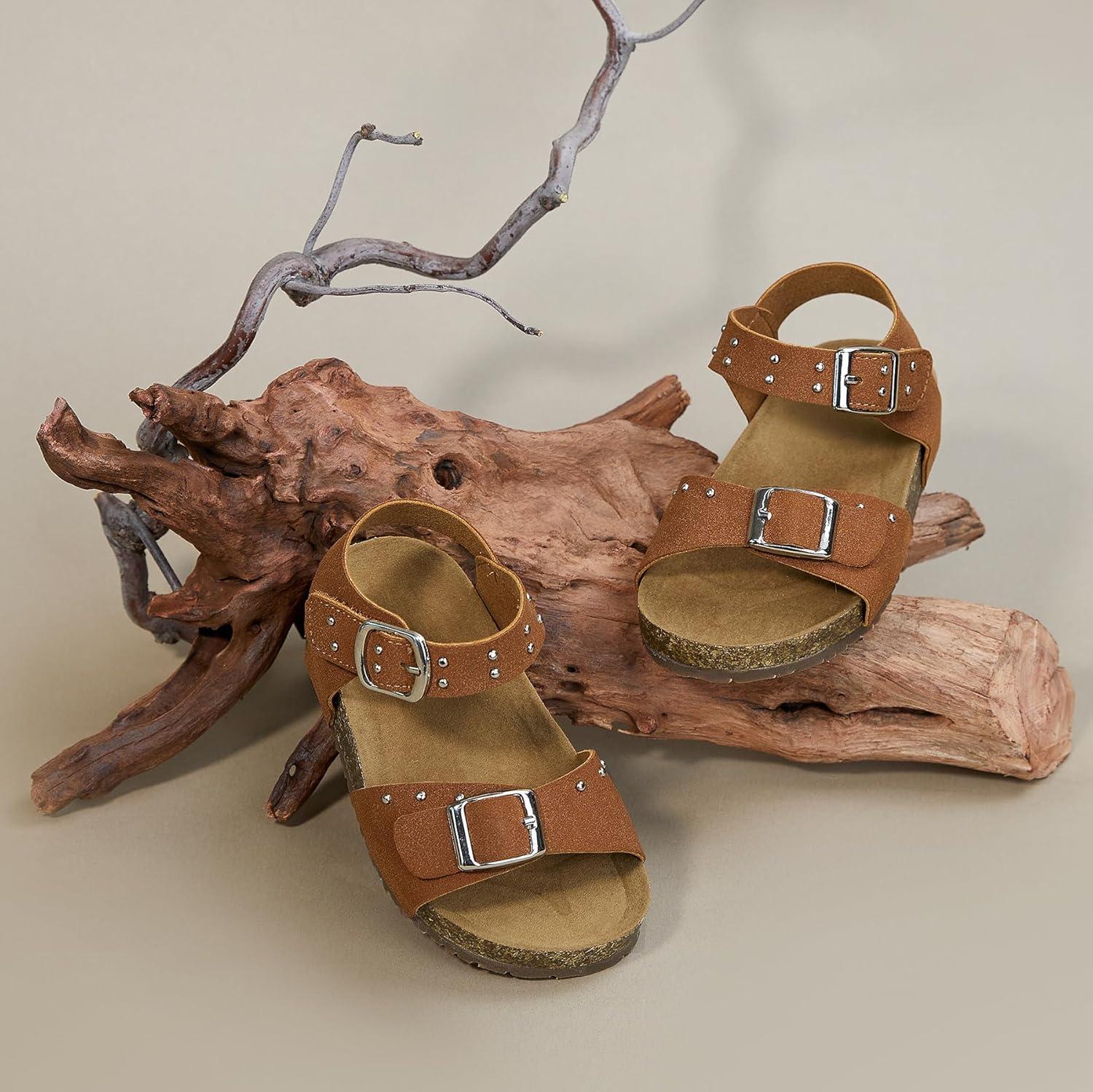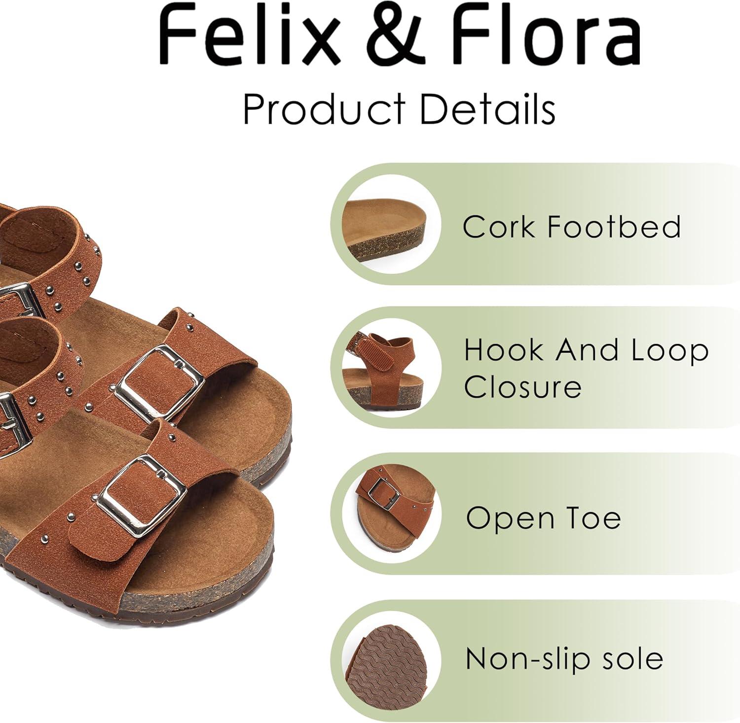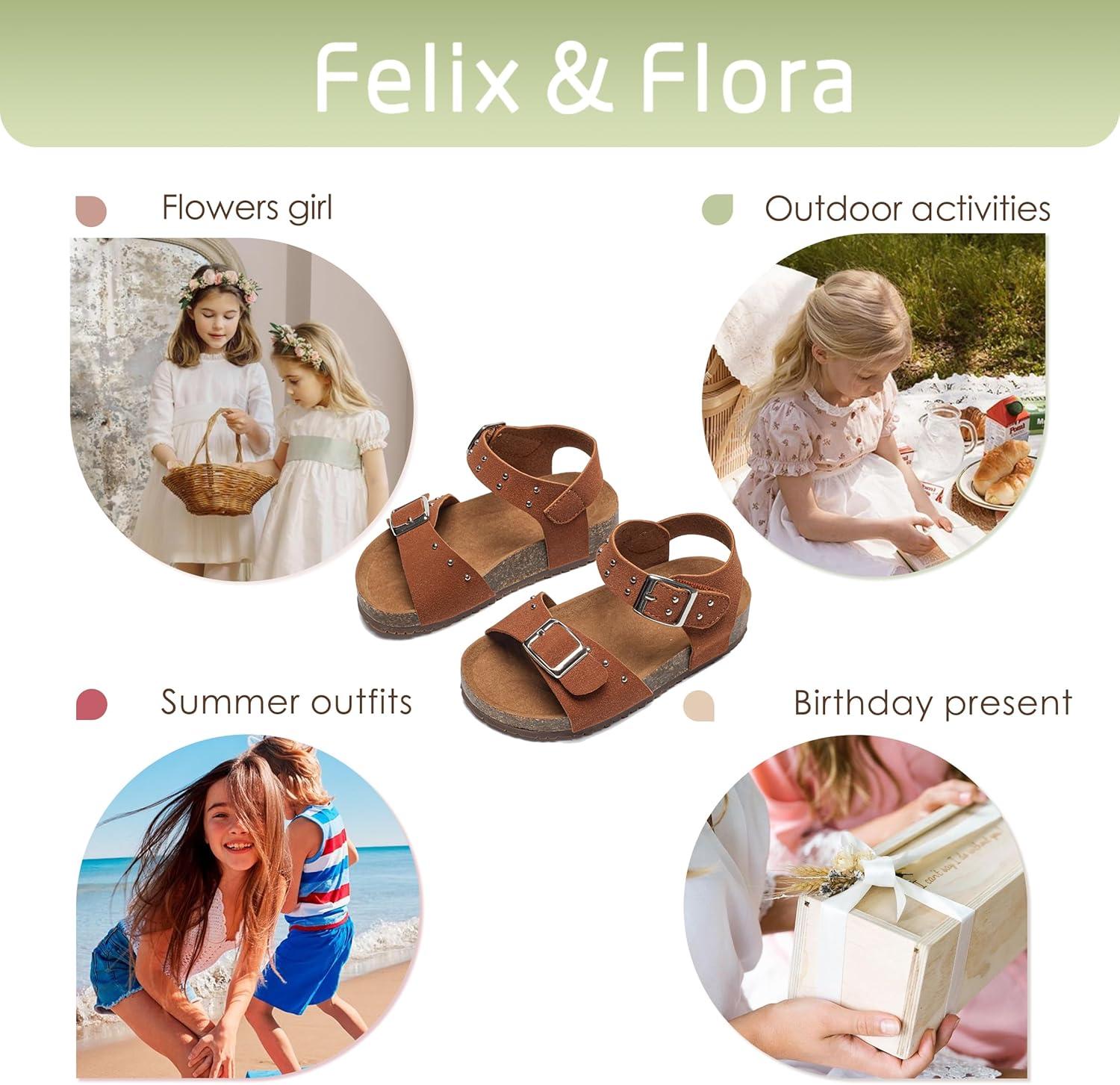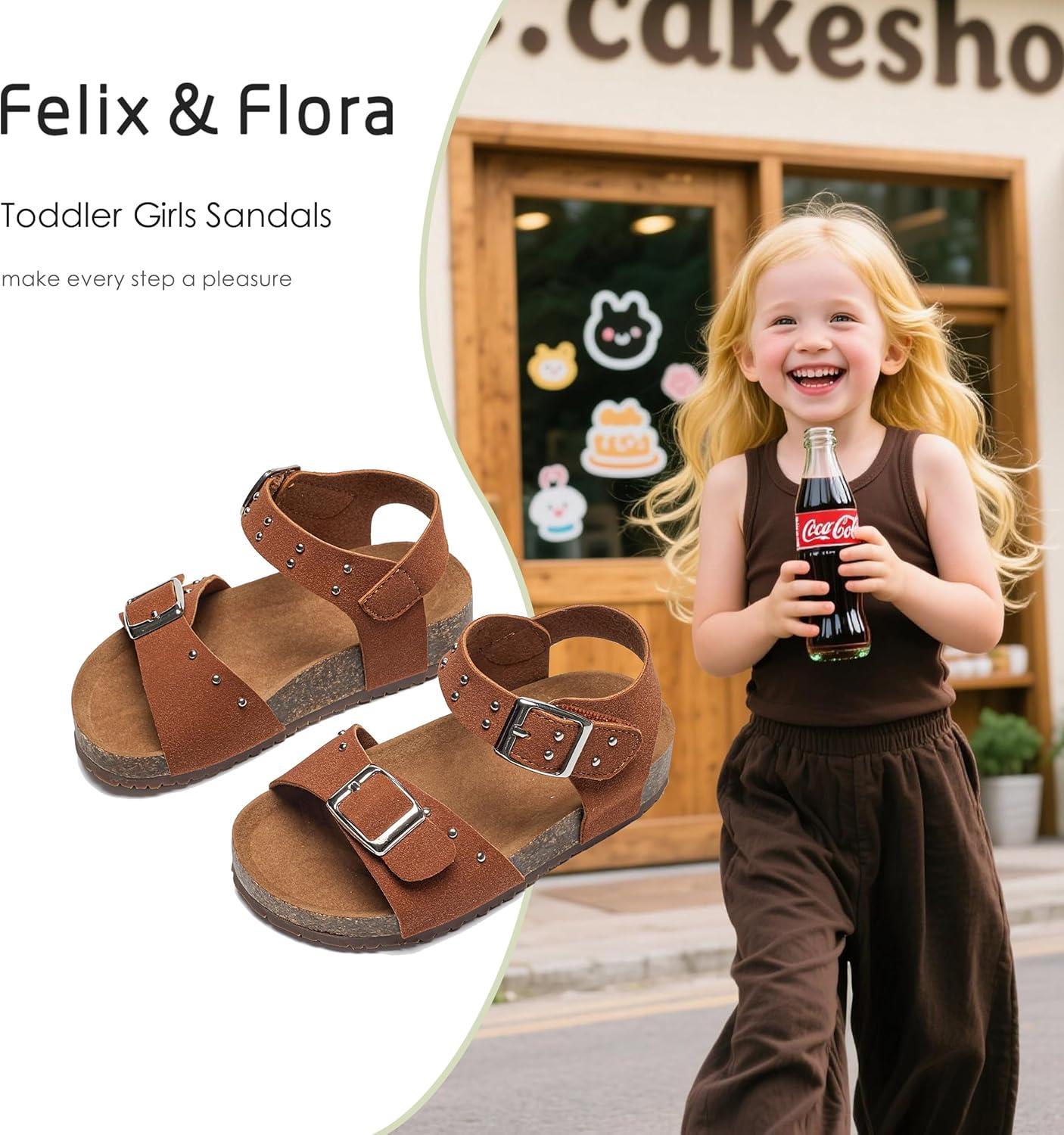 Felix & Flora Toddler Girls Sandals Flower Girl Cork Footbed Open Toe Comfort Princess Summer Flat Shoes(Bc329-brown)